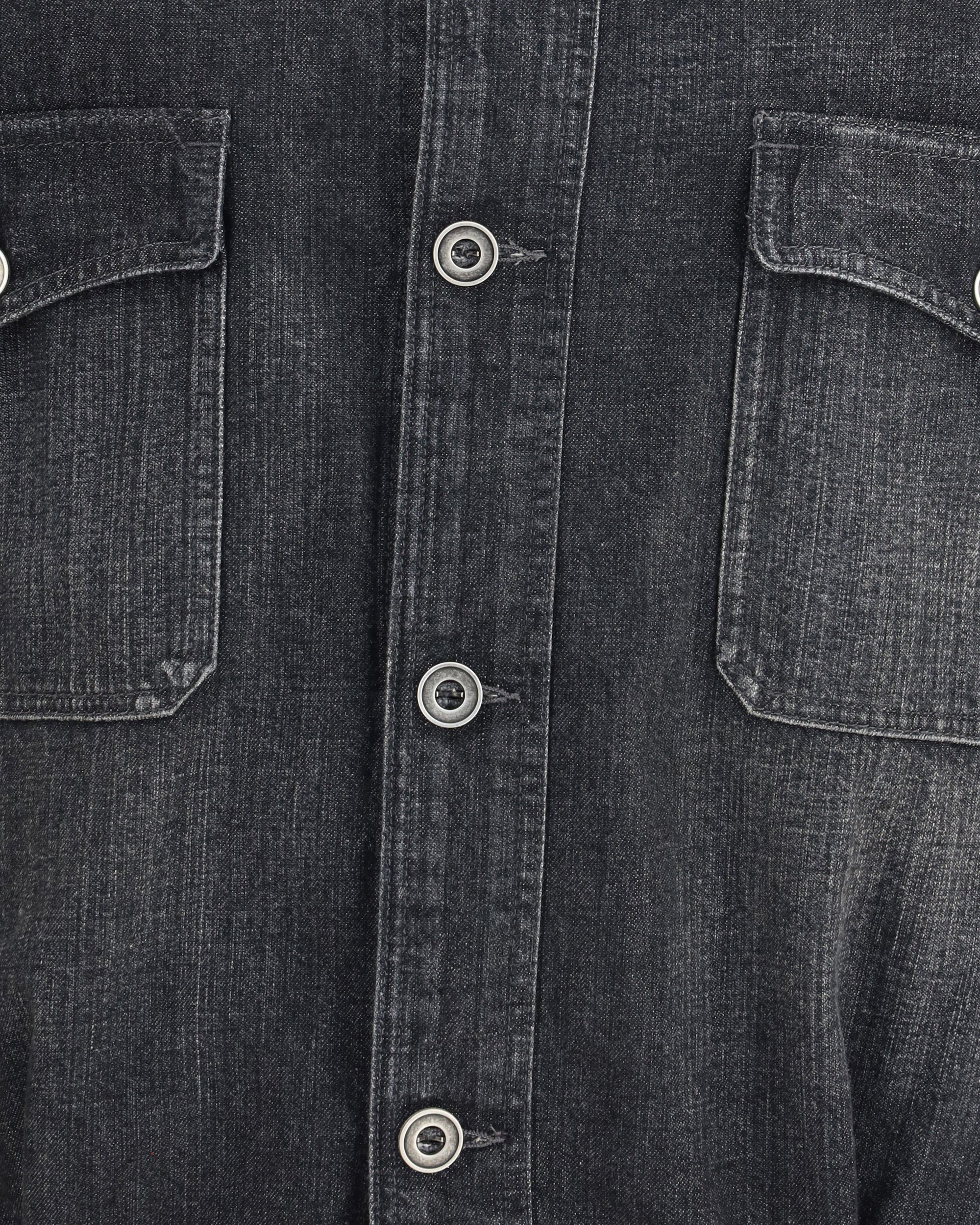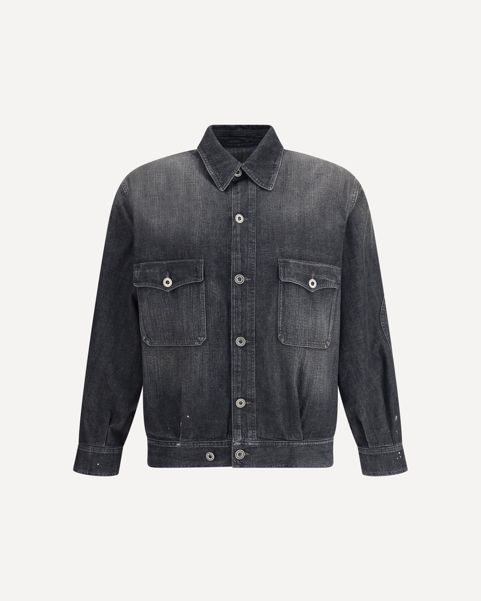 Giacca in denim di cotone di Margiela, caratterizzata da un'estetica audace e sperimentale. Il modello presenta un colletto classico, chiusura frontale con bottoni e due tasche con patta applicate sul petto. Le macchie effetto vernice, tratto distintivo del linguaggio creativo della maison, aggiungono un tocco artistico e non convenzionale. Un capo d’impatto, perfetto per chi cerca uno stile unico e contemporaneo.