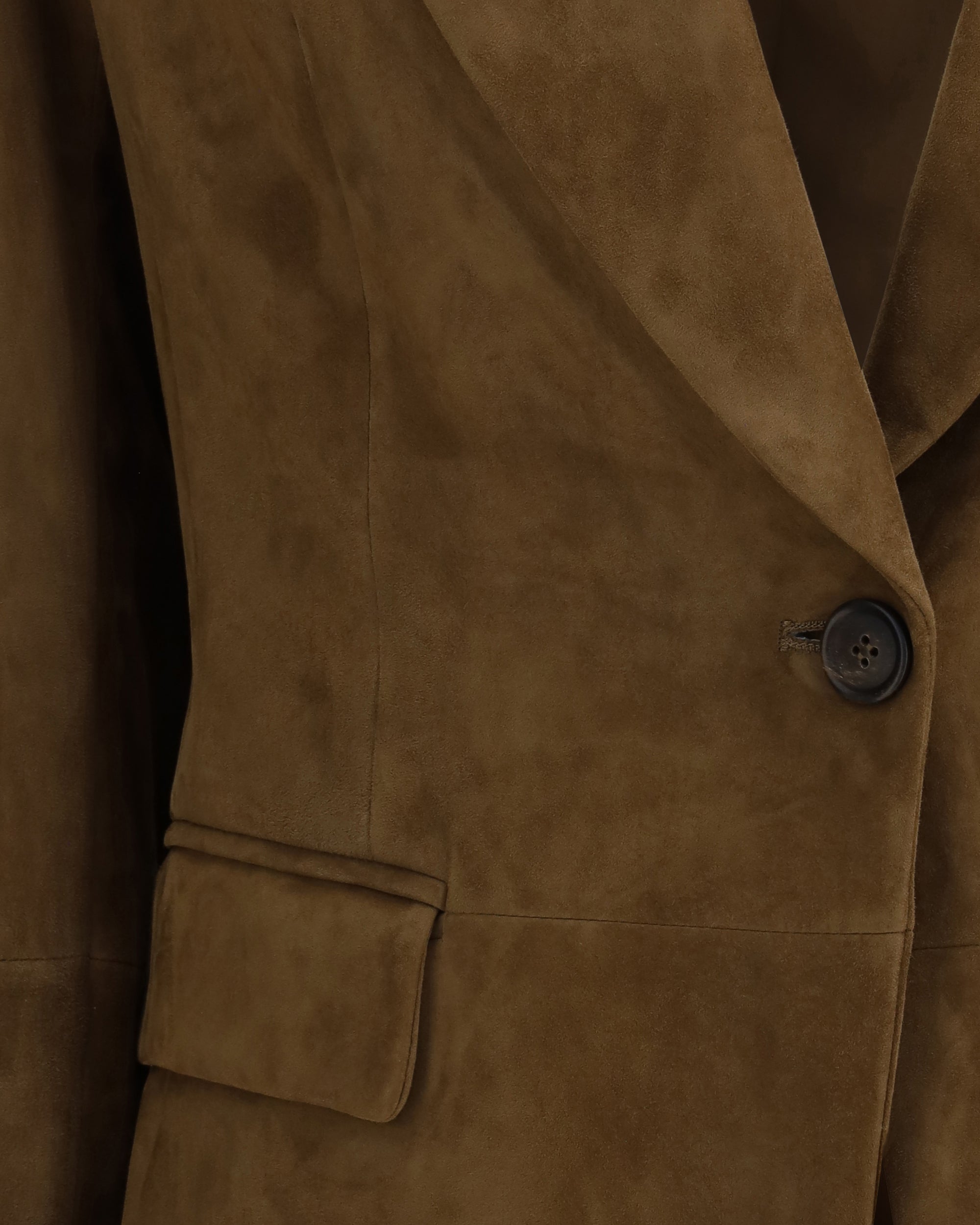 La Giacca in pelle scamosciata di Brunello Cucinelli è un capo dal fascino intramontabile, caratterizzato da un taglio blazer elegante e sofisticato. I revers a lancia e la chiusura frontale con un bottone definiscono una silhouette pulita, mentre le due tasche a filetto con patta aggiungono funzionalità e raffinatezza.