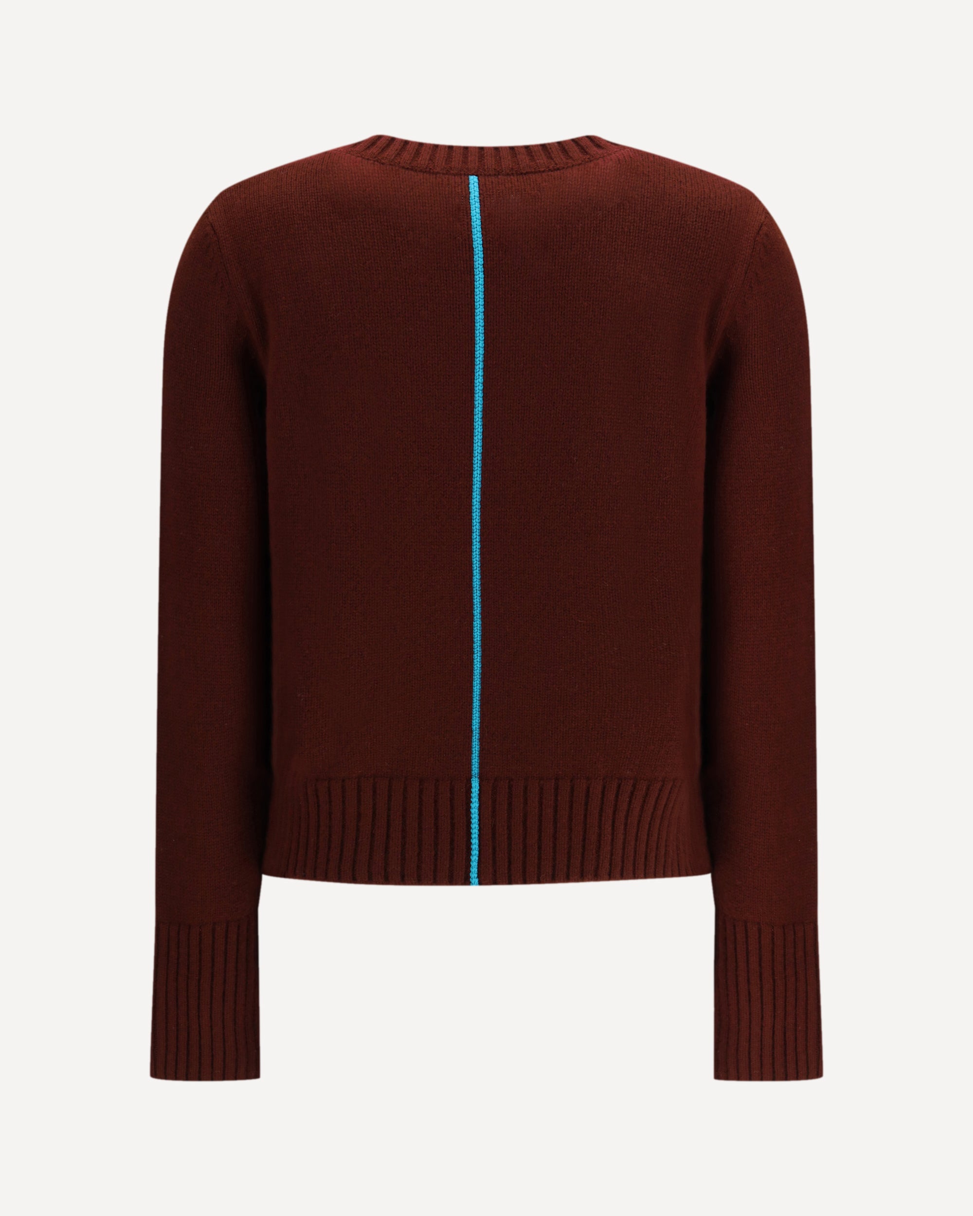 Il Maglione in cashmere by Loewe è un modello in maglia dal fascino essenziale, arricchito da un logo ricamato sul davanti. Presenta un classico collo a giro con dettagli a contrasto sui lati, mentre una singola riga in colore contrastante attraversa la parte posteriore, aggiungendo un tocco grafico distintivo. I bordi delle maniche e il fondo sono rifiniti a costine per garantire comfort e una struttura impeccabile.