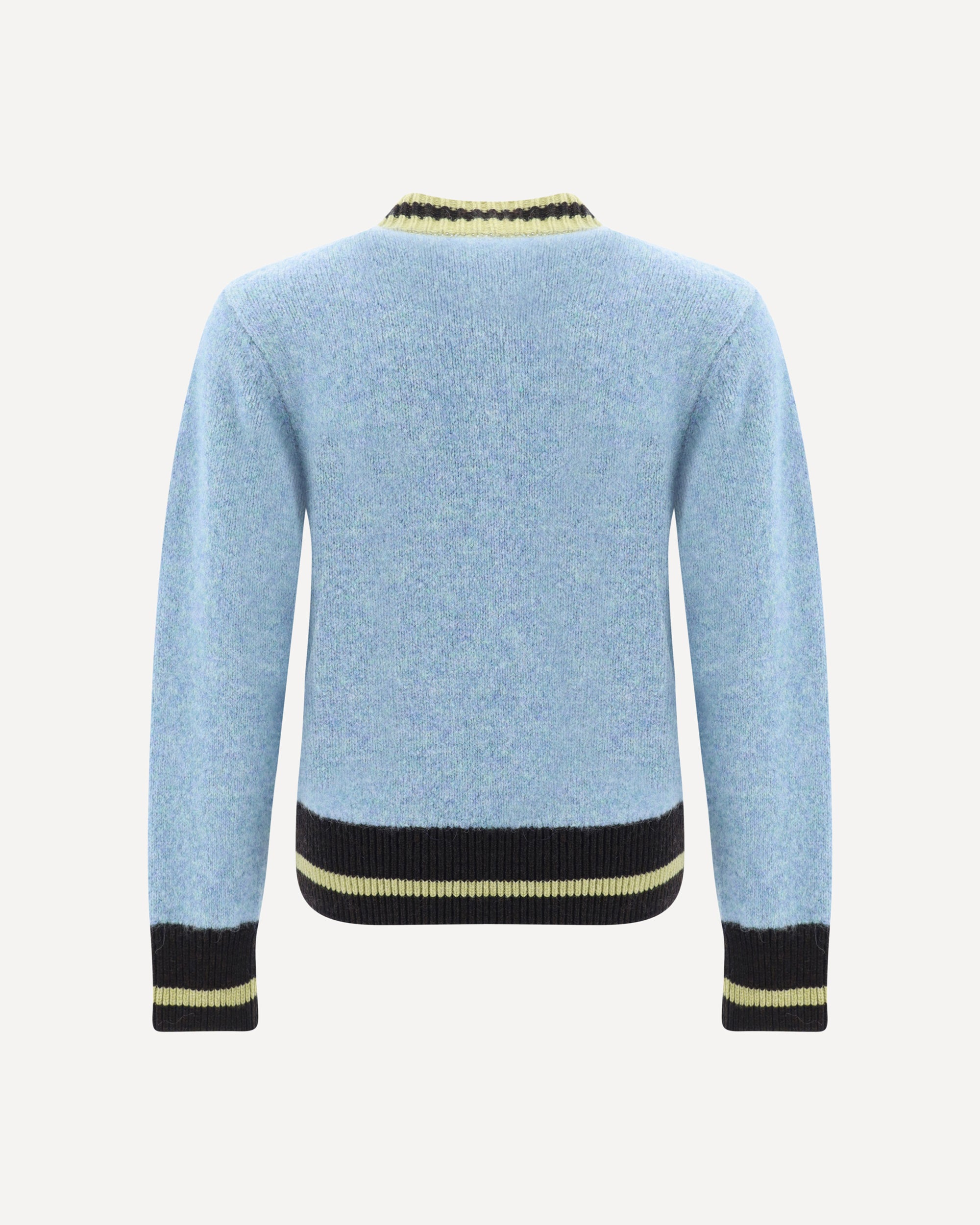 Il Maglione in lana di Dries Van Noten presenta uno scollo a V con costine a contrasto sul davanti, polsini e orlo anch’essi rifiniti con costine a contrasto. Un capo raffinato che unisce comfort e dettagli distintivi per un look elegante e moderno.
