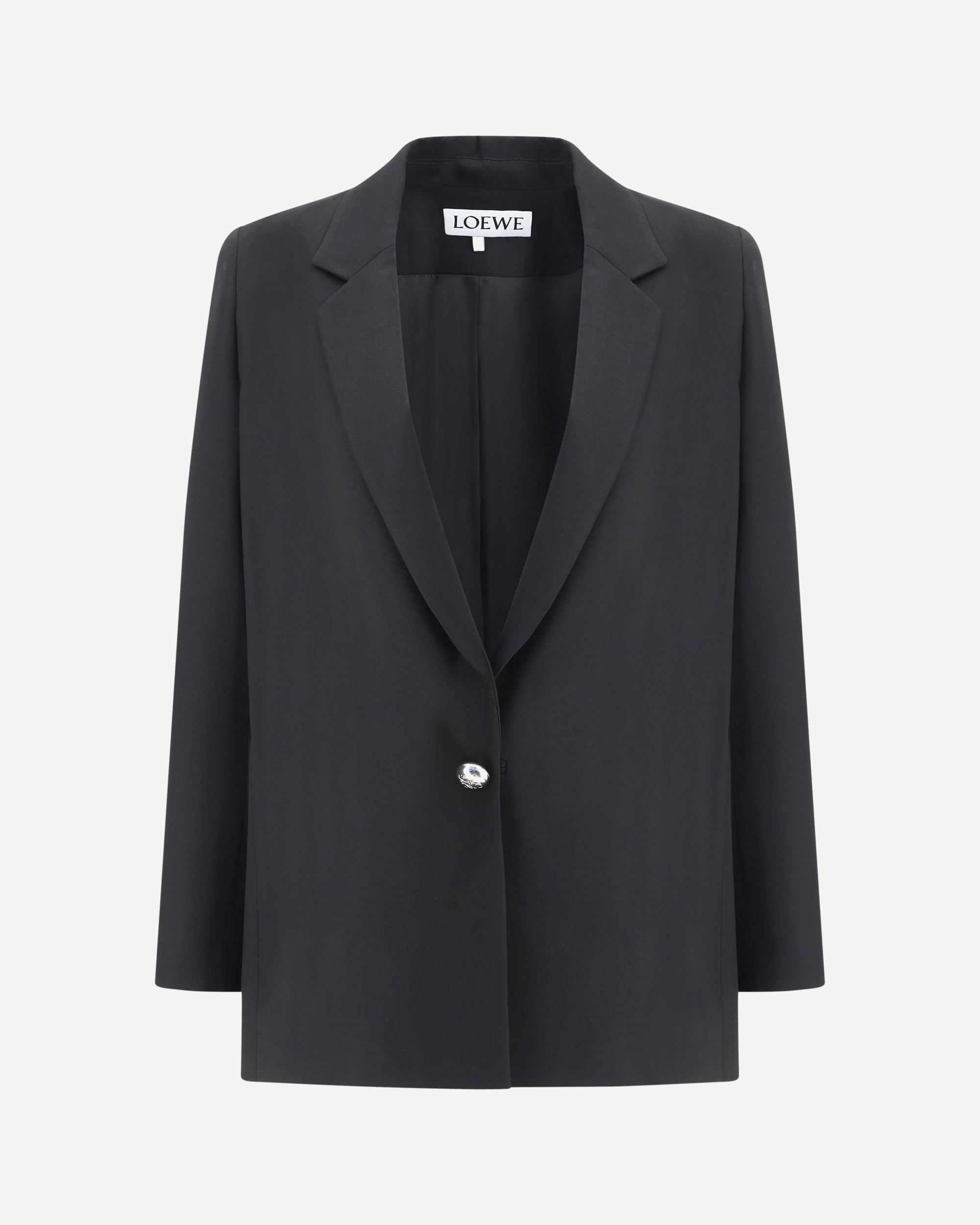 Il Blazer di Loewe, realizzato in cady leggero e fluido di viscosa stretch, è un capo che unisce eleganza sartoriale e innovazione nel design. La silhouette attorcigliata conferisce movimento e un tocco contemporaneo, mentre la chiusura laterale con il bottone Anagram Pebble aggiunge un dettaglio distintivo e raffinato, simbolo del brand. I revers classici mantengono un richiamo alla tradizione, bilanciando l’originalità della forma, mentre i polsini con bottoni e gli spacchi posteriori completano il capo con funzionalità e stile.
