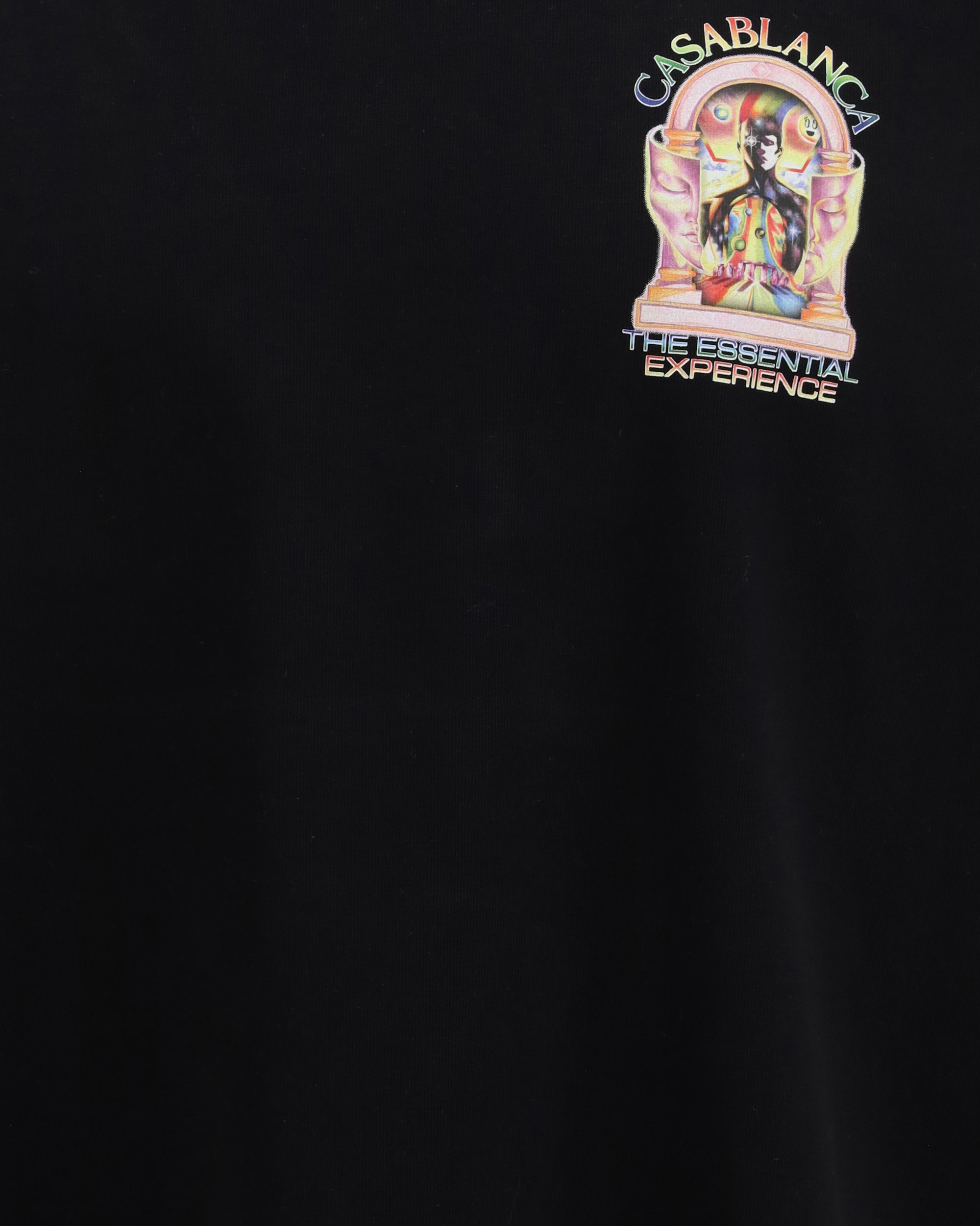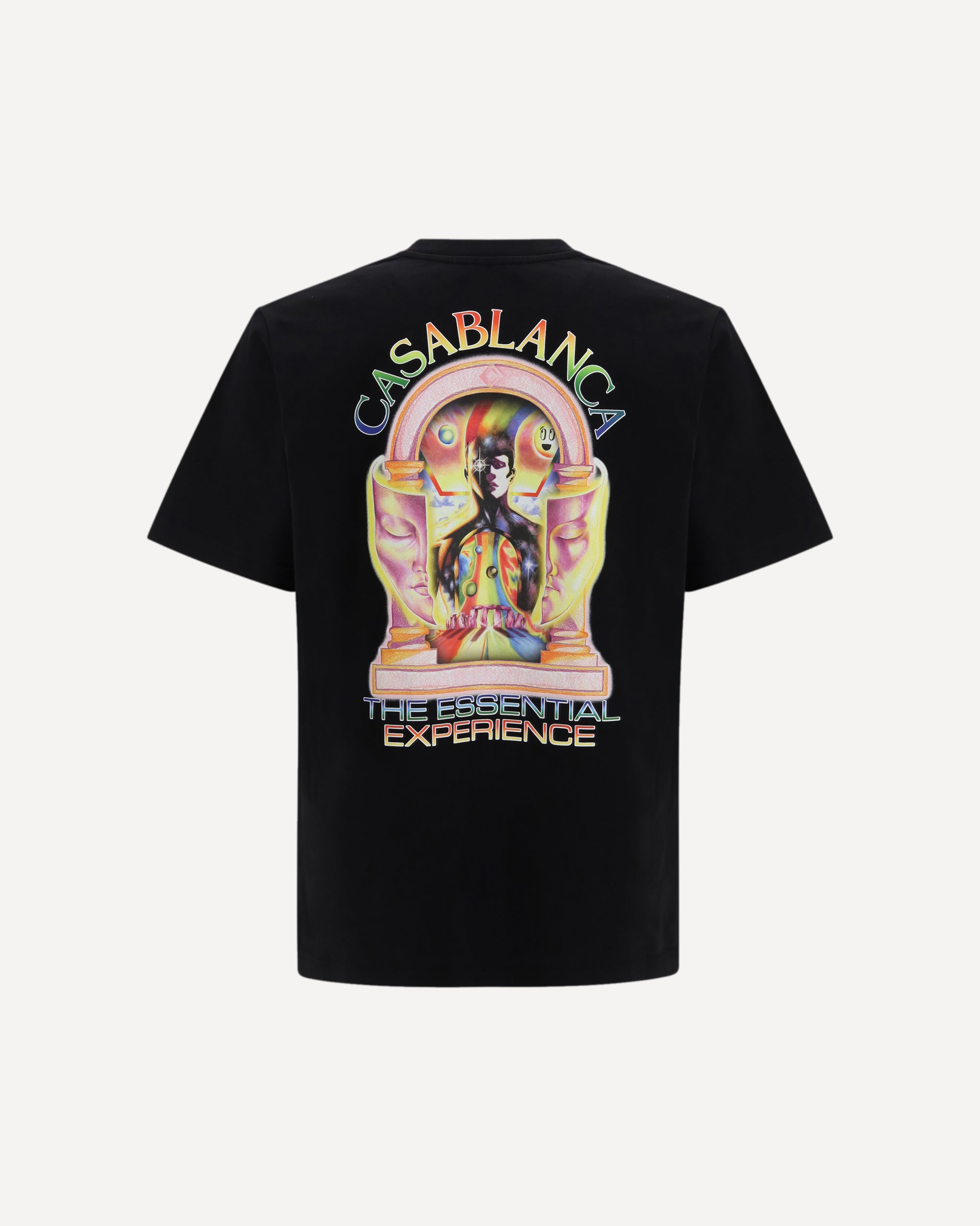 La T-shirt in cotone biologico che esprime al meglio l’estetica artistica di Casablanca, grazie a una lavorazione impeccabile e a una grafica unica nel suo genere. La vestibilità regular e il girocollo sagomato la rendono adatta sia ai look quotidiani sia alle combinazioni più ricercate. La stampa frontale e posteriore raffigura una figura centrale incorniciata da una composizione geometrica e colorata, impreziosita dal logo CASABLANCA e dalla scritta “THE ESSENTIAL EXPERIENCE”. Realizzata in morbido cotone biologico premium, assicura comfort elevato e resistenza nel tempo.