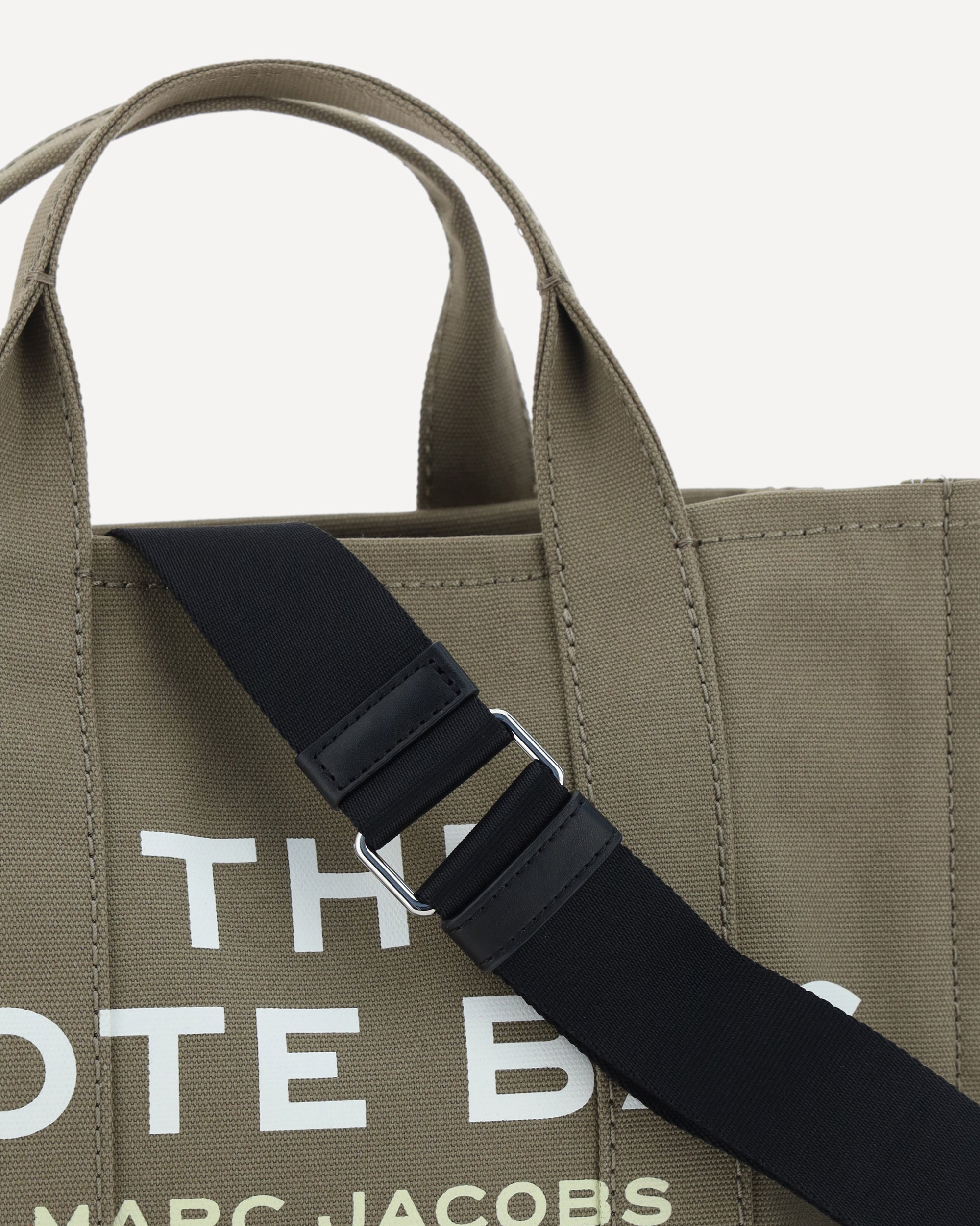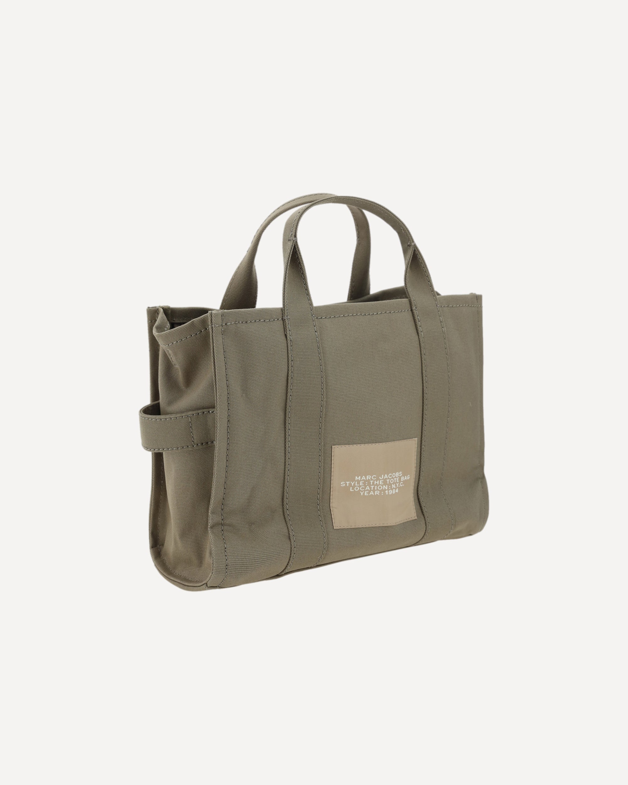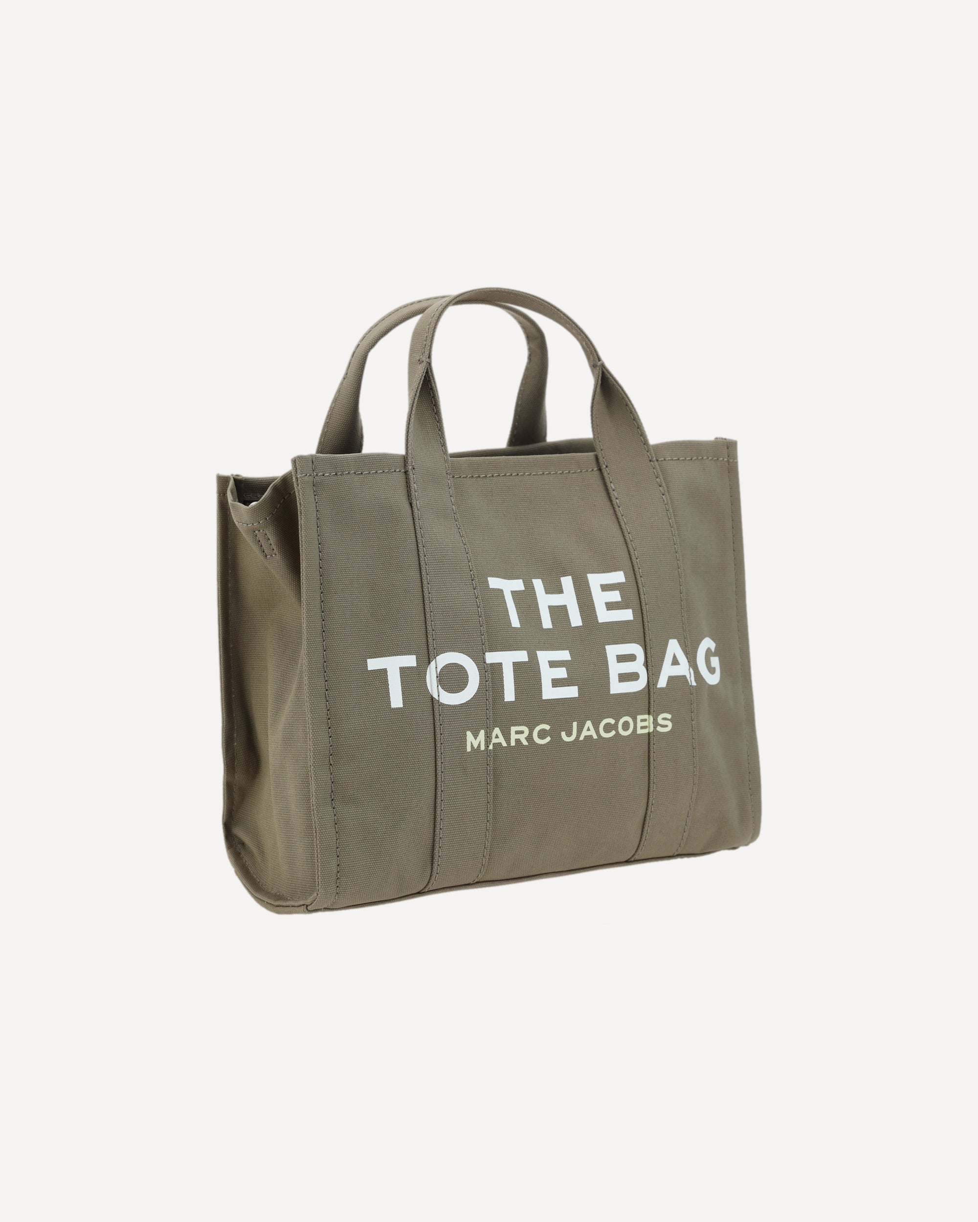 Borsa a Mano The Medium Tote in Cotone di Marc Jacobs, due manici tubolari rigidi nella parte superiore, chiusura superiore con cerniera, unica tasca interna, tracolla piatta regolabile e removibile, stampa a contrasto iconico monogramma brand sul fronte, patch a contrasto con iconico monogramma brand applicata sul retro.