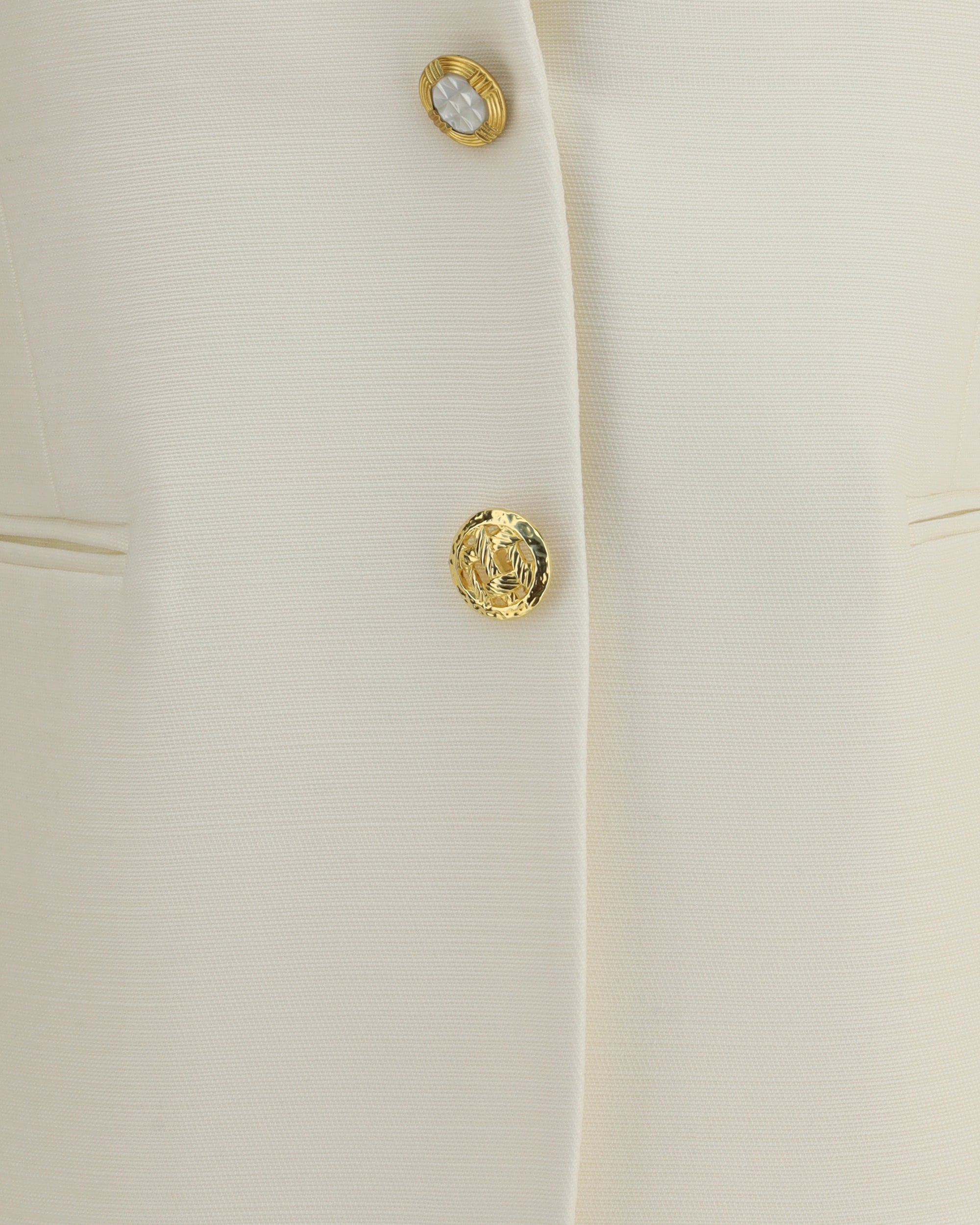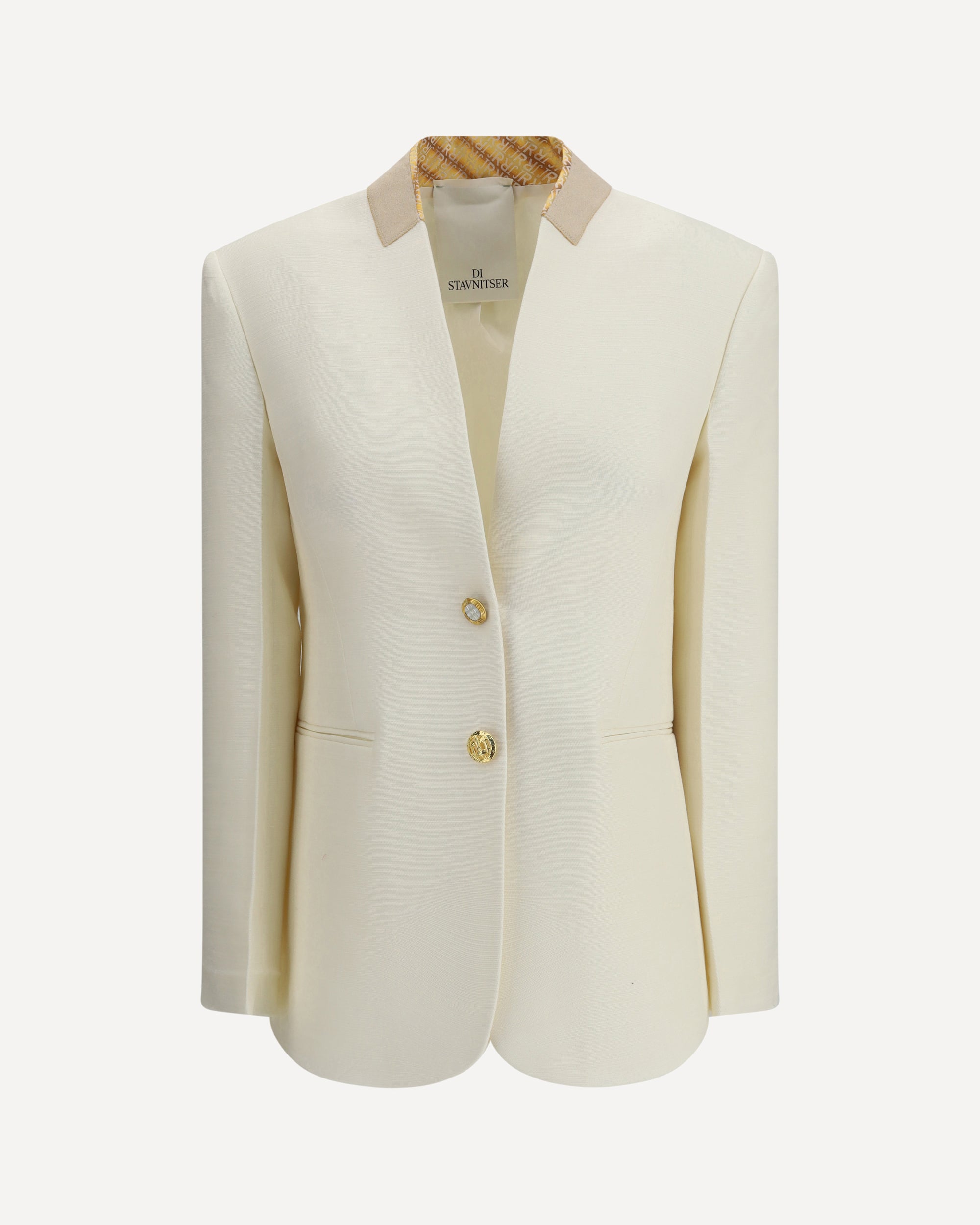 Il Blazer The Signature di Di Stavnitser è un capo iconico e ricercato, pensato per chi ama l’eleganza con un tocco distintivo. Presenta una chiusura frontale con due bottoni gioiello, due tasche applicate sul fronte e uno spacco sul retro che dona movimento alla silhouette. L’orlo tagliato a vivo completa il design con un dettaglio moderno e raffinato.