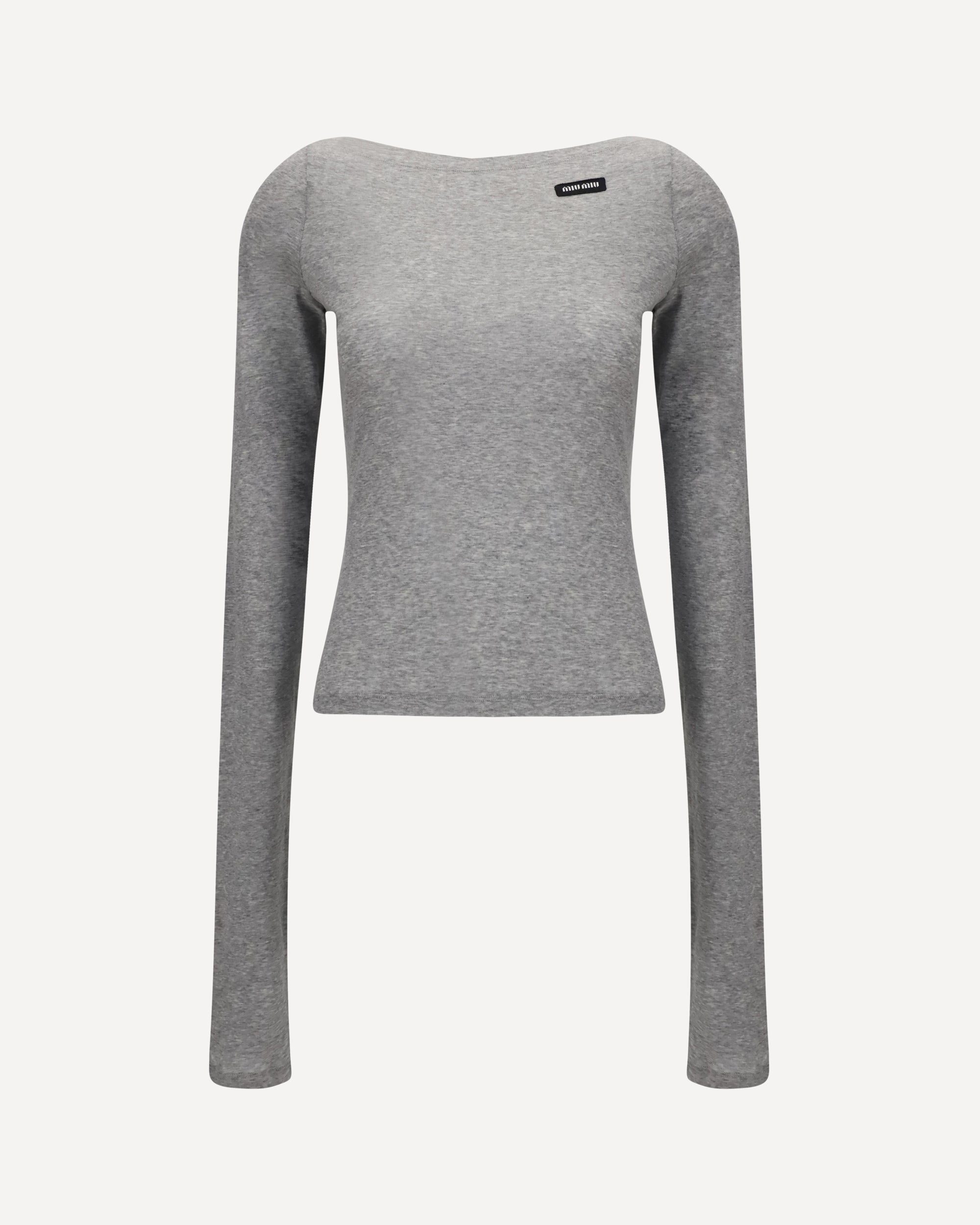 La Maglia a maniche lunghe di Miu Miu è un capo dal design semplice ma ricercato. Realizzata in puro cotone, offre comfort e versatilità, arricchita da una delicata etichetta logata a contrasto sul petto che aggiunge un tocco distintivo. La scollatura a barchetta dona un'aria femminile e sofisticata, mentre la fantasia mélange conferisce un effetto visivo interessante, rendendo questa maglia perfetta per un look casual ma elegante.