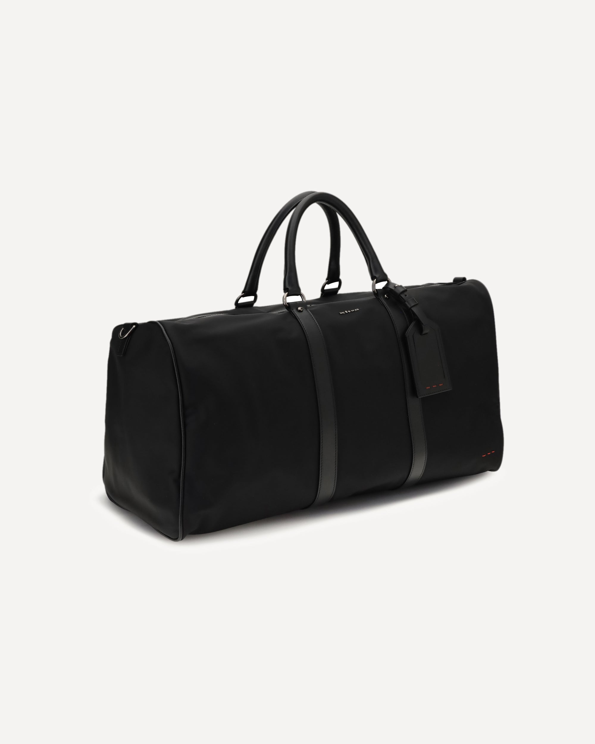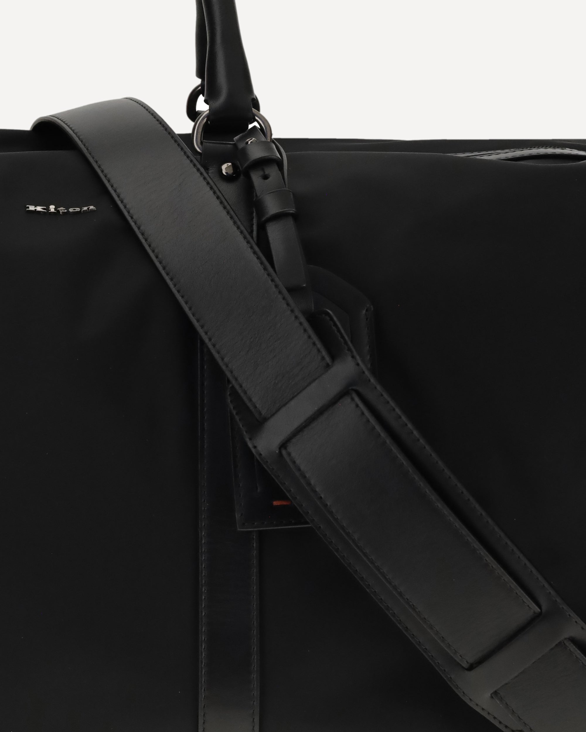 La Borsa da Viaggio Gym di Kiton è realizzata in nylon di alta qualità e arricchita da sofisticati inserti in pelle. I manici in pelle e la tracolla a nastro regolabile con logo assicurano un trasporto comodo e raffinato. L’apertura principale a zip garantisce sicurezza e accessibilità al capiente scomparto interno, mentre il logo in ottone sul davanti aggiunge un tocco distintivo al design.