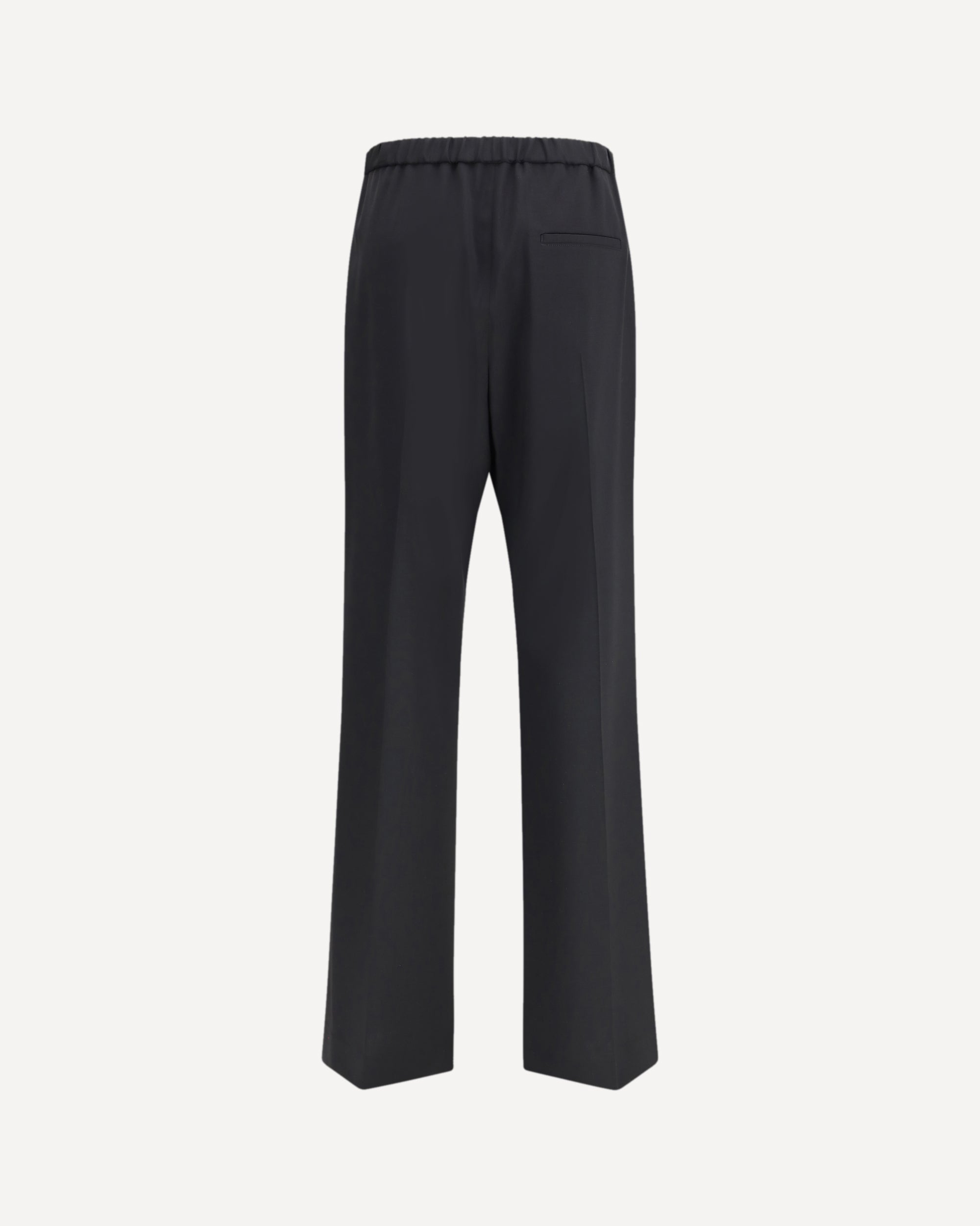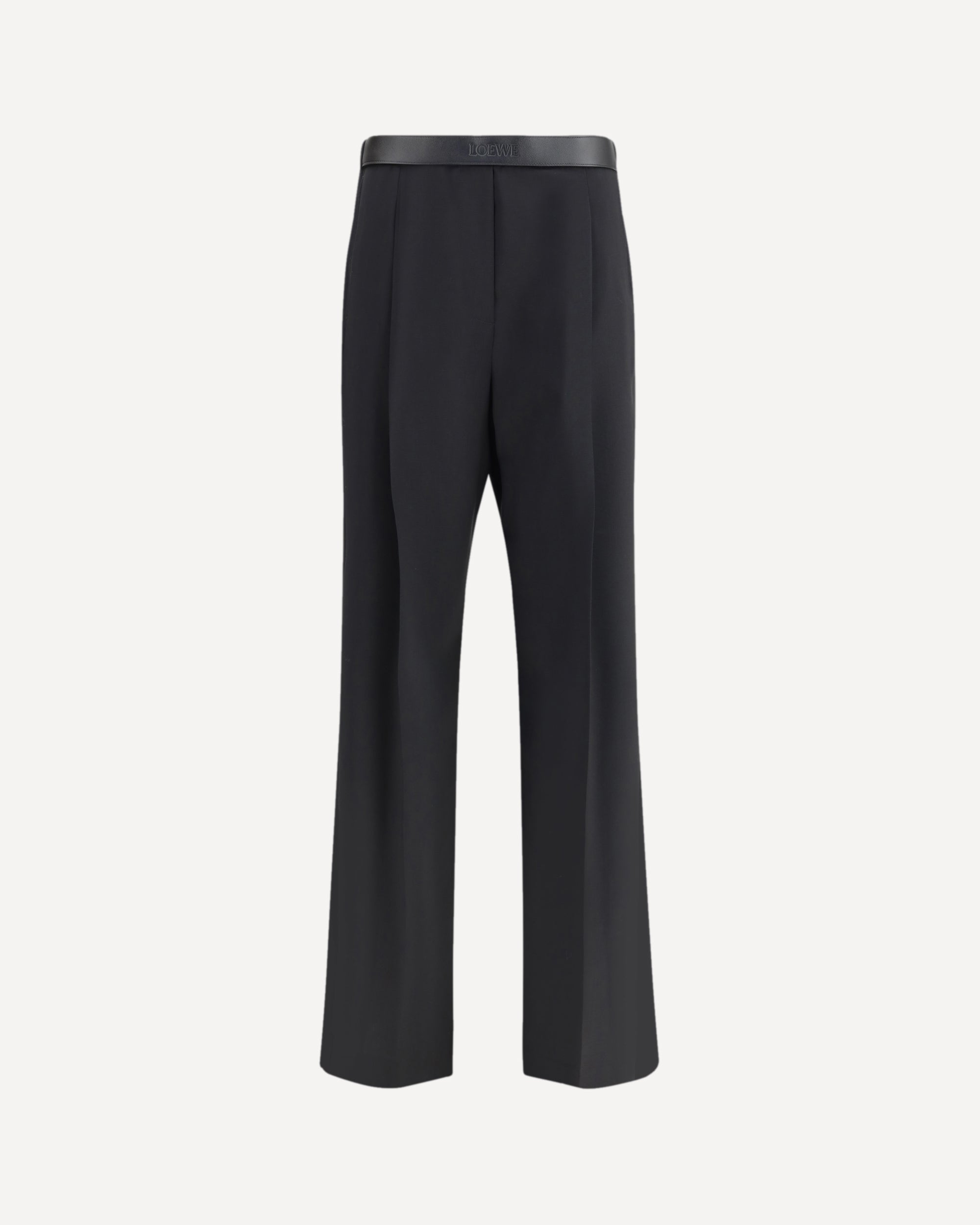 Il Pantalone a gamba larga di Loewe unisce la sartorialità classica a un’eleganza rilassata. Realizzato con gamba dritta e vita media, presenta una banda in pelle che ne sottolinea il carattere sofisticato. Le pieghe stirate fronte e retro donano struttura al modello, mentre le tasche all’americana e la tasca posteriore a filetto aggiungono un tocco funzionale e raffinato. La finta patta completa il design con un dettaglio pulito, rendendo questo capo perfetto per look contemporanei dal fascino discreto.