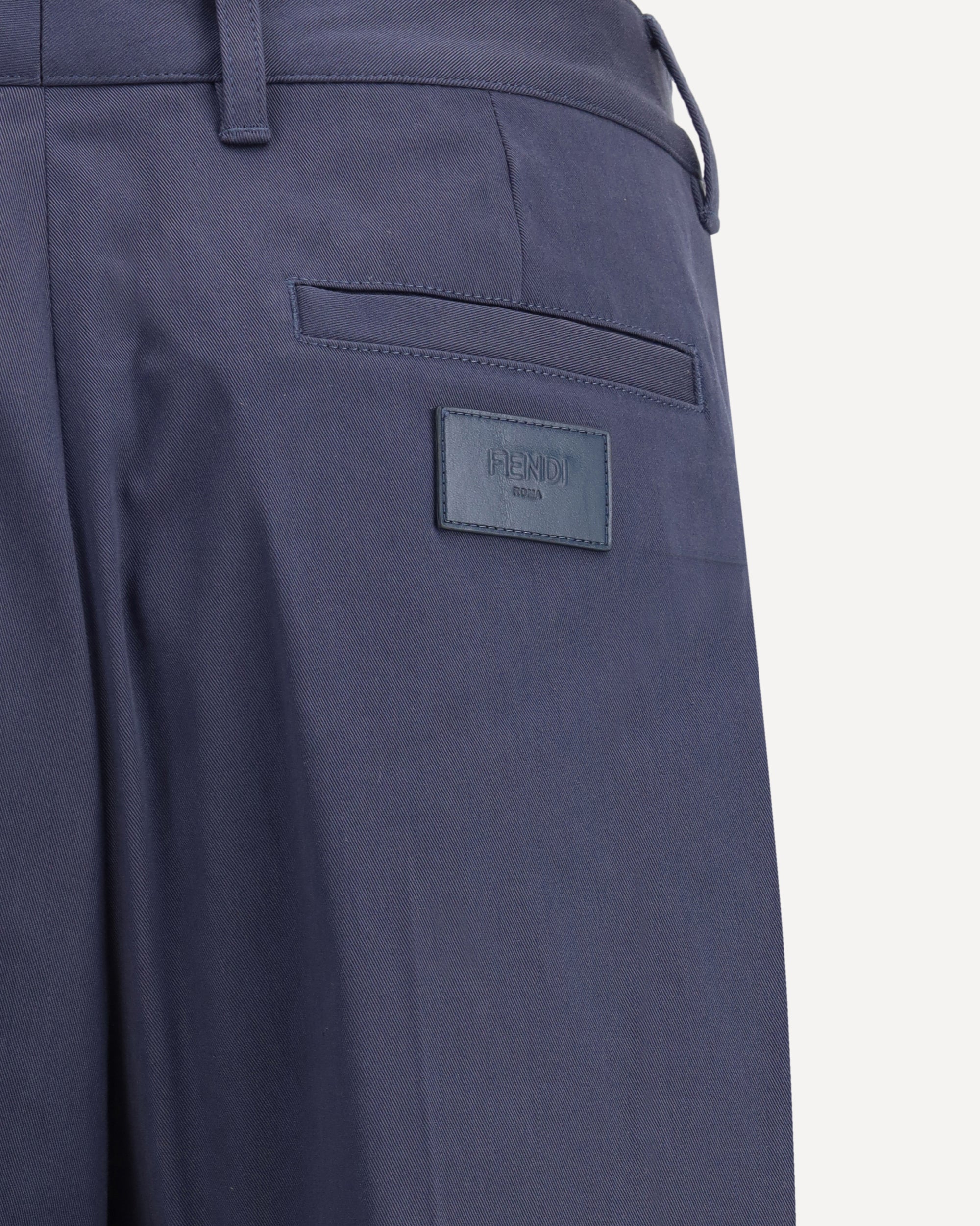 I Pantaloni New Rich in cotone di Fendi uniscono linee pulite e dettagli distintivi per un look contemporaneo e raffinato. Realizzati in cotone di alta qualità, presentano una chiusura frontale con cerniera e bottone, passanti per cintura in vita e una struttura funzionale con due tasche all’americana sui fianchi e due tasche a fessura sul retro. Il capo è completato da una patch in pelle logata, applicata sul retro, che aggiunge un tocco iconico firmato Fendi. Ideali per completare outfit casual-eleganti con uno stile inconfondibile.