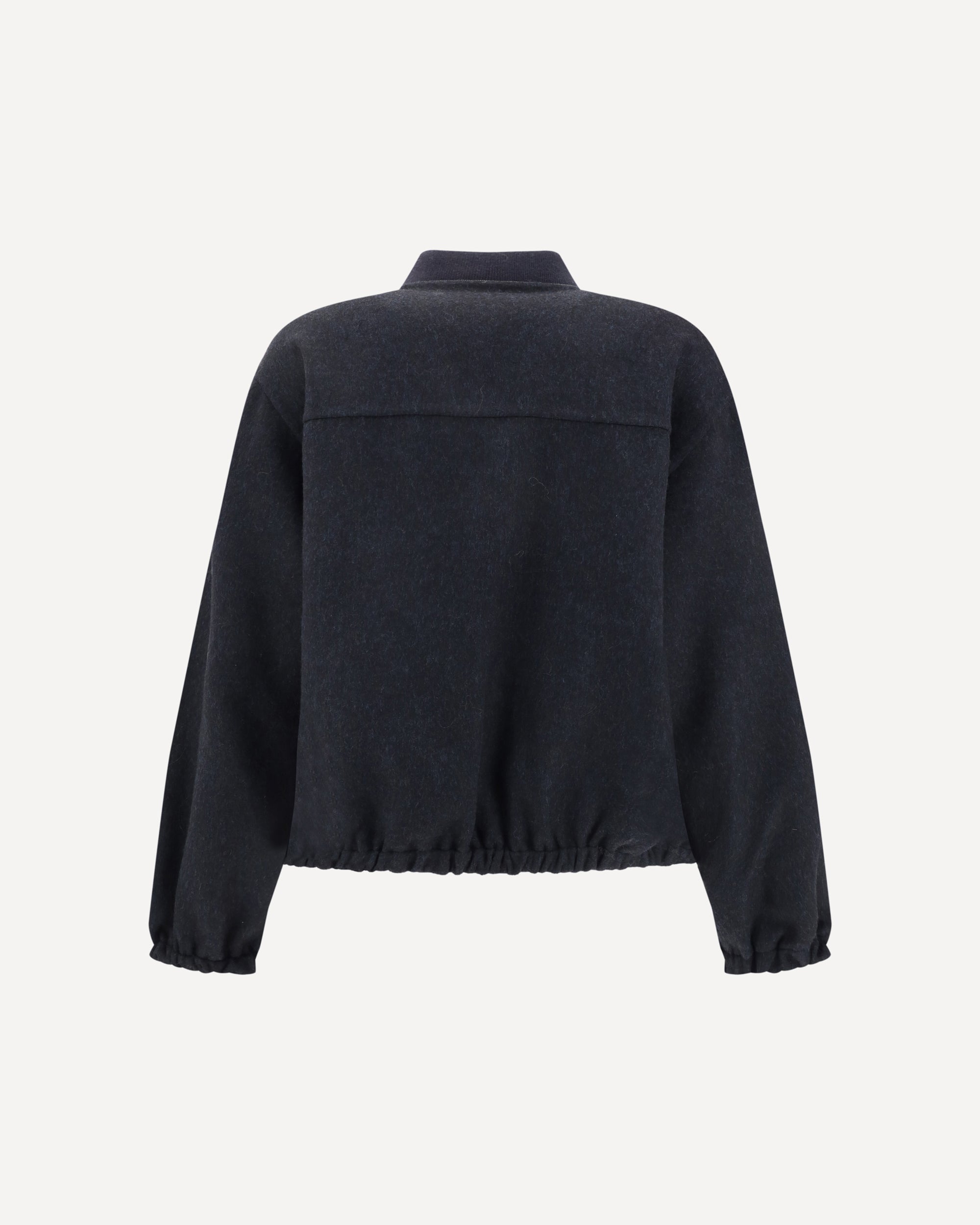 La Giacca in lana vergine di Brunello Cucinelli è un capo sofisticato e versatile, caratterizzato da un colletto a costine che aggiunge un dettaglio di stile discreto. La chiusura frontale con cerniera a doppio cursore è impreziosita da iconici monili brillanti, che donano un tocco di lusso al design. Le due tasche a filetto con patta sul fronte e le due tasche a fessura laterali offrono funzionalità senza compromettere l'eleganza. I polsini elasticizzati e l'orlo elasticizzato garantiscono una vestibilità comoda e moderna, mentre la vestibilità oversize conferisce un look rilassato e contemporaneo.