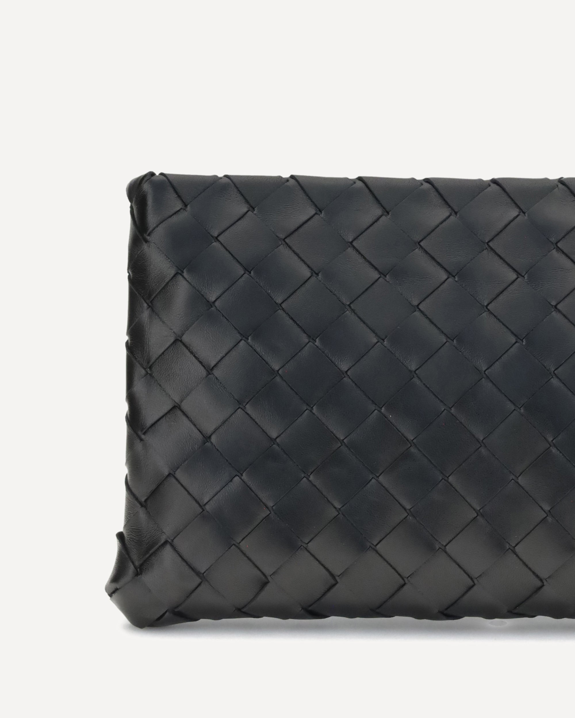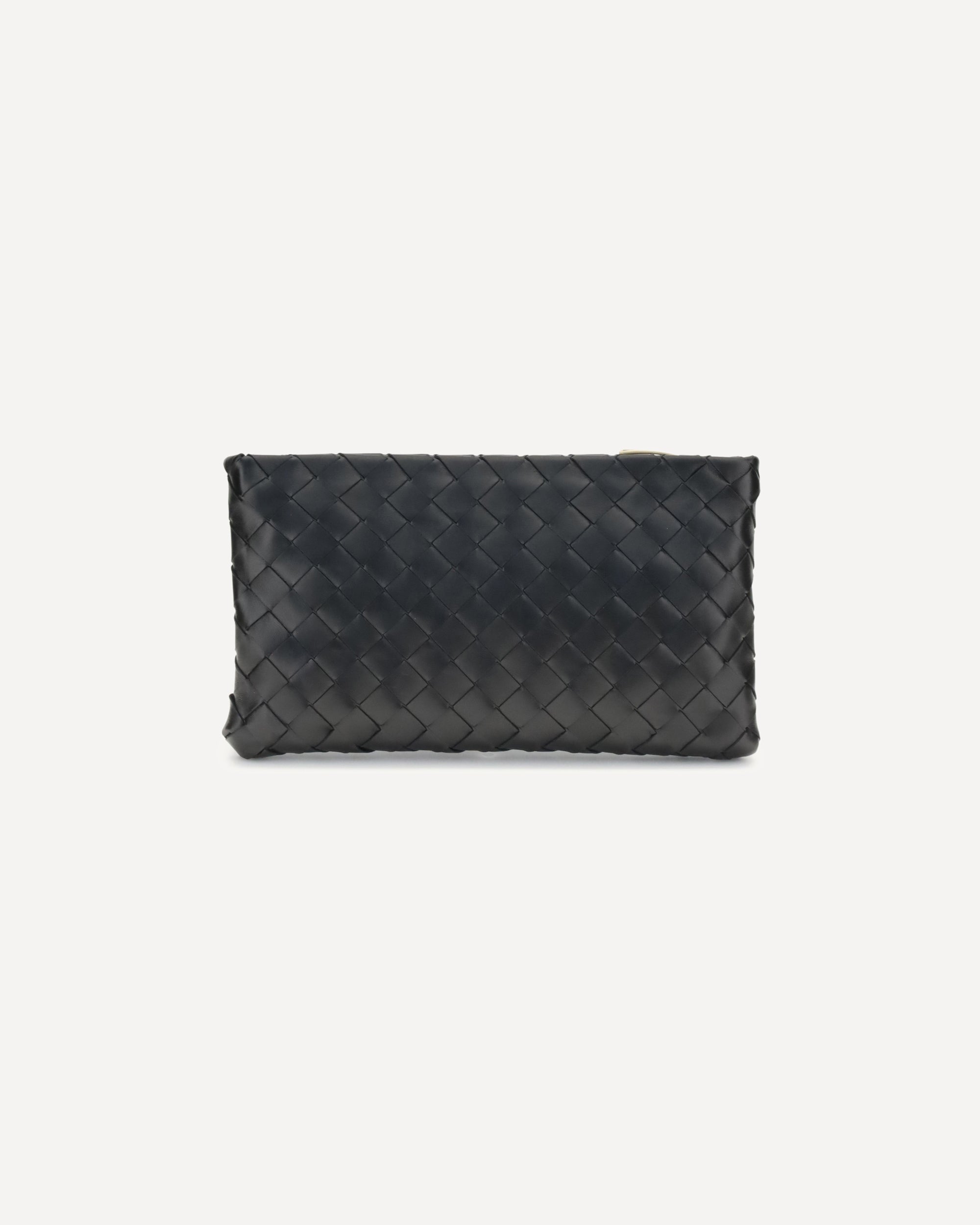 Pouch in pelle di Bottega Veneta, esempio perfetto dell’eleganza discreta e dell’artigianalità del brand. Caratterizzata dall’iconico motivo intrecciato all-over, presenta una chiusura superiore con cerniera che garantisce praticità e sicurezza. L'interno, composto da un unico scomparto, include slot portacarte integrato per una migliore organizzazione degli oggetti essenziali.