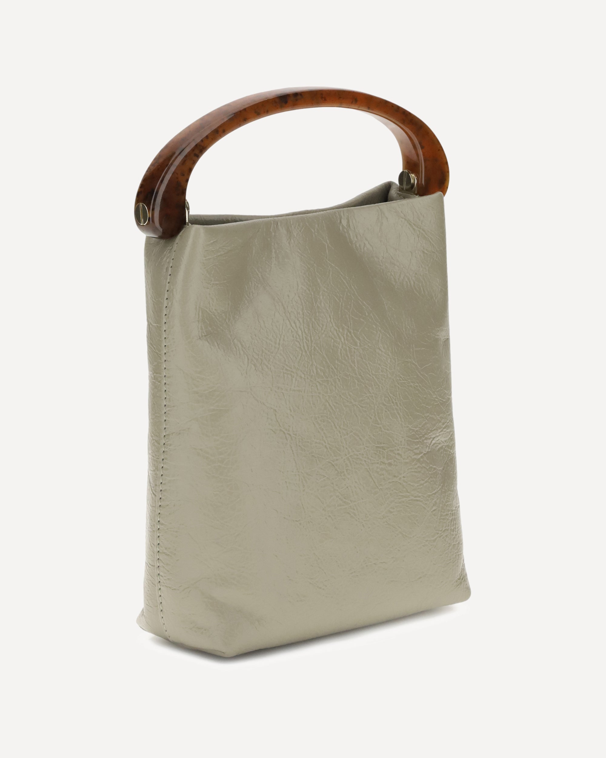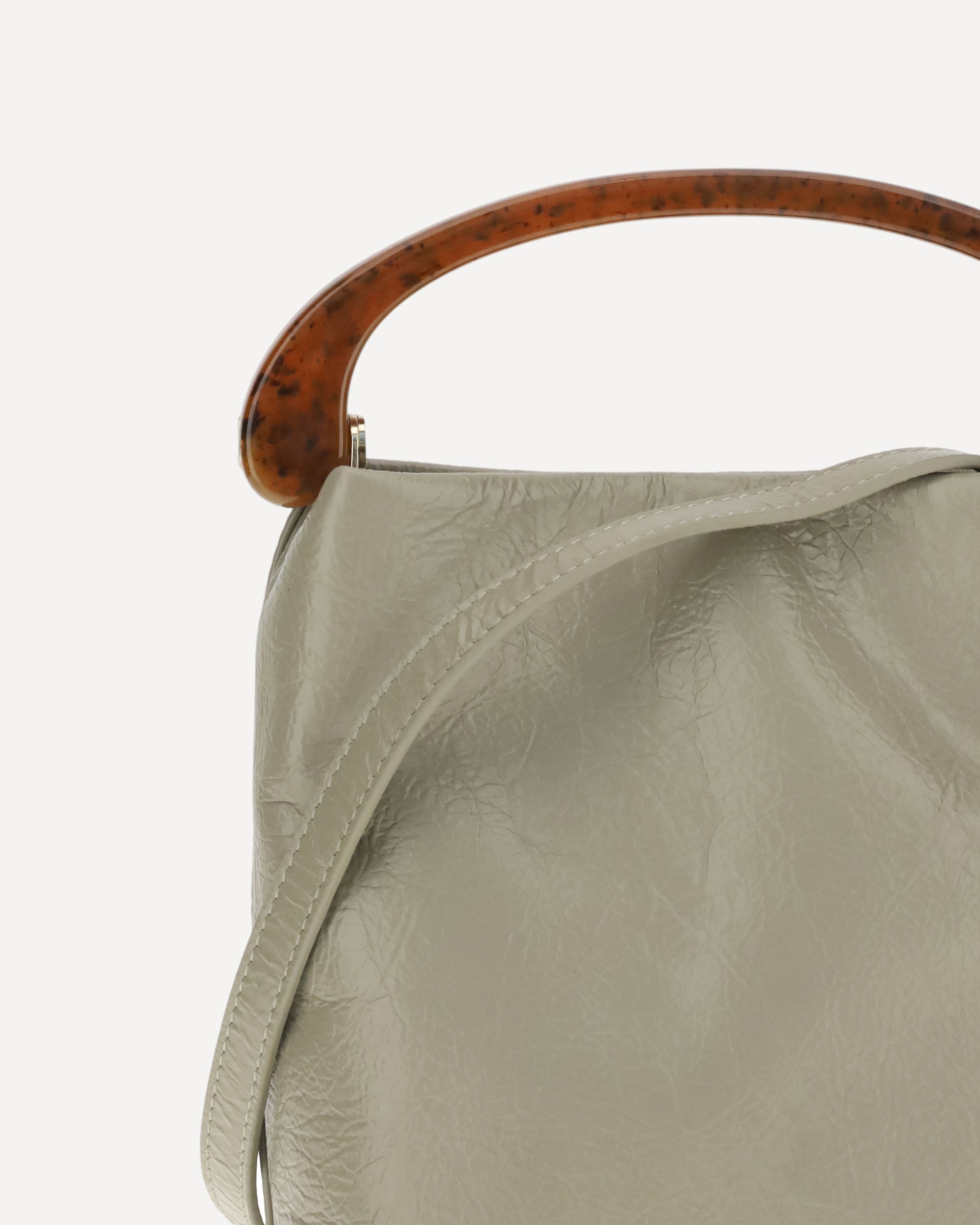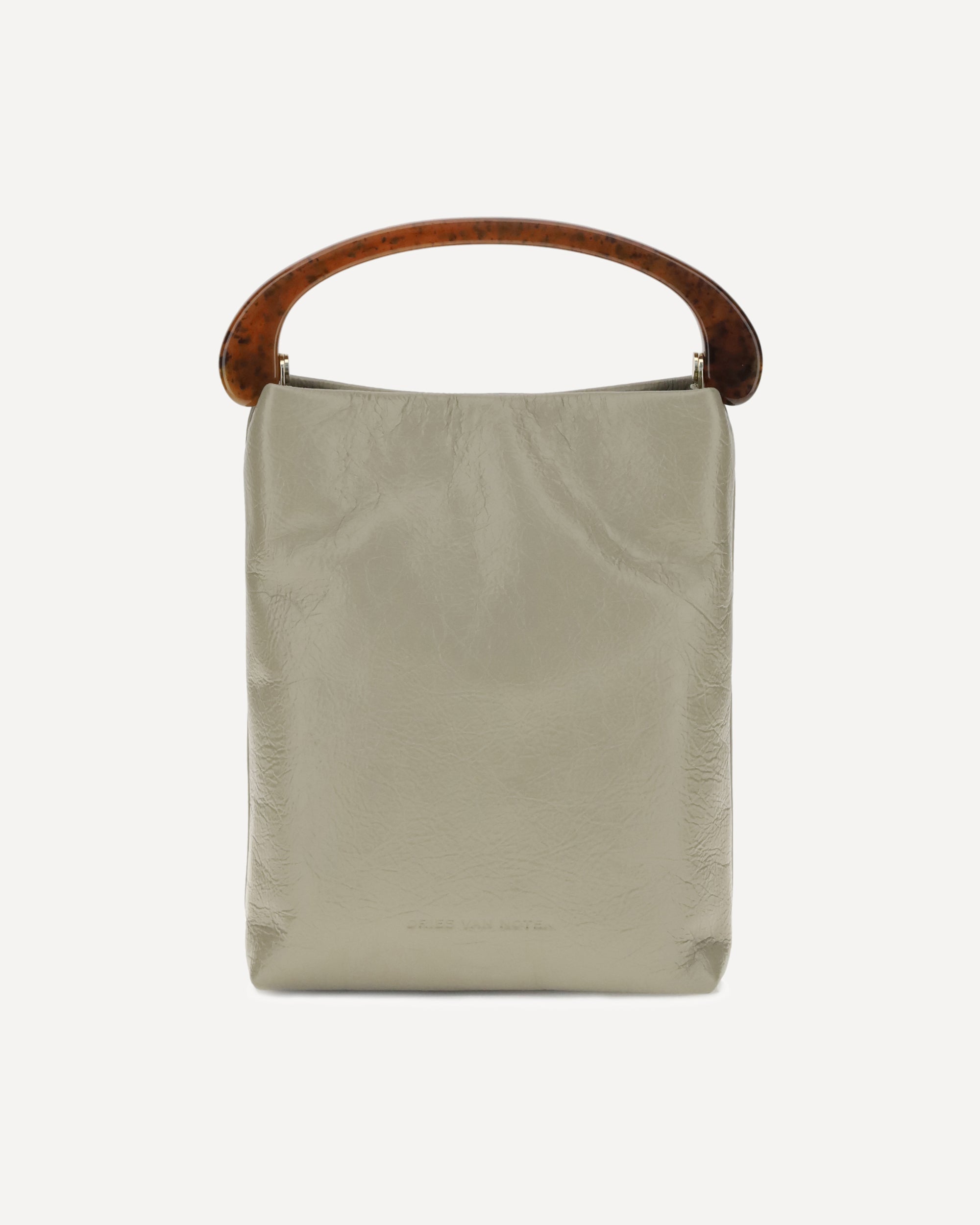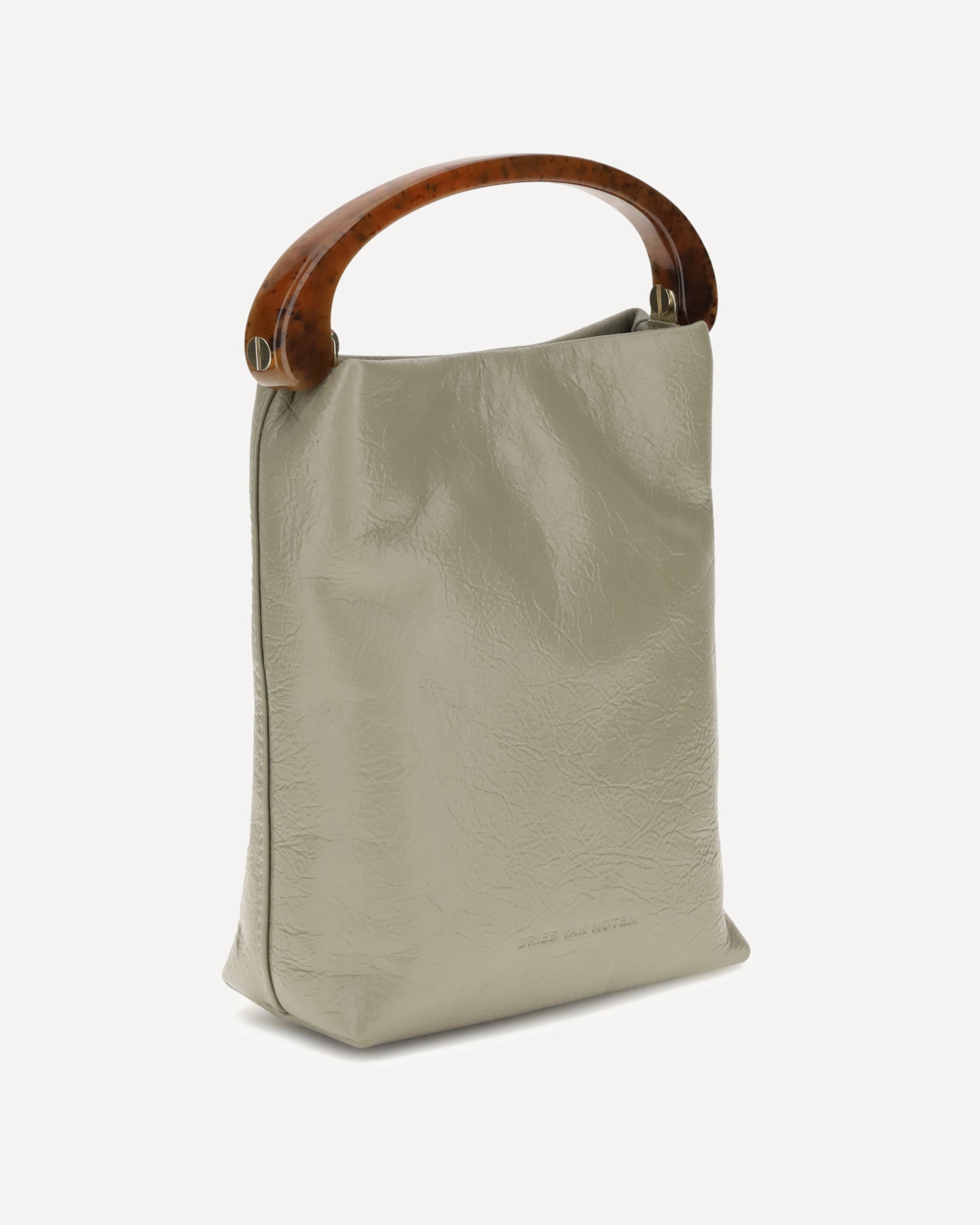 La Borsa a Mano micro di Dries Van Noten è un accessorio compatto e di carattere, perfetto per aggiungere un tocco distintivo al look. Dotata di un manico superiore in resina dal design scultoreo, è completata da una tracolla regolabile e staccabile che ne amplia la versatilità. L’interno è organizzato con una pratica tasca con zip, mentre la chiusura superiore con bottone magnetico assicura funzionalità e stile essenziale.
