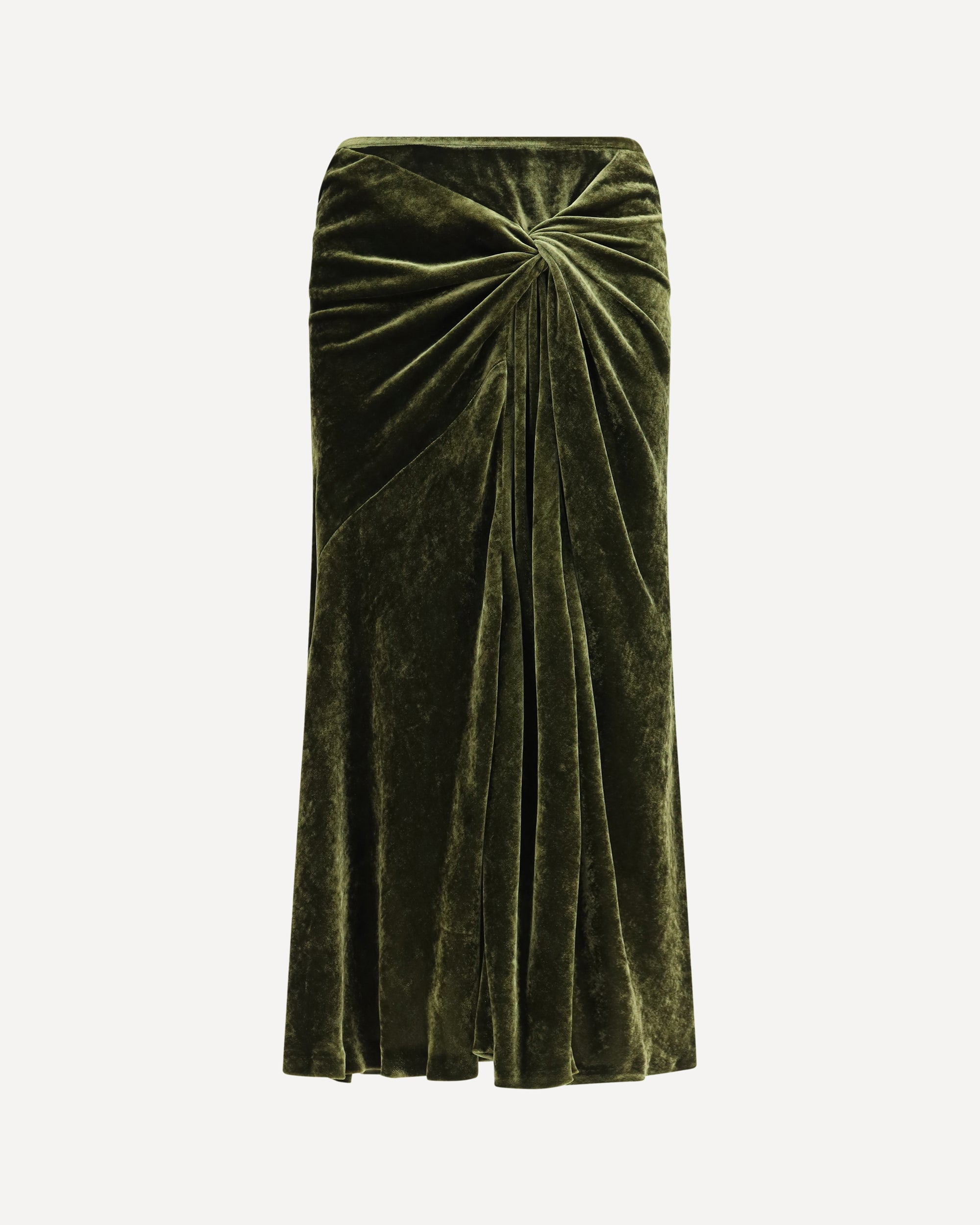 La Gonna midi drappeggiata di Dries Van Noten unisce fluidità e raffinatezza in un capo dal carattere elegante. La silhouette a vita regolare scivola morbida sul corpo, mentre il dettaglio nodo sul davanti aggiunge un tocco sofisticato. La chiusura laterale con zip completa il design, perfetto per look contemporanei e versatili.