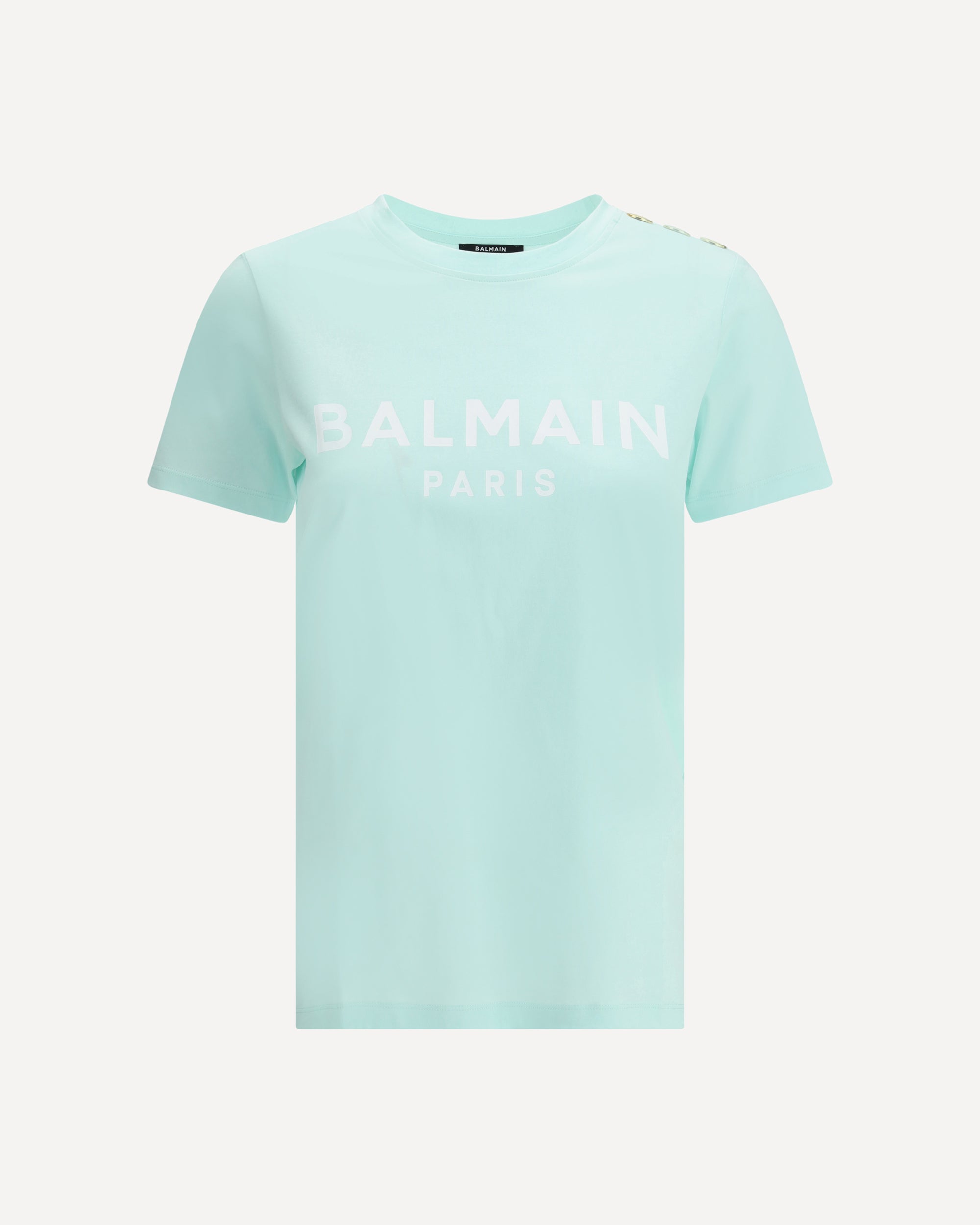 La T-Shirt in cotone di Balmain unisce il minimalismo della fantasia monocromo all’eleganza dei dettagli iconici della Maison. Realizzata in morbido cotone, presenta un girocollo a costine e una vestibilità regular pensata per il comfort quotidiano. Il design è arricchito dall’iconico monogramma Balmain stampato a contrasto sul fronte e dagli inconfondibili bottoni goffrati applicati sulla spalla sinistra, firma distintiva del brand. Un capo essenziale e sofisticato, perfetto per aggiungere un tocco luxury ai look casual.