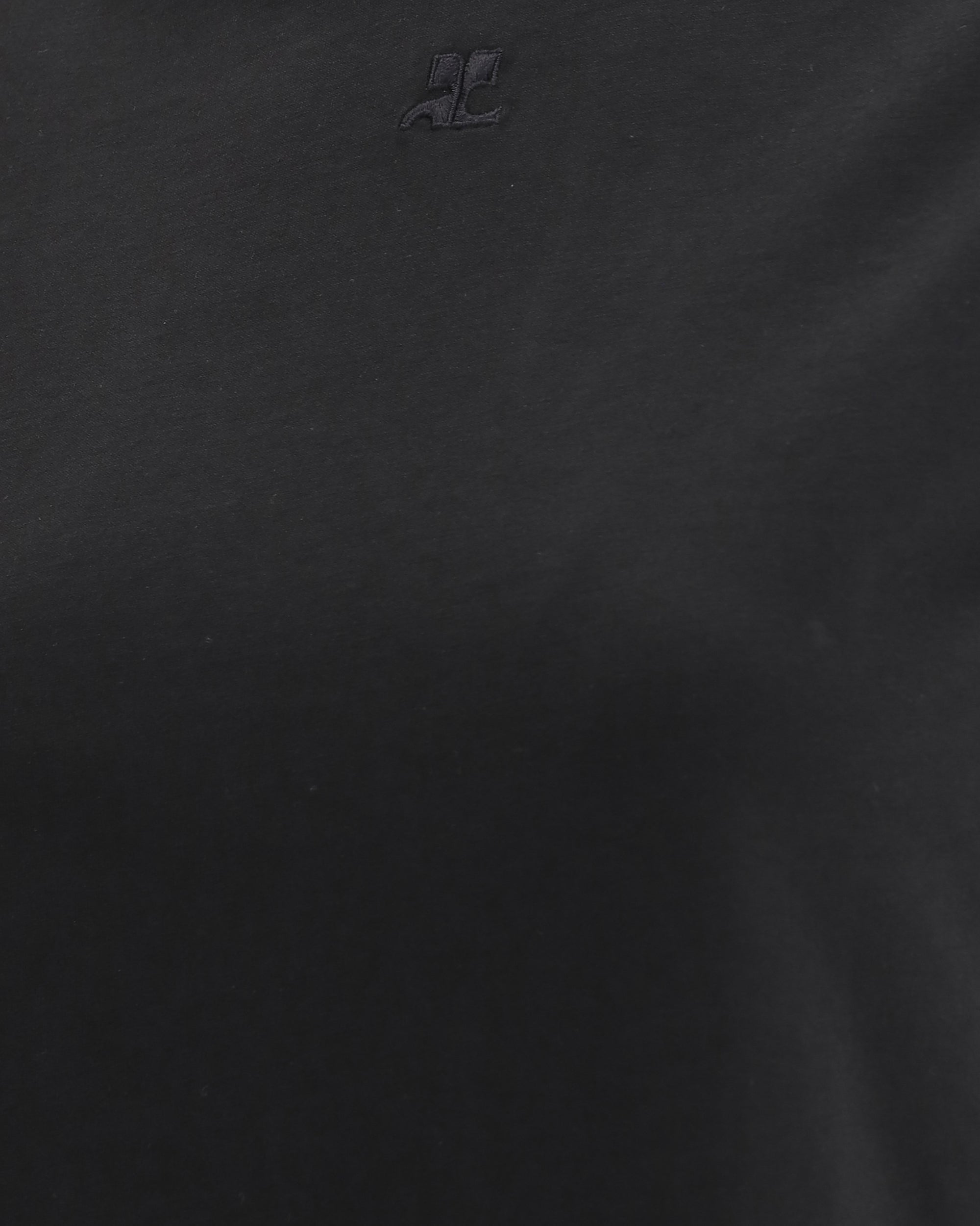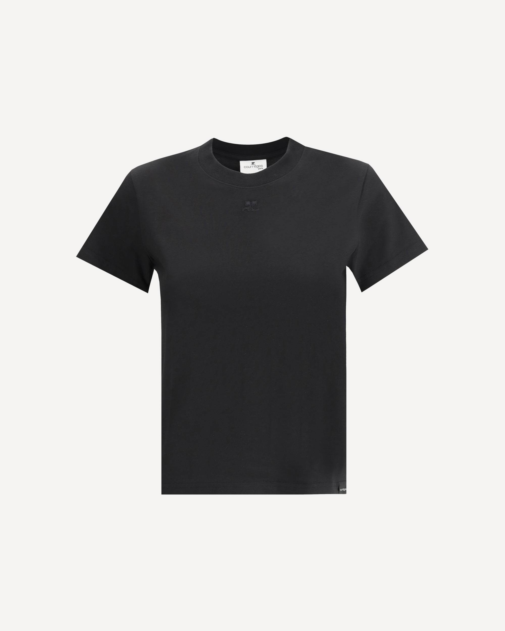 T-Shirt Ac in Cotone di Courrèges, girocollo a costine, iconico log brand ricamato sul fronte, patch iconico monogramma brand applicata sull'orlo, fantasia monocromo, vestibilità regular.
