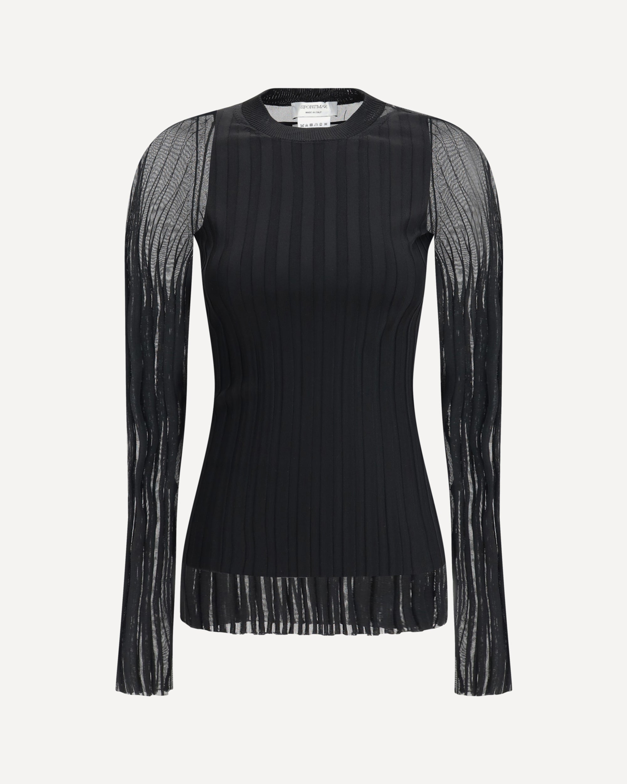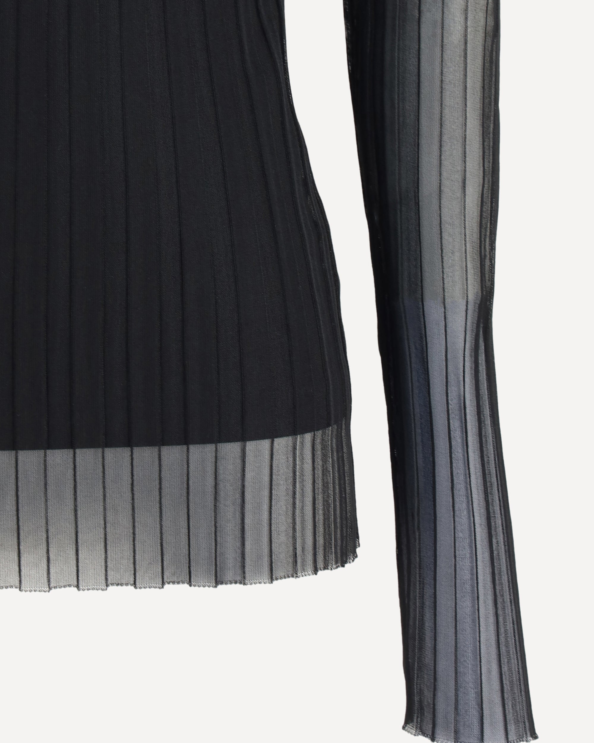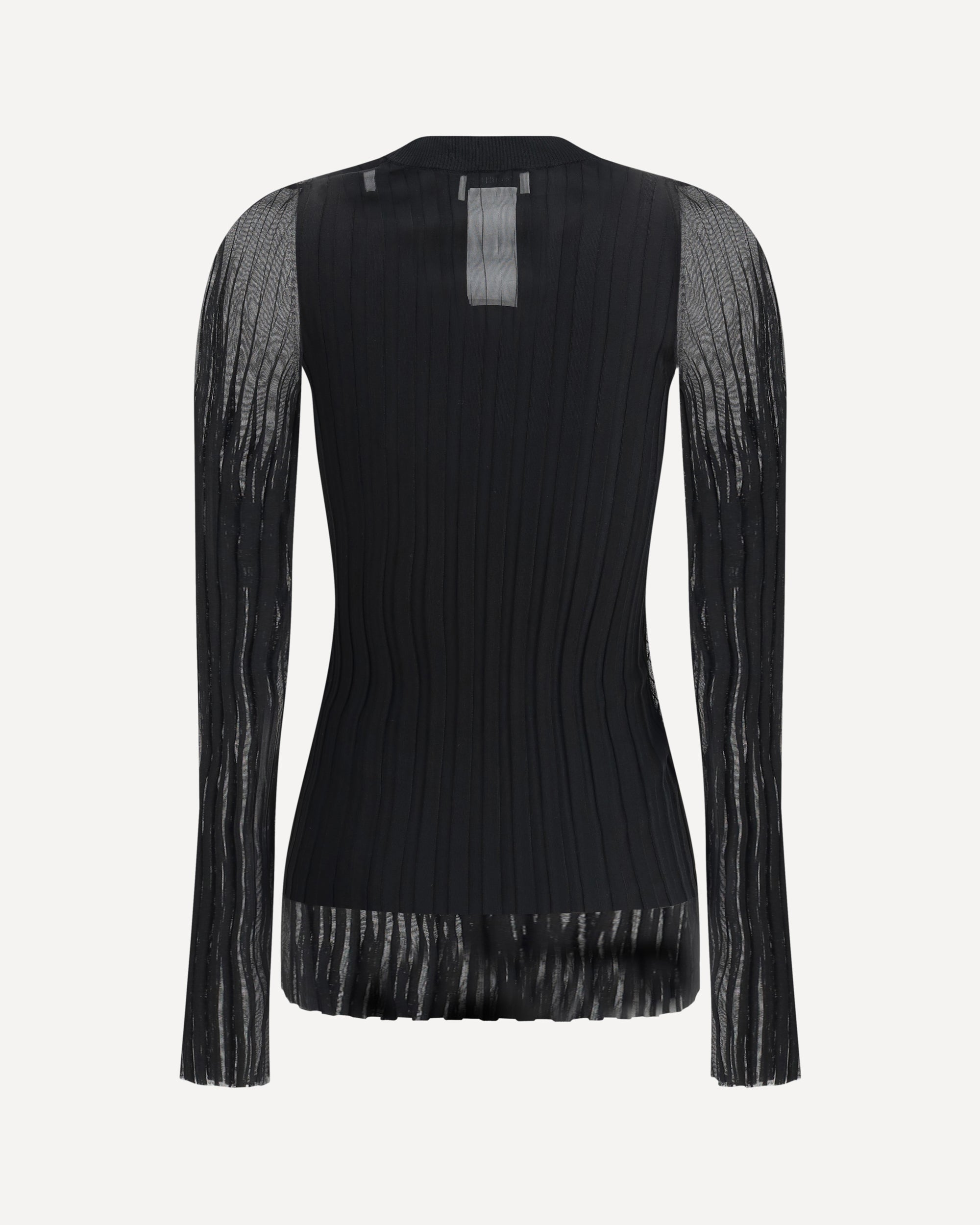 La Maglia a maniche lunghe Acino1234 di Max Mara Sportmax unisce eleganza e modernità con il suo design a doppio strato. Il top interno coprente assicura comfort, mentre lo strato esterno plissettato e semitrasparente aggiunge un tocco sofisticato. Il girocollo a costine e la vestibilità slim valorizzano la silhouette, rendendola perfetta per look raffinati e versatili.