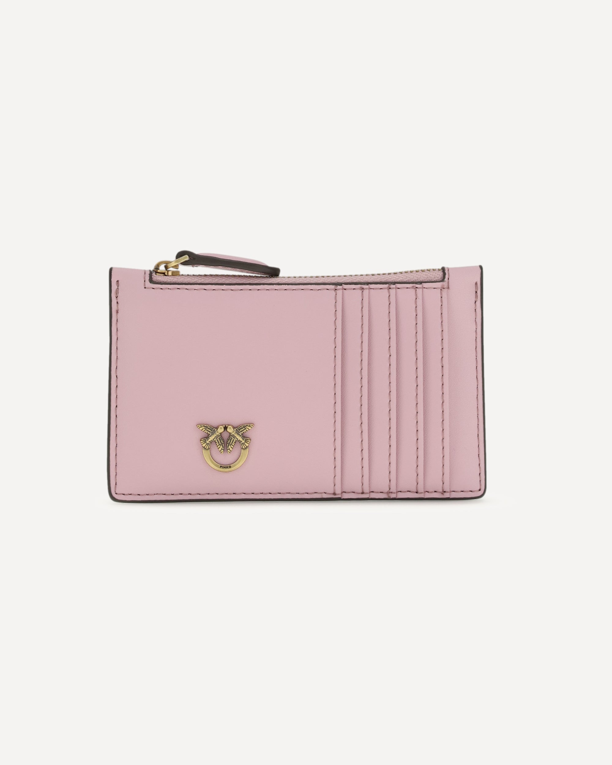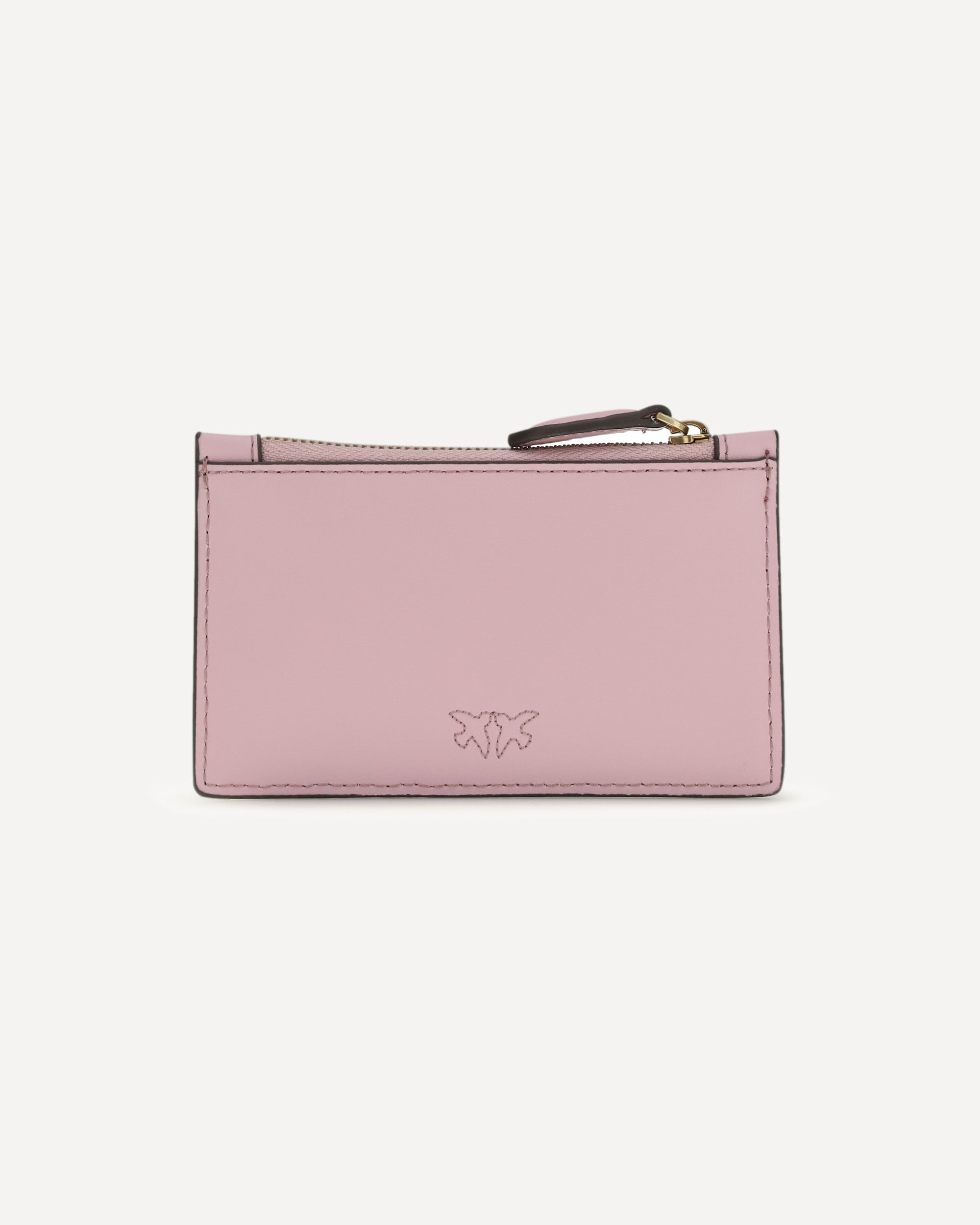 Il Portacarte in pelle di Pinko è un accessorio compatto e raffinato, dotato di slot portacarte e scomparto portamonete con chiusura a cerniera, impreziosito sul fronte dall’iconico Love Birds in rilievo.