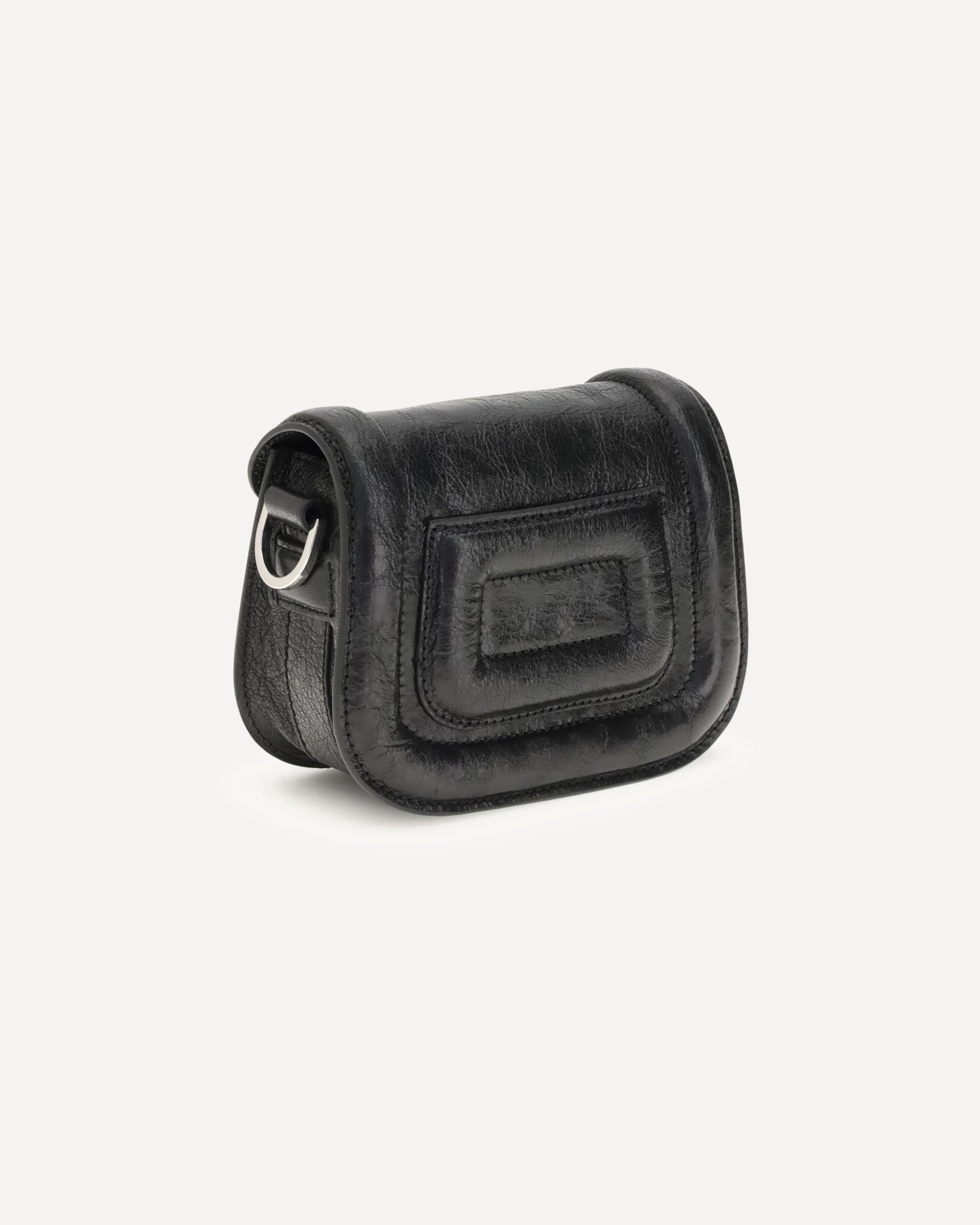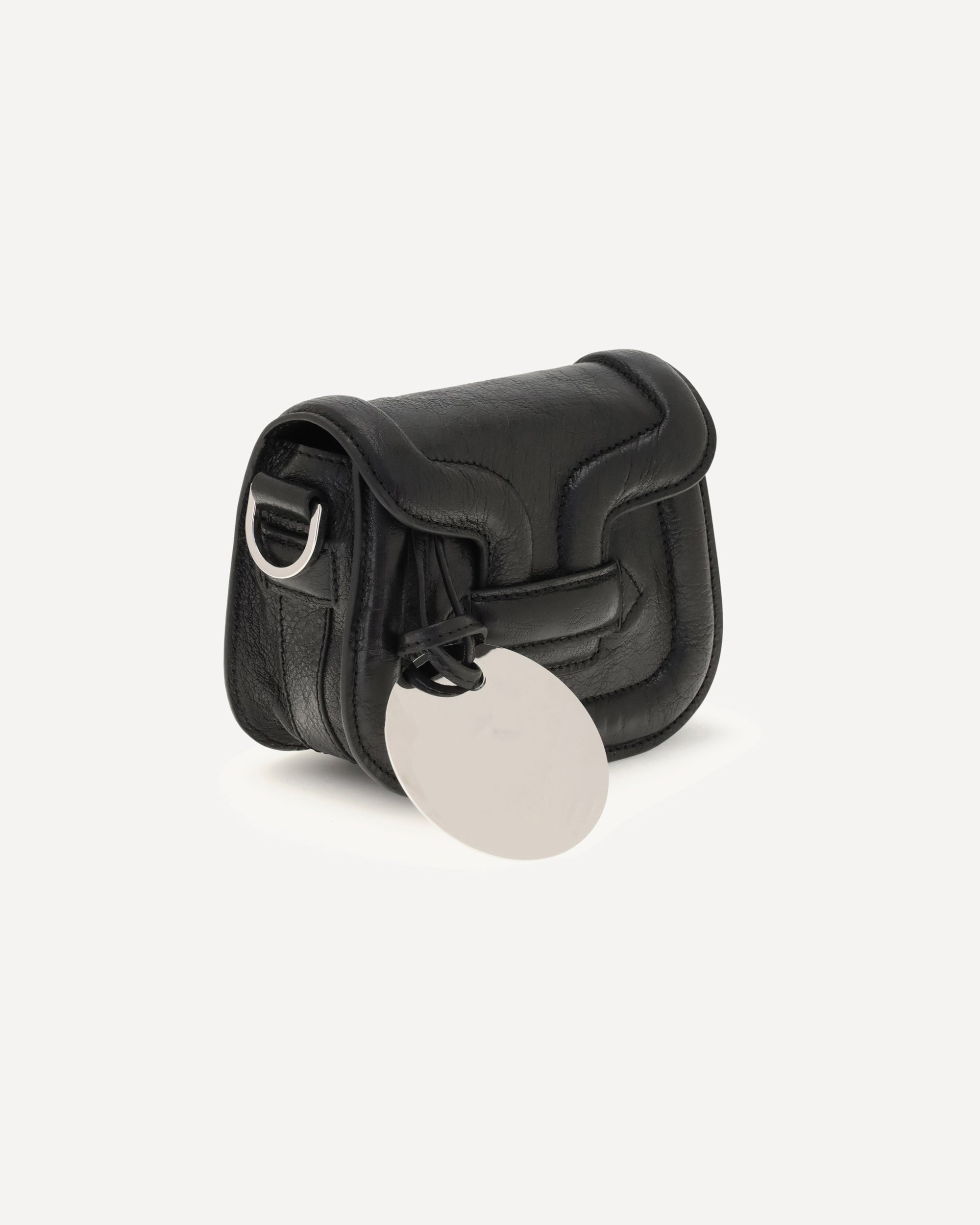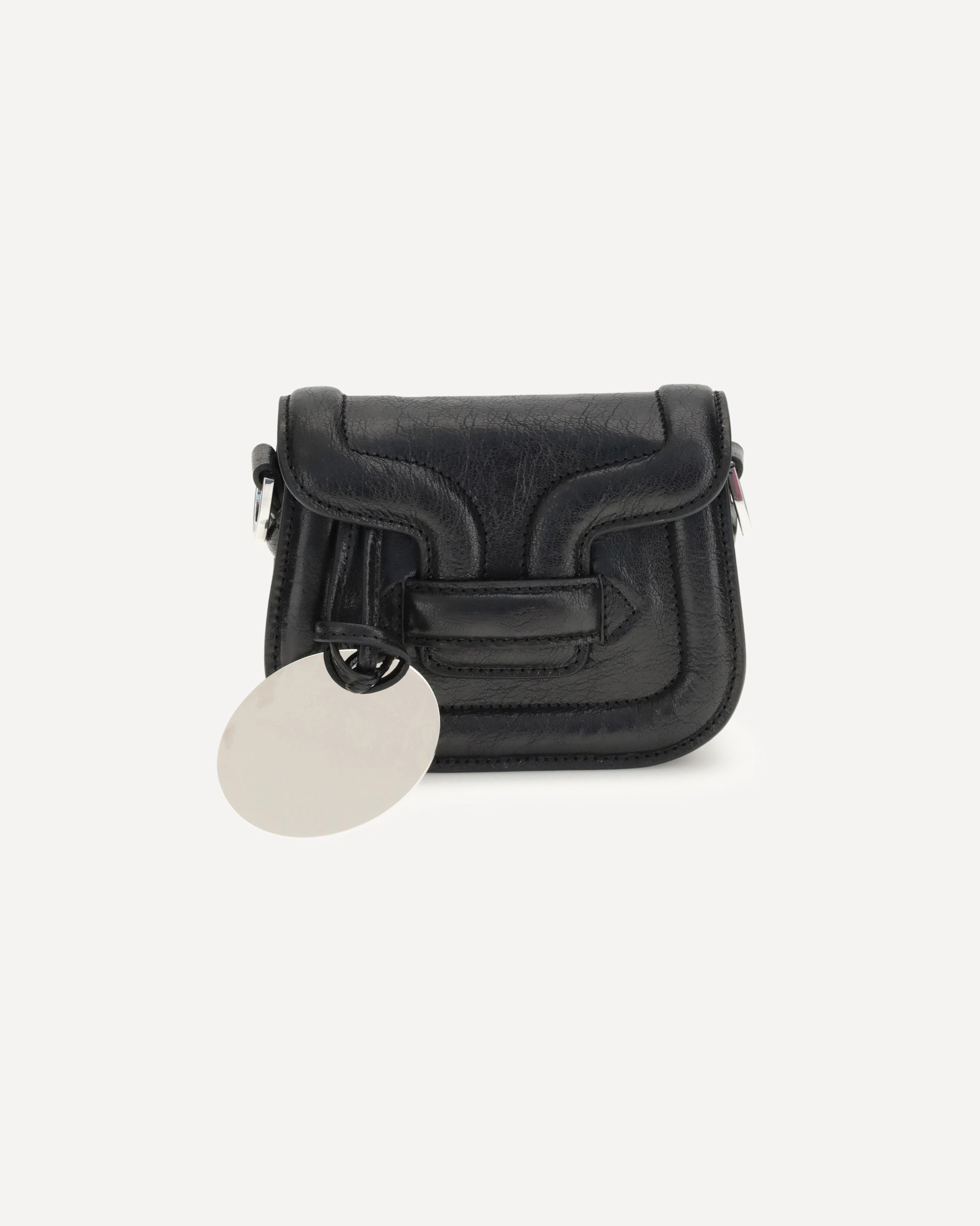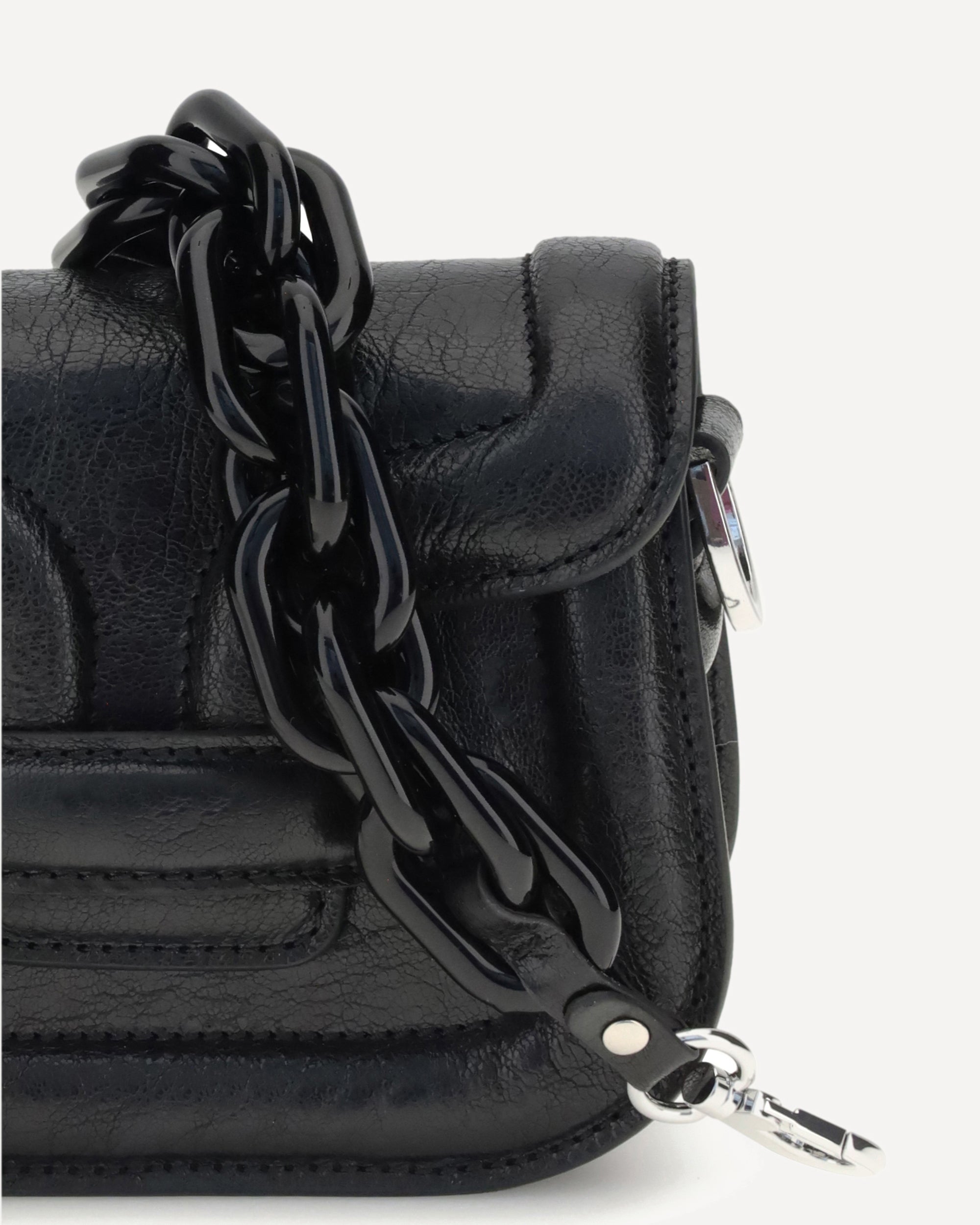 La Borsa a Mano Alphaville in pelle di Pierre Hardy combina eleganza grafica e funzionalità moderna. Dotata di un manico superiore con catena abbinata, presenta una tasca frontale con pattina a incastro e una tasca a fessura sul retro. La tracolla piatta, regolabile e removibile, consente un uso versatile. La chiusura con bottone magnetico apre a un interno ben organizzato con due tasche a fessura, ideale per tenere in ordine gli oggetti essenziali. Un accessorio sofisticato, perfetto per completare look sia da giorno che da sera.