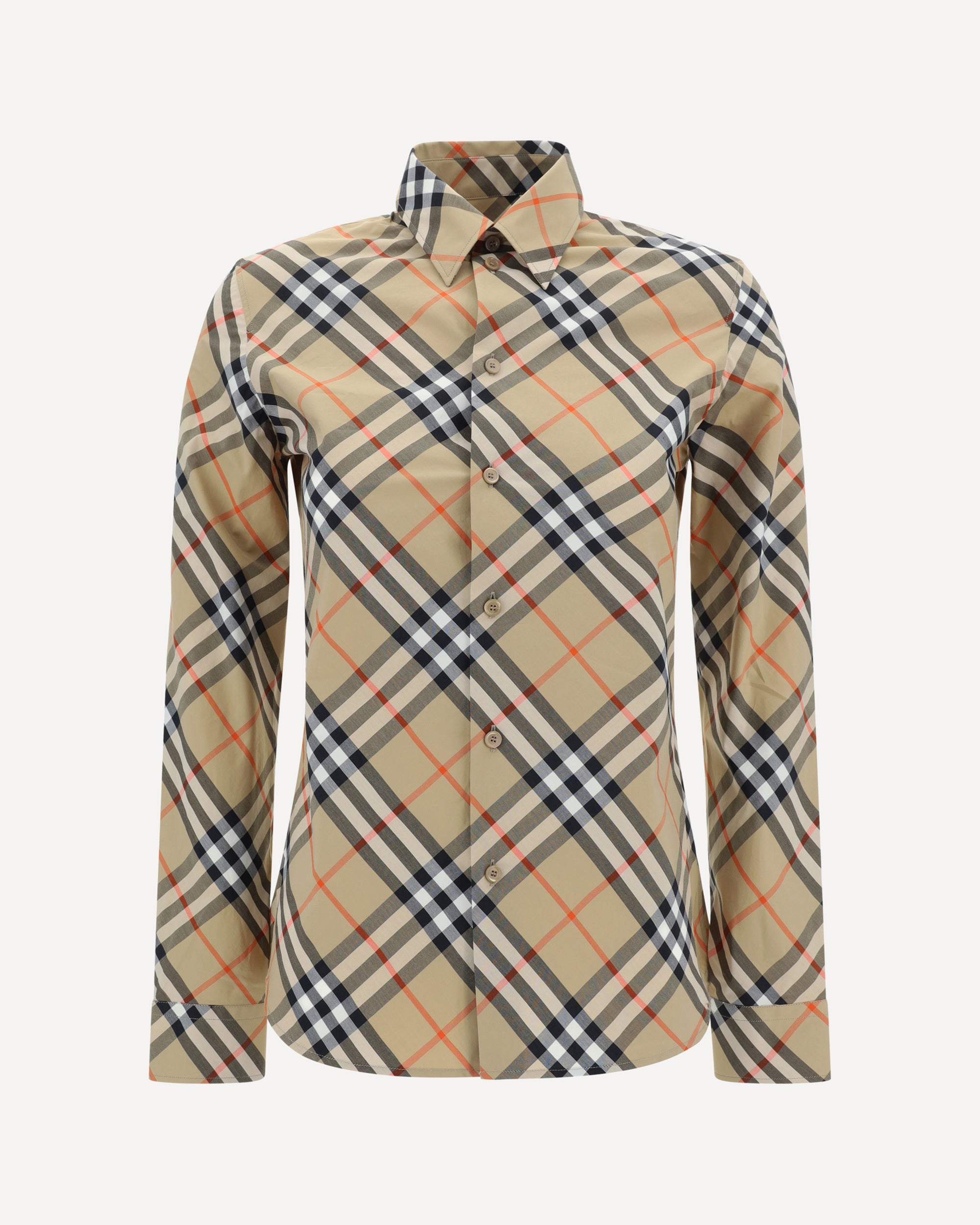 La Camicia in cotone di Burberry è un capo elegante e raffinato, perfetto per chi cerca uno stile senza tempo. Il colletto classico e la chiusura frontale con bottoni le conferiscono un aspetto pulito e sofisticato. L'orlo svasato aggiunge un tocco di femminilità, mentre i polsini regolabili con bottoncino permettono una vestibilità personalizzabile. La camicia è arricchita dall'iconica fantasia Check Archivio del brand, che la rende immediatamente riconoscibile e aggiunge un tocco di tradizione al look.