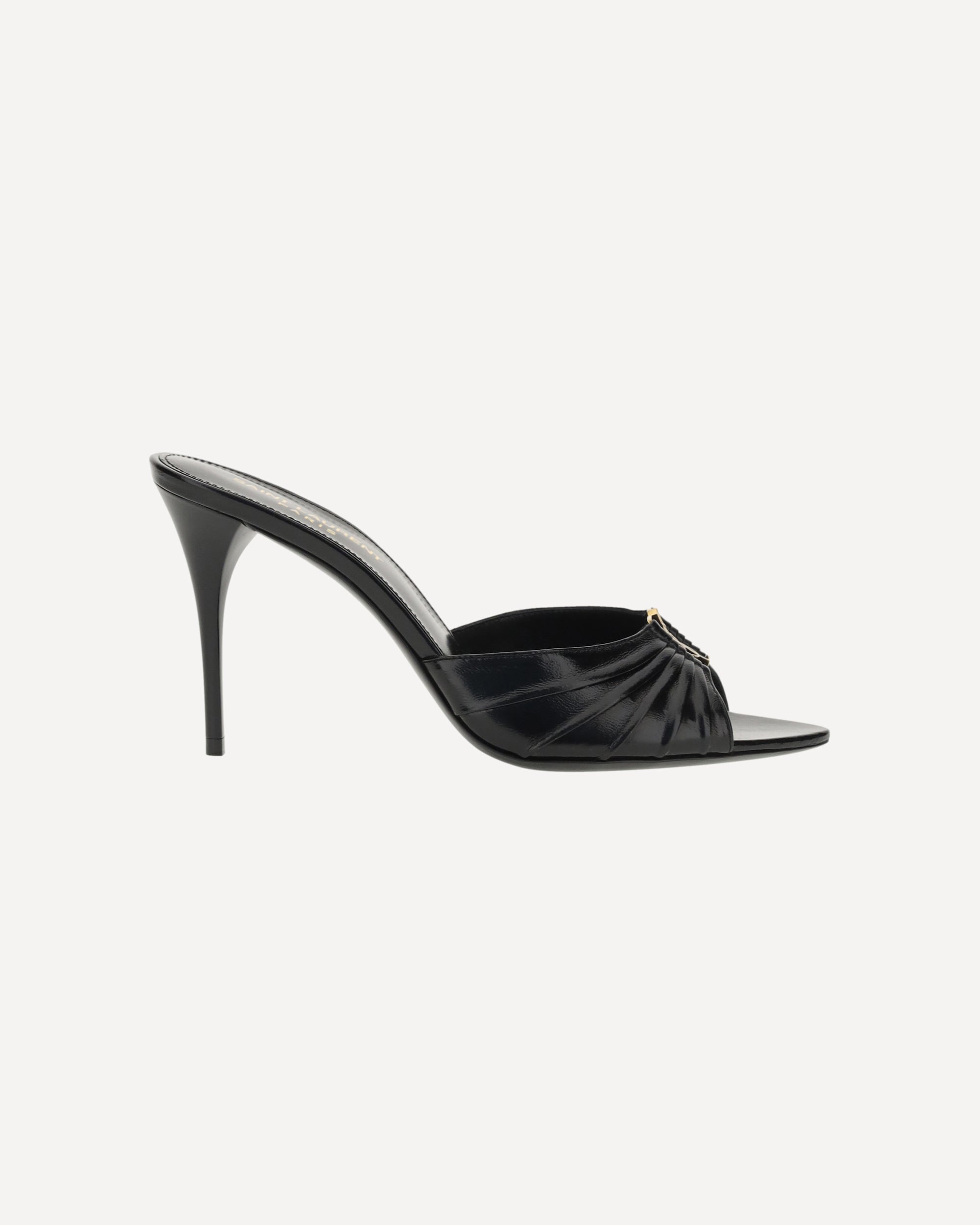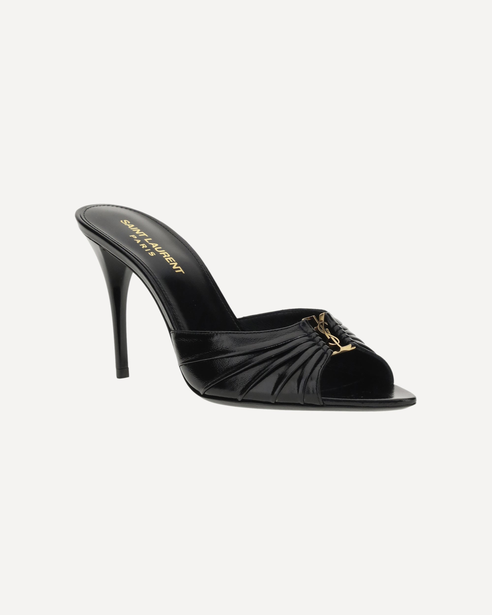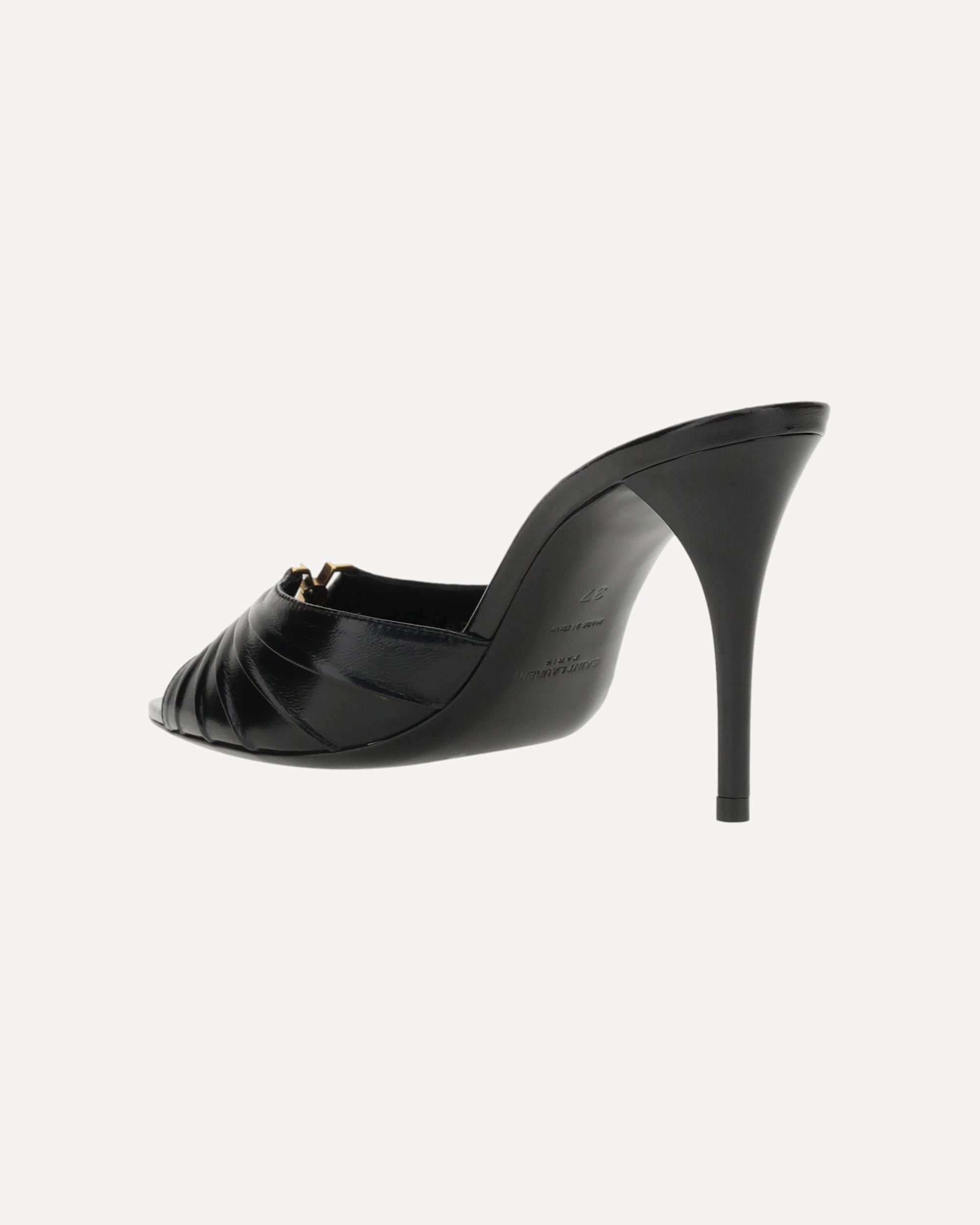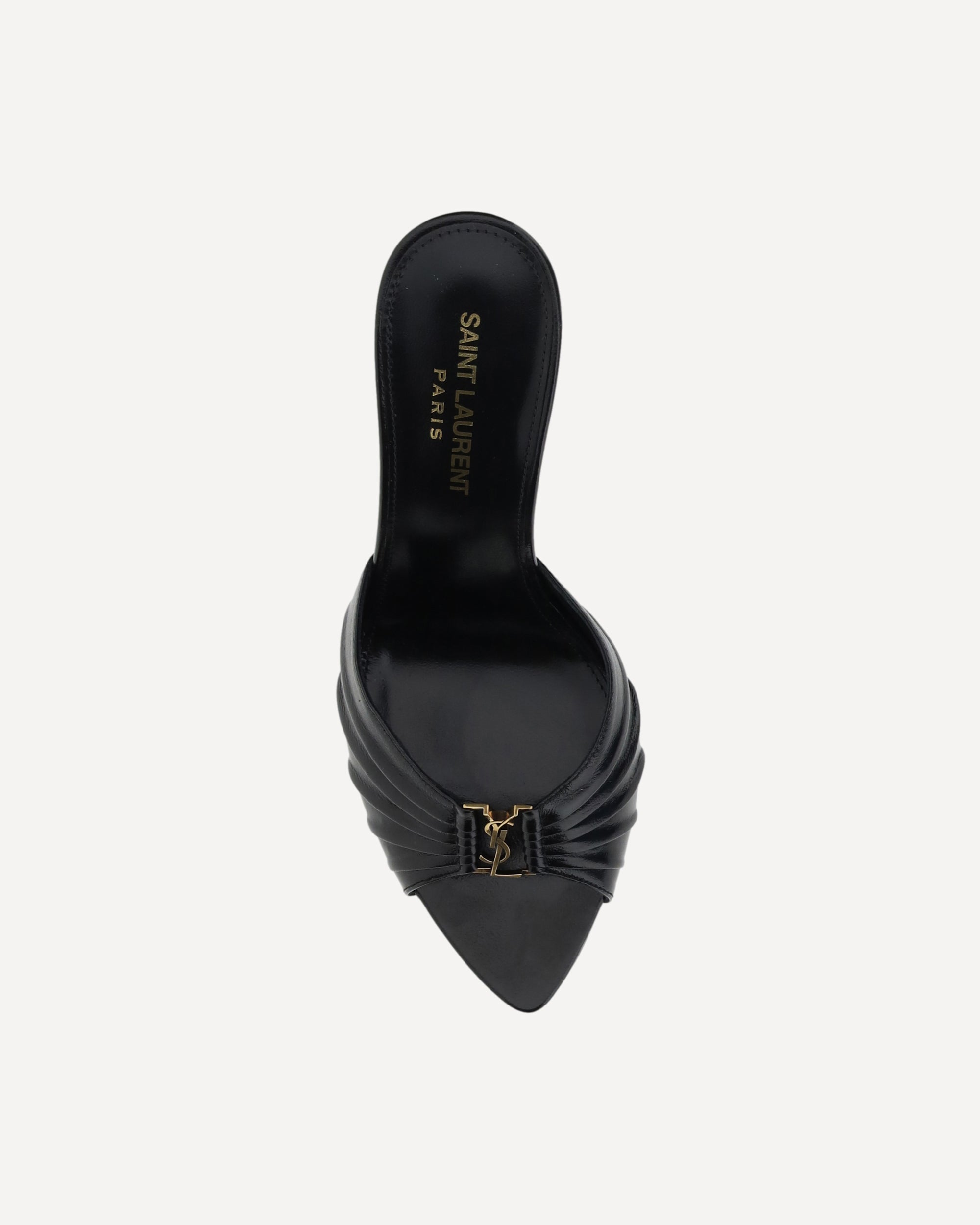 I sandali Babylone in morbida pelle d’agnello firmati Saint Laurent sono l’emblema della femminilità sofisticata. Caratterizzati da una raffinata punta a mandorla, si distinguono per l’iconico dettaglio metallico YSL applicato sul fronte, vero simbolo dell’eleganza della Maison. La soletta logata valorizza l’identità del brand, mentre il tacco a stiletto slancia la figura con classe e decisione.