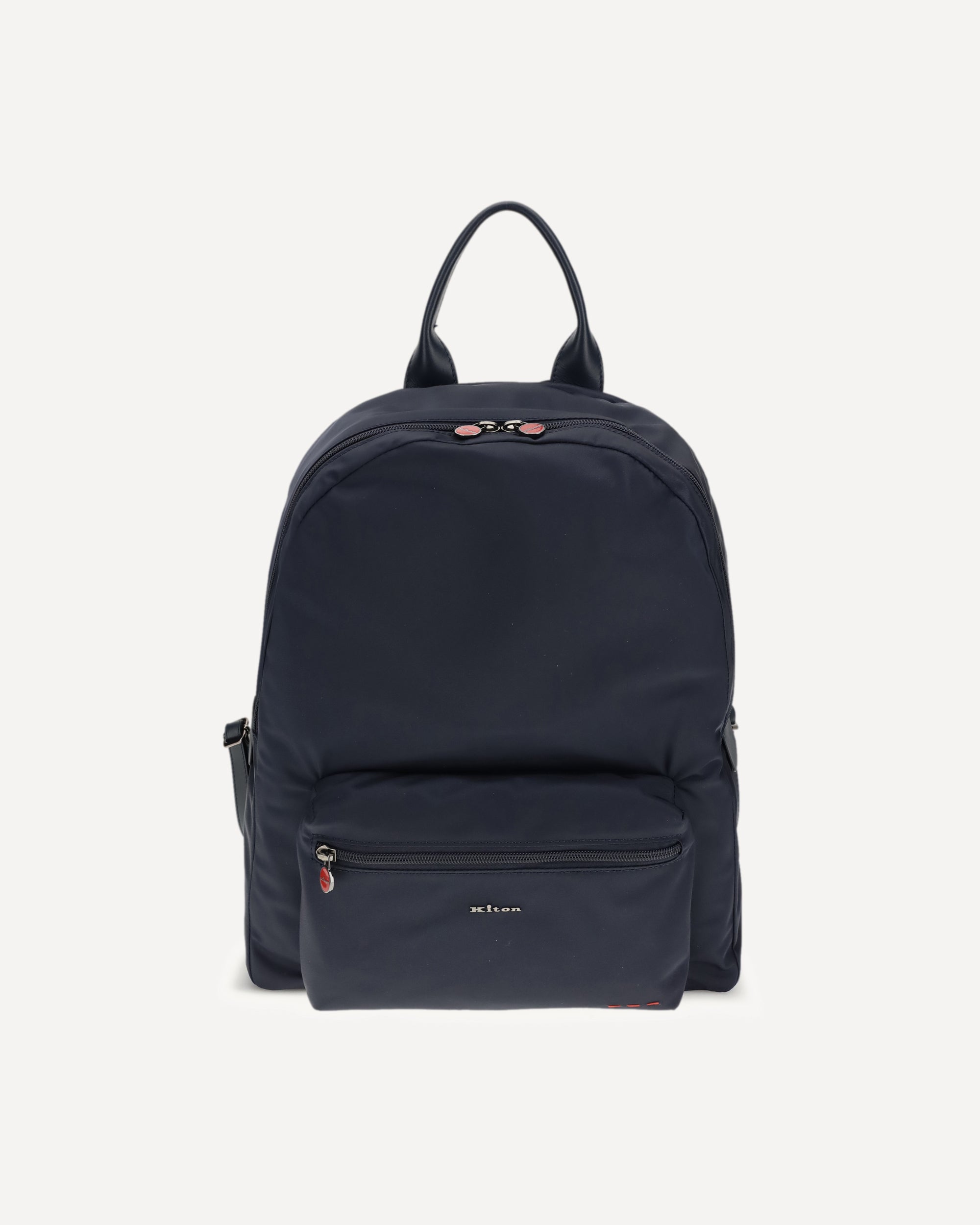 Lo Zaino di Kiton combina praticità e stile grazie alla realizzazione in nylon resistente e alla chiusura superiore con cerniera. Dotato di due spallacci regolabili e di un manico, offre comfort nella quotidianità, mentre la tasca frontale con zip e il logo in ottone sul fronte aggiungono funzionalità e un tocco distintivo.