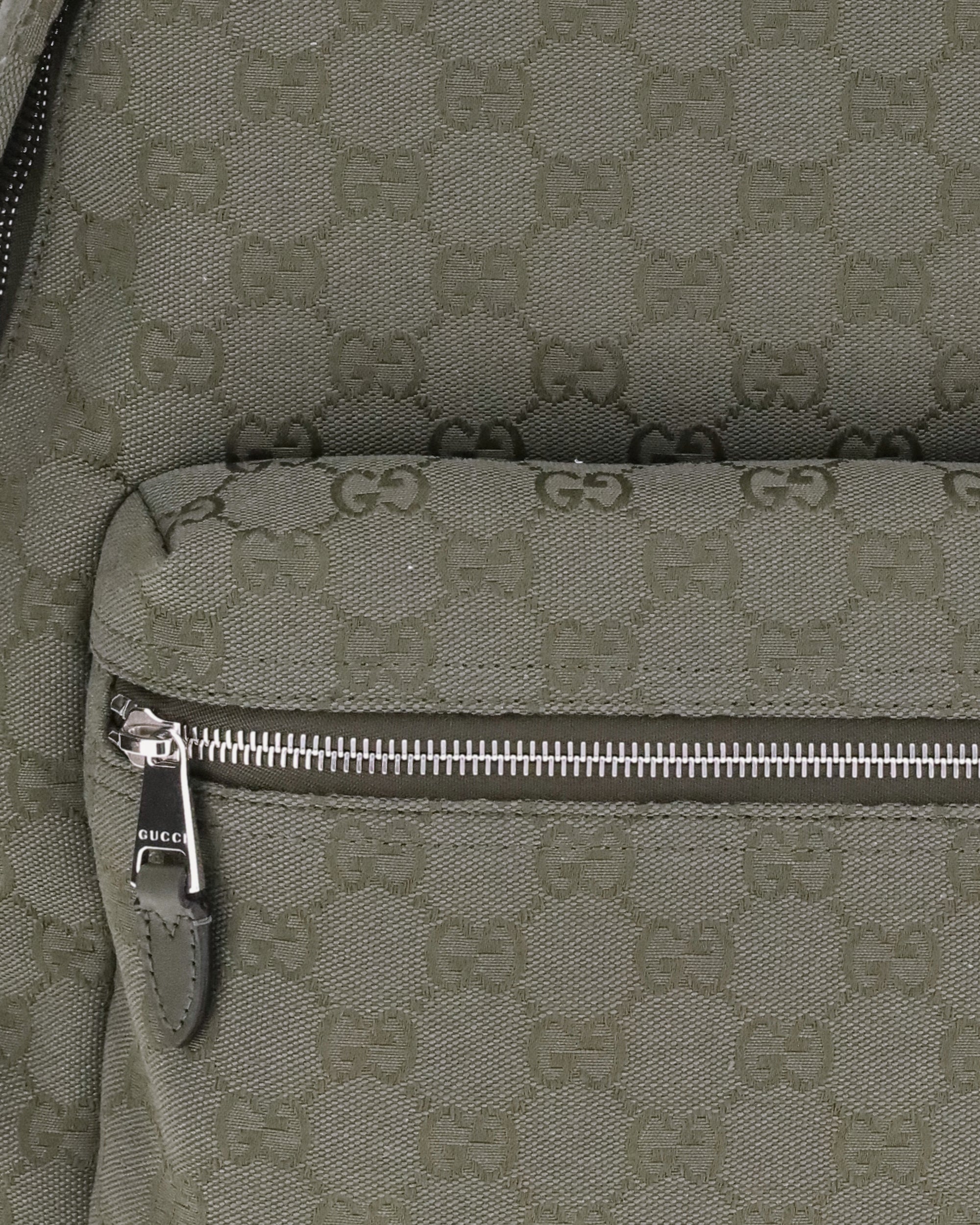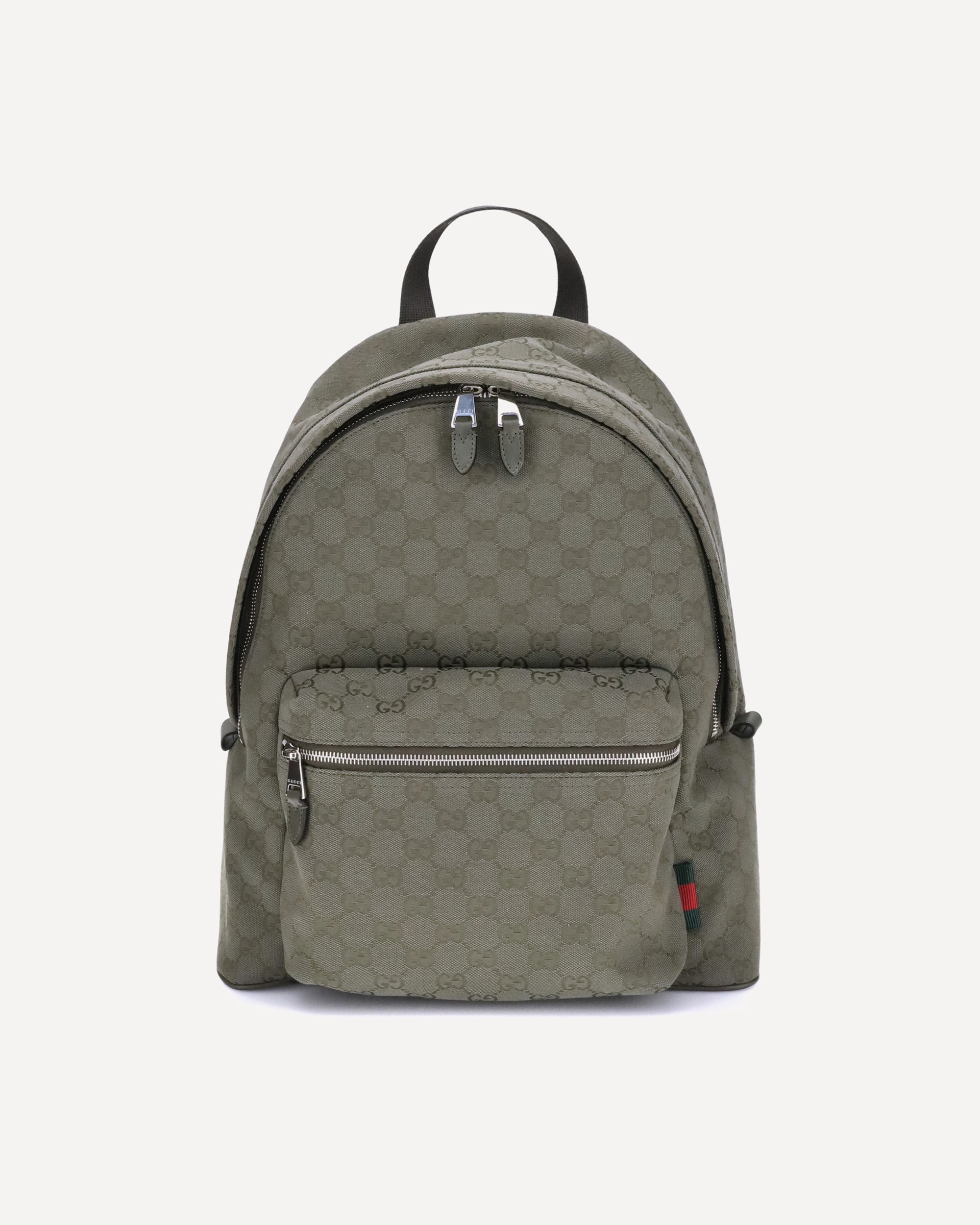 Lo Zaino in tessuto GG medio di Gucci è un accessorio funzionale e distintivo. Realizzato nell'iconico tessuto GG verde bosco, è arricchito da eleganti finiture in pelle dello stesso colore. Il celebre dettaglio Web verde e rosso aggiunge un tocco sportivo e immediatamente riconoscibile, mentre il logo Gucci sul retro ne certifica l'autenticità. Progettato per il comfort, presenta una fodera in nylon, e spallacci imbottiti regolabili. L'interno è organizzato con uno scomparto imbottito per laptop e una tasca aperta, mentre all'esterno si trova una tasca con cerniera per un accesso rapido. Completa il design un pratico manico e una sicura chiusura con cerniera, rendendolo ideale per l'uso quotidiano o per i viaggi.