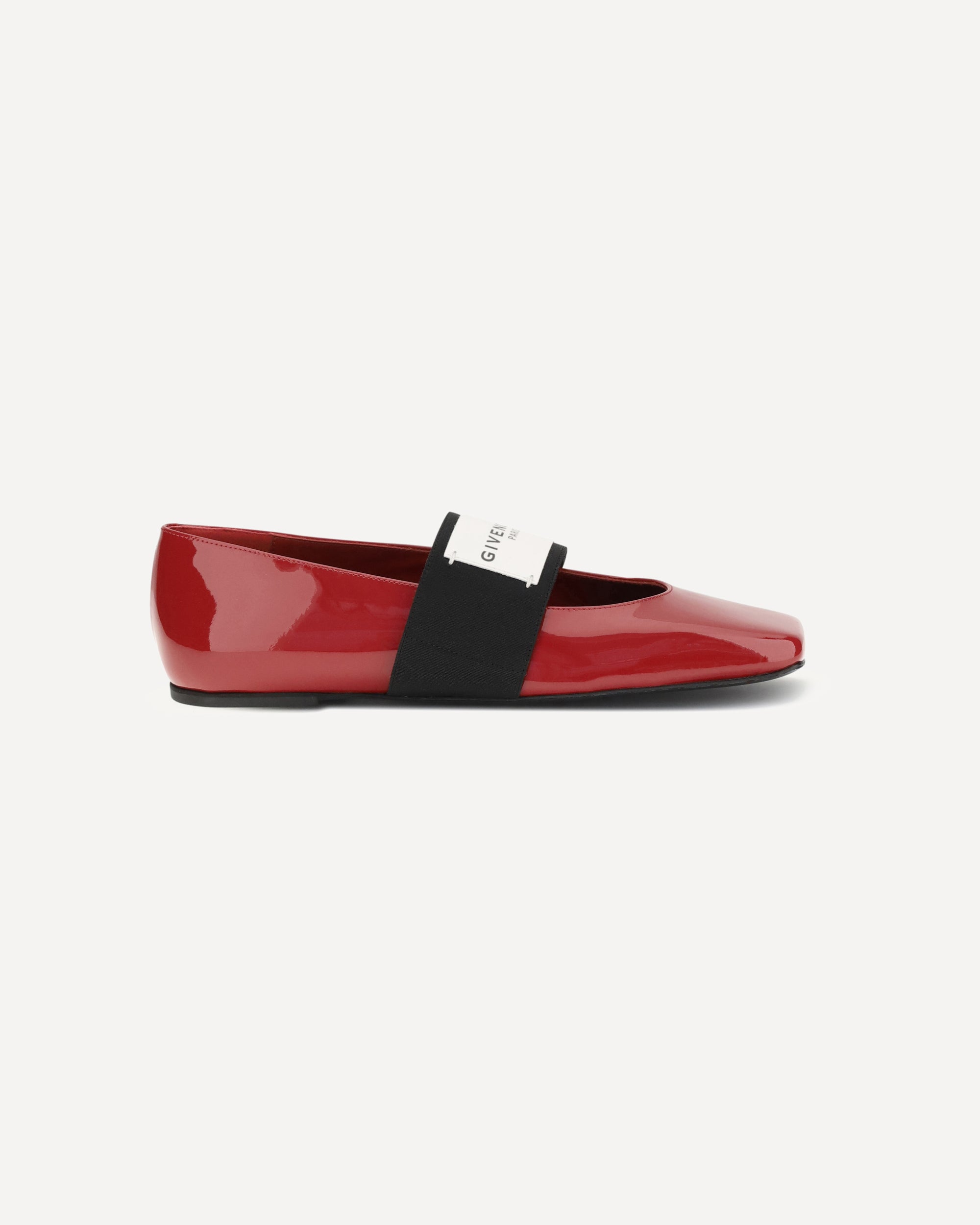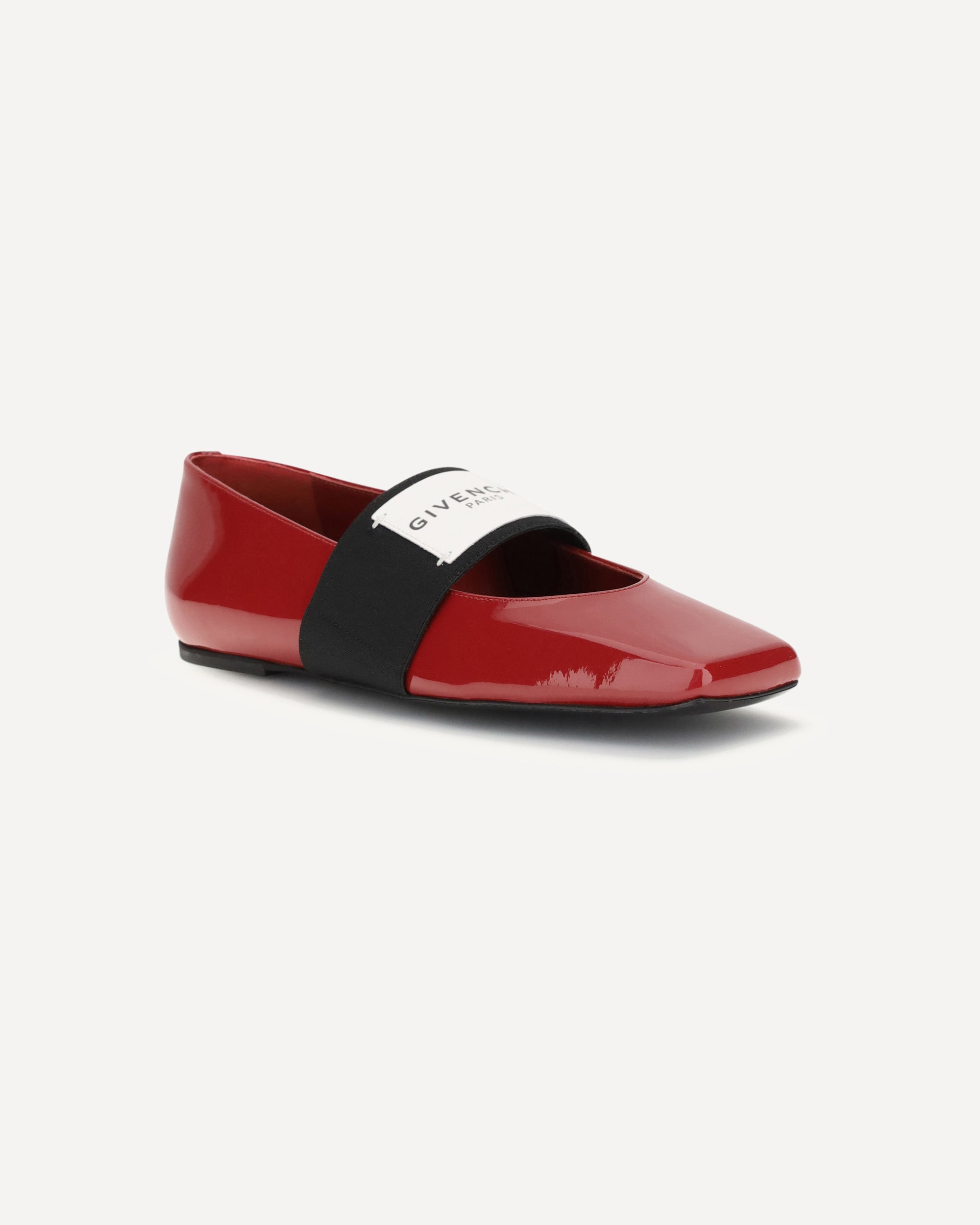 Le Ballerine Squared in pelle verniciata di Givenchy si distinguono per il design moderno e raffinato. Caratterizzate dalla punta quadrata, sono arricchite da un cinturino elastico sul collo del piede con l’etichetta Givenchy Paris, che aggiunge un dettaglio distintivo e contemporaneo. Il logo impresso all’interno completa con eleganza questo modello iconico.