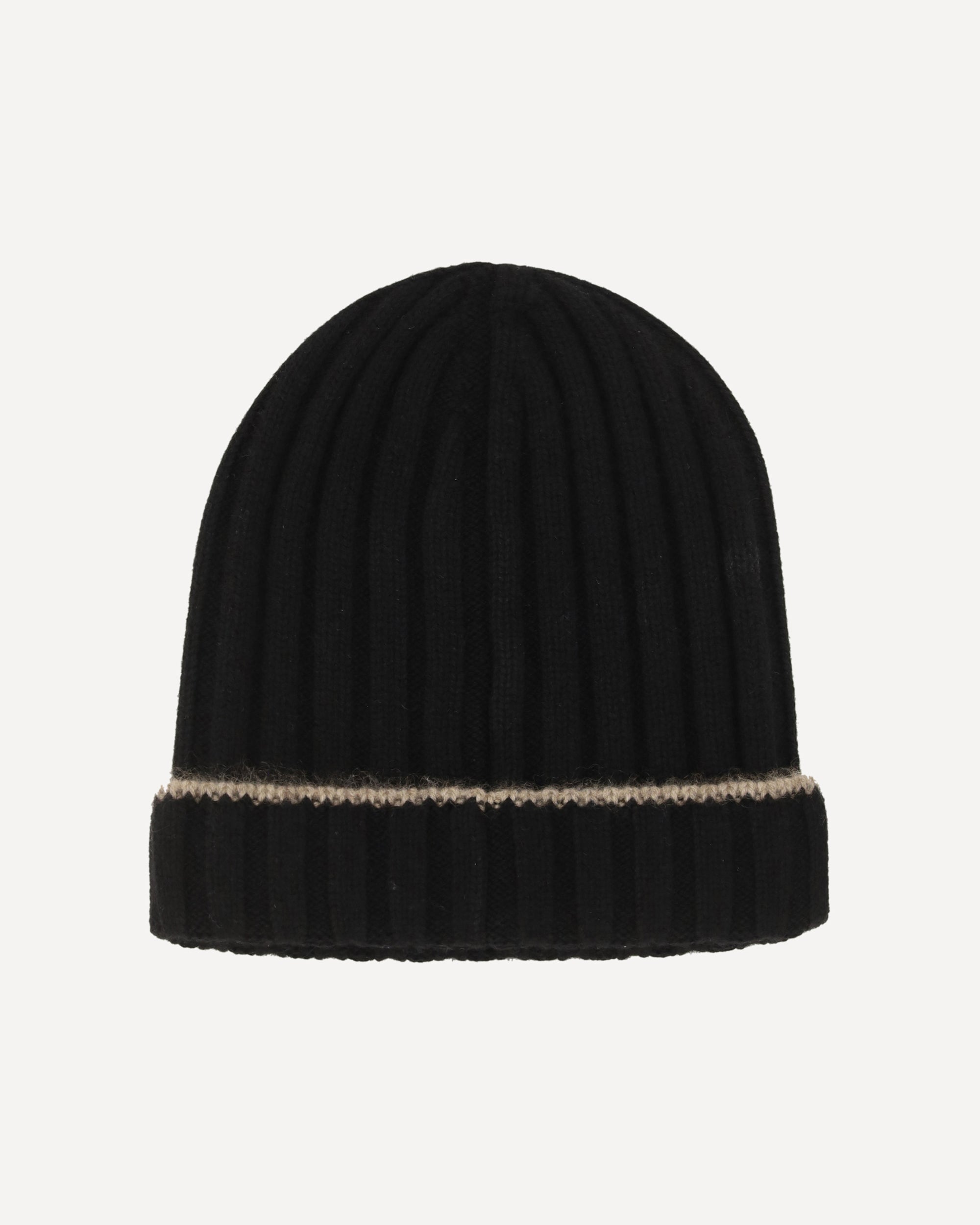 Cappello beanie di Brunello Cucinelli, realizzato in pregiato cashmere con lavorazione a costine. Il design monocromo è arricchito da profili a contrasto, dettaglio raffinato che esprime l’eleganza discreta del brand. Un accessorio essenziale e sofisticato, ideale per completare i look invernali con comfort e stile.