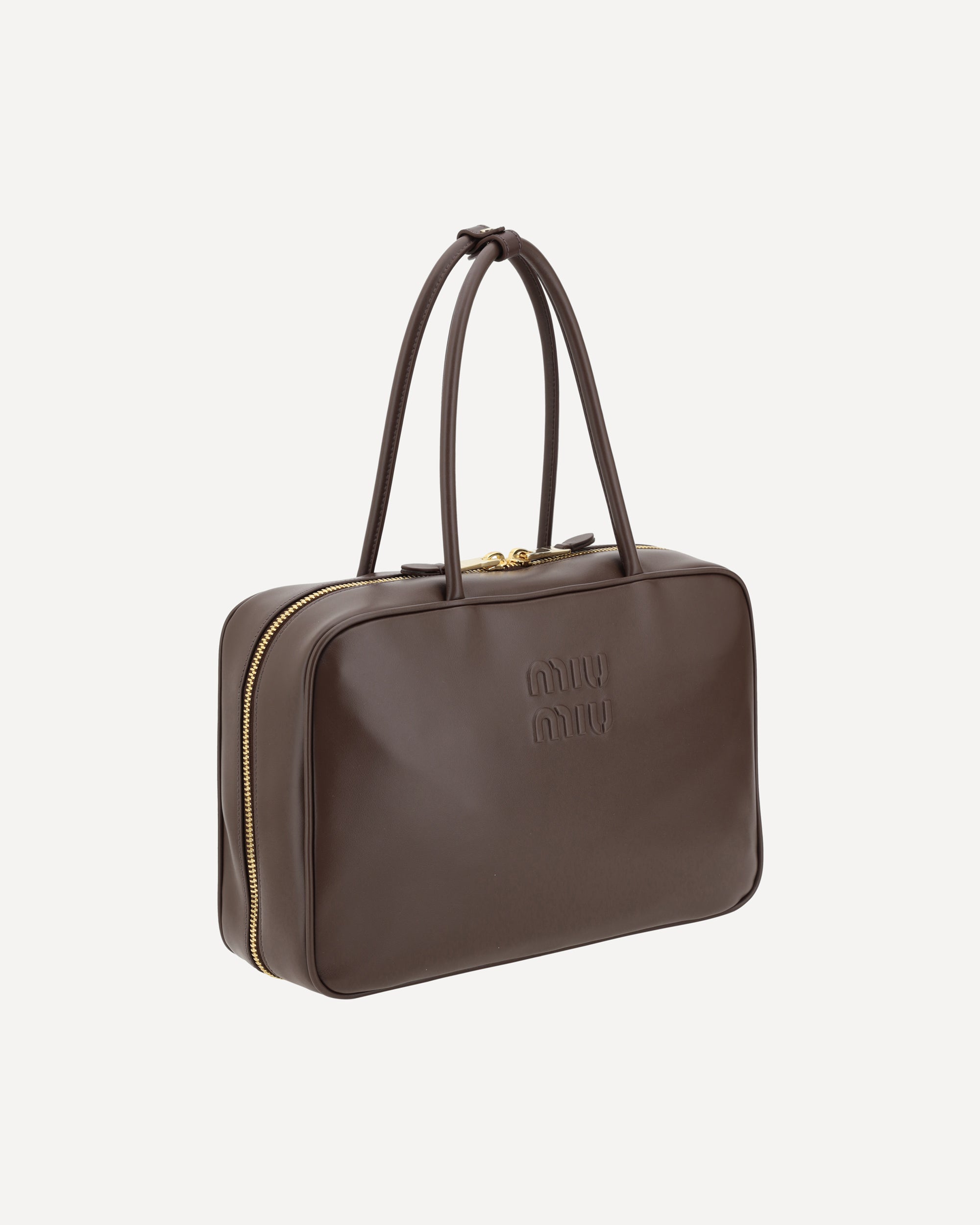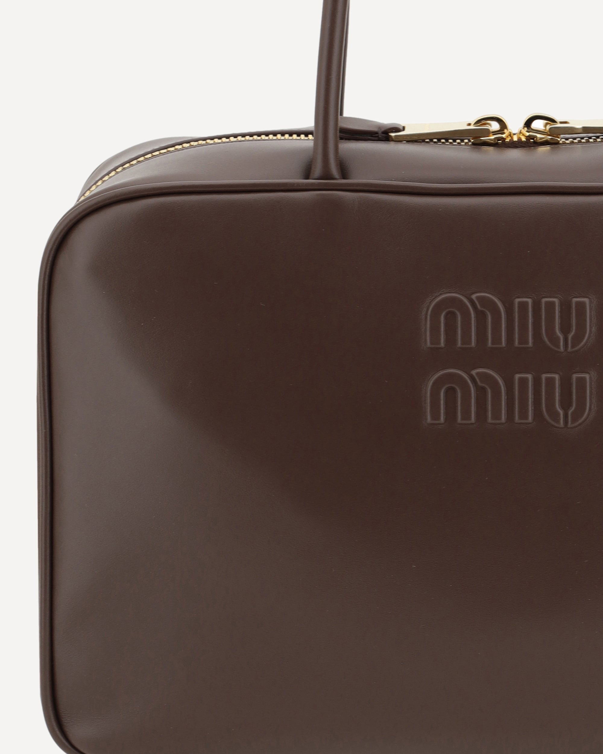 La Borsa a Mano Beau in Pelle di Miu Miu è un accessorio elegante e raffinato, perfetto per chi cerca un tocco di lusso quotidiano. Realizzata in pelle di alta qualità, presenta due manici tubolari in pelle che garantiscono una presa comoda e sicura. La chiusura superiore con cerniera a doppio cursore e il dettaglio a giro assicurano una chiusura sicura, mentre l'iconica firma del brand a pressione sul pannello frontale aggiunge un tocco distintivo di riconoscibilità. Il design rigido conferisce struttura alla borsa, che si presenta con unico scomparto interno, perfetto per organizzare gli oggetti essenziali in modo semplice e pratico.