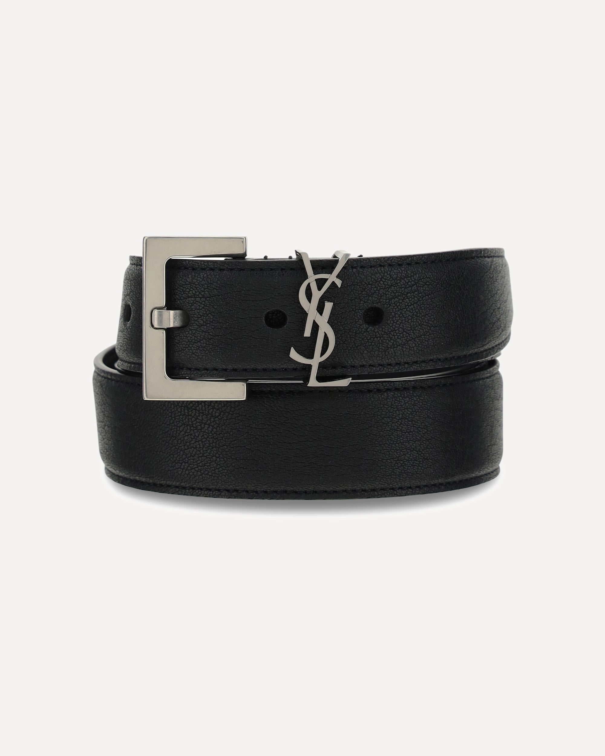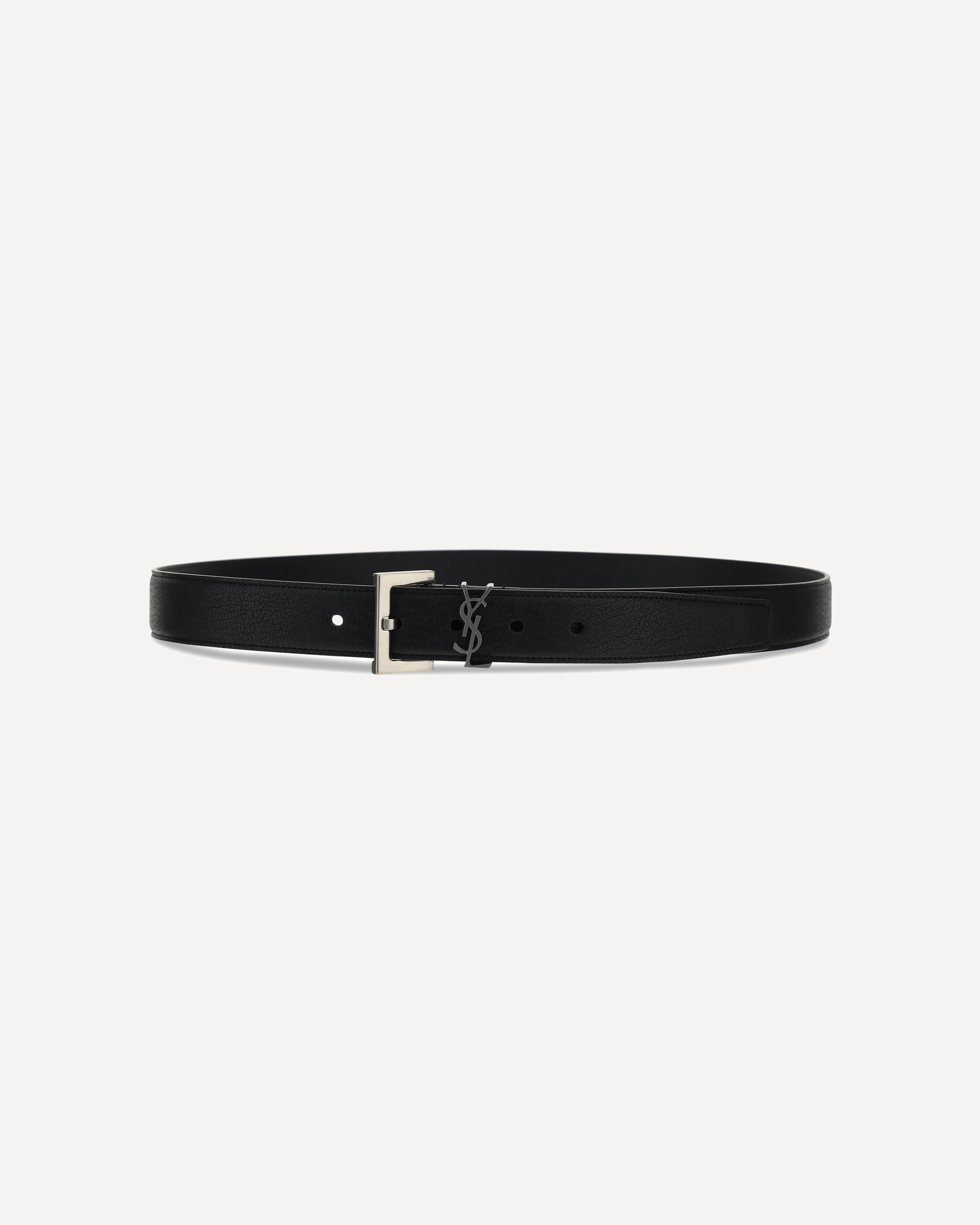 Cintura in Pelle di Saint Laurent, realizzata in nappa di agnello caratterizzata da fermacintura a iconico motivo Monogram in metallo, chiusura con fibbia ad incastro.