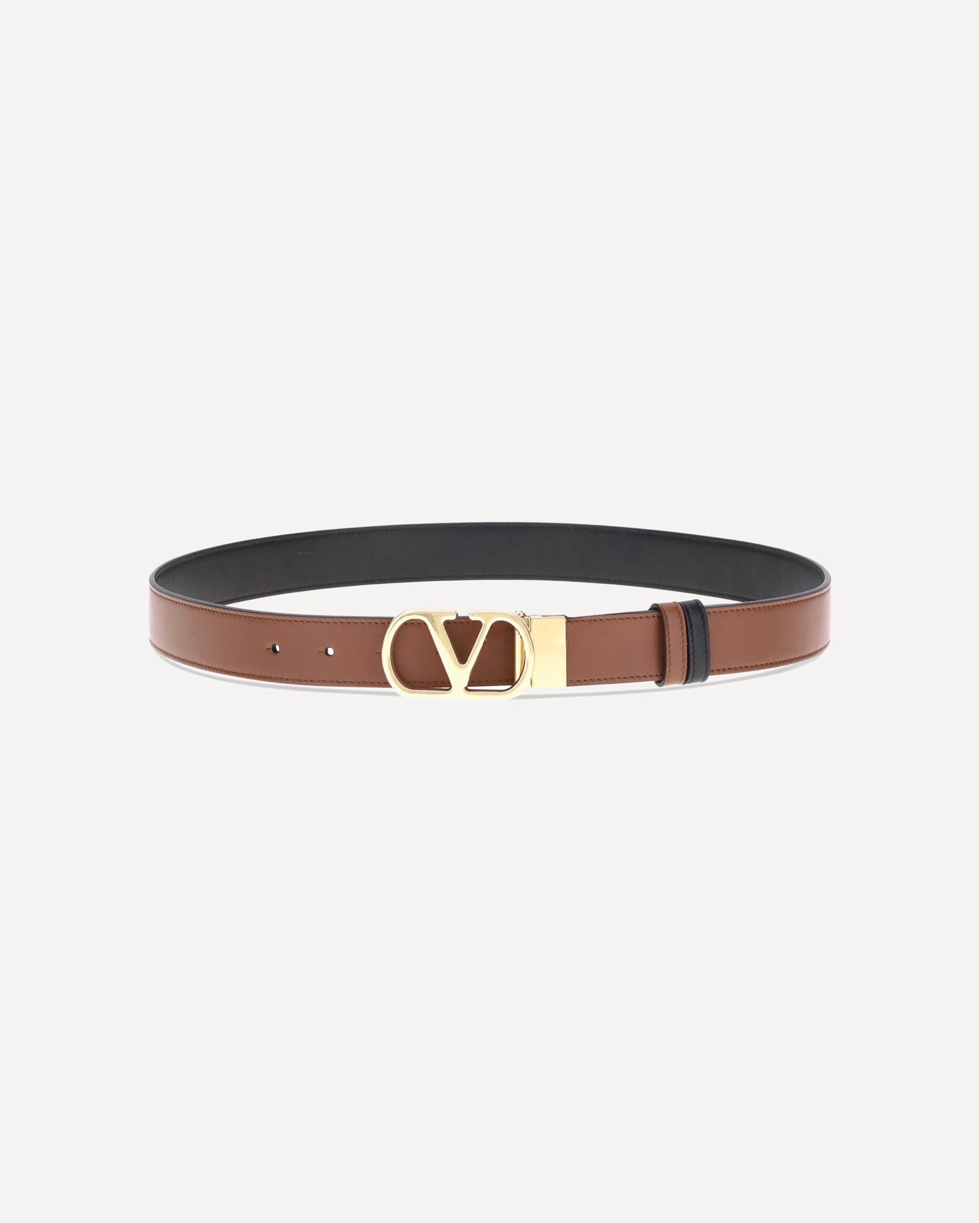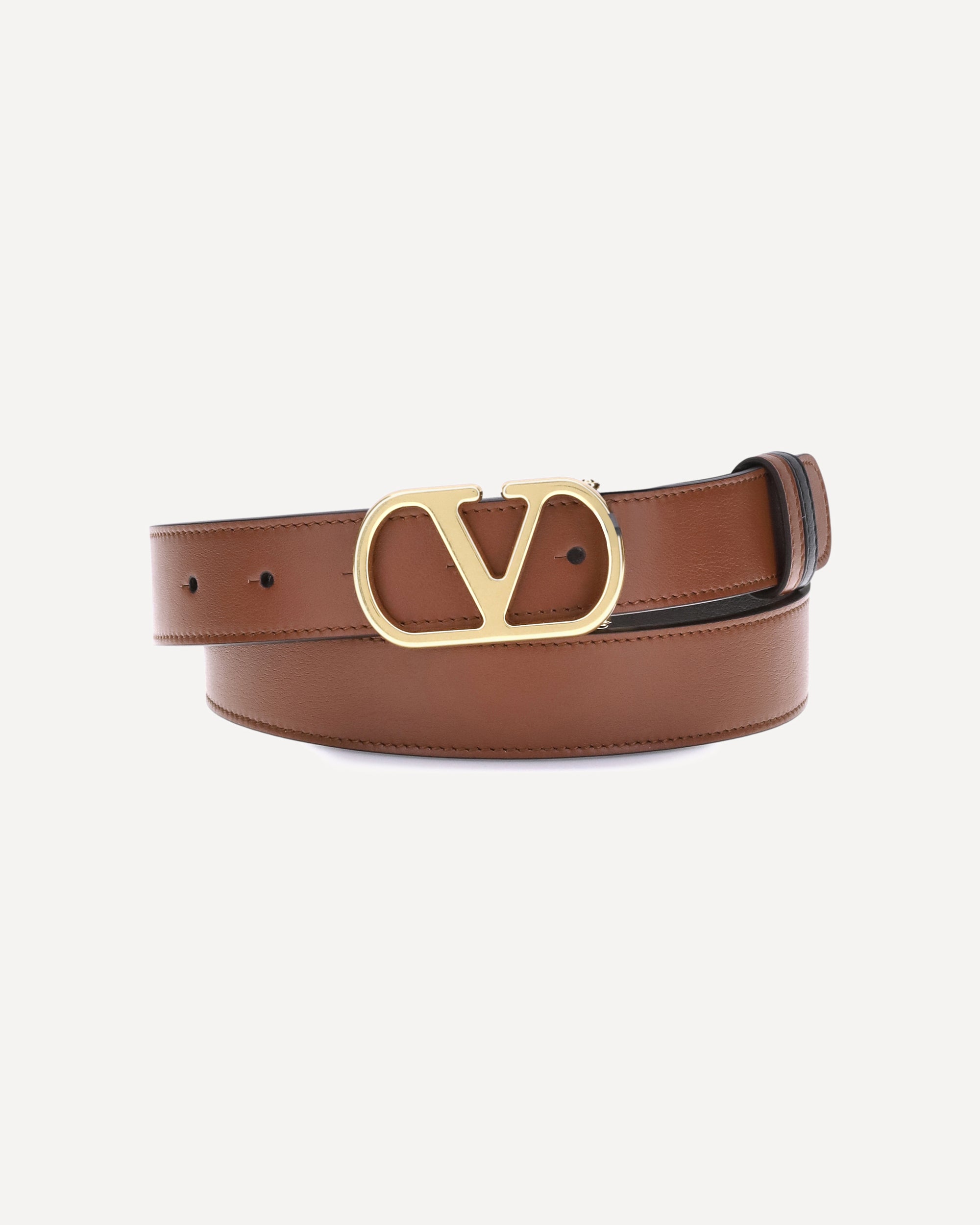 Cintura reversibile in pelle di Valentino Garavani, caratterizzata da un’elegante fantasia double face monocromatica per una versatilità raffinata. Completata dalla fibbia iconica VLogo in metallo dorato, aggiunge un tocco distintivo e sofisticato a qualsiasi look. Un accessorio intramontabile, perfetto per completare outfit formali e casual con stile.