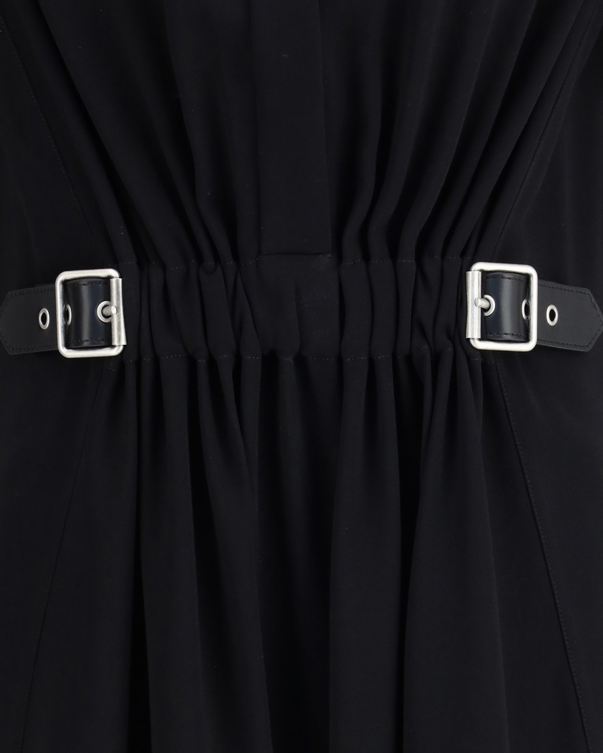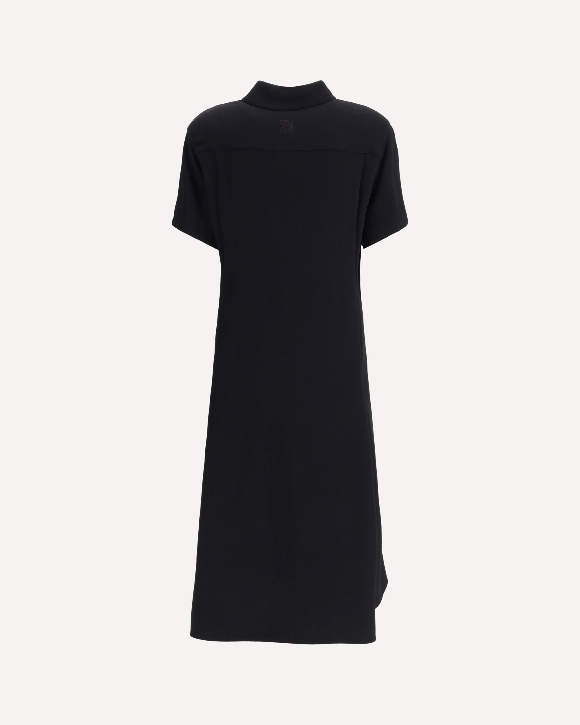 L'Abito con cintura di Loewe unisce eleganza e disinvoltura in una silhouette raffinata. Il modello presenta un arriccio sul davanti che dona movimento alla linea e una cintura in pelle che sottolinea delicatamente la vita. Il colletto classico e la chiusura frontale con bottoni nascosti conferiscono un’eleganza discreta, mentre le pieghe sovrapposte sul retro aggiungono un tocco di femminilità contemporanea. L’abito, dalla vestibilità regolare e lunghezza al ginocchio, è impreziosito dal ricamo Anagram applicato sul retro, dettaglio iconico che riflette l’artigianalità e lo stile distintivo di Loewe.