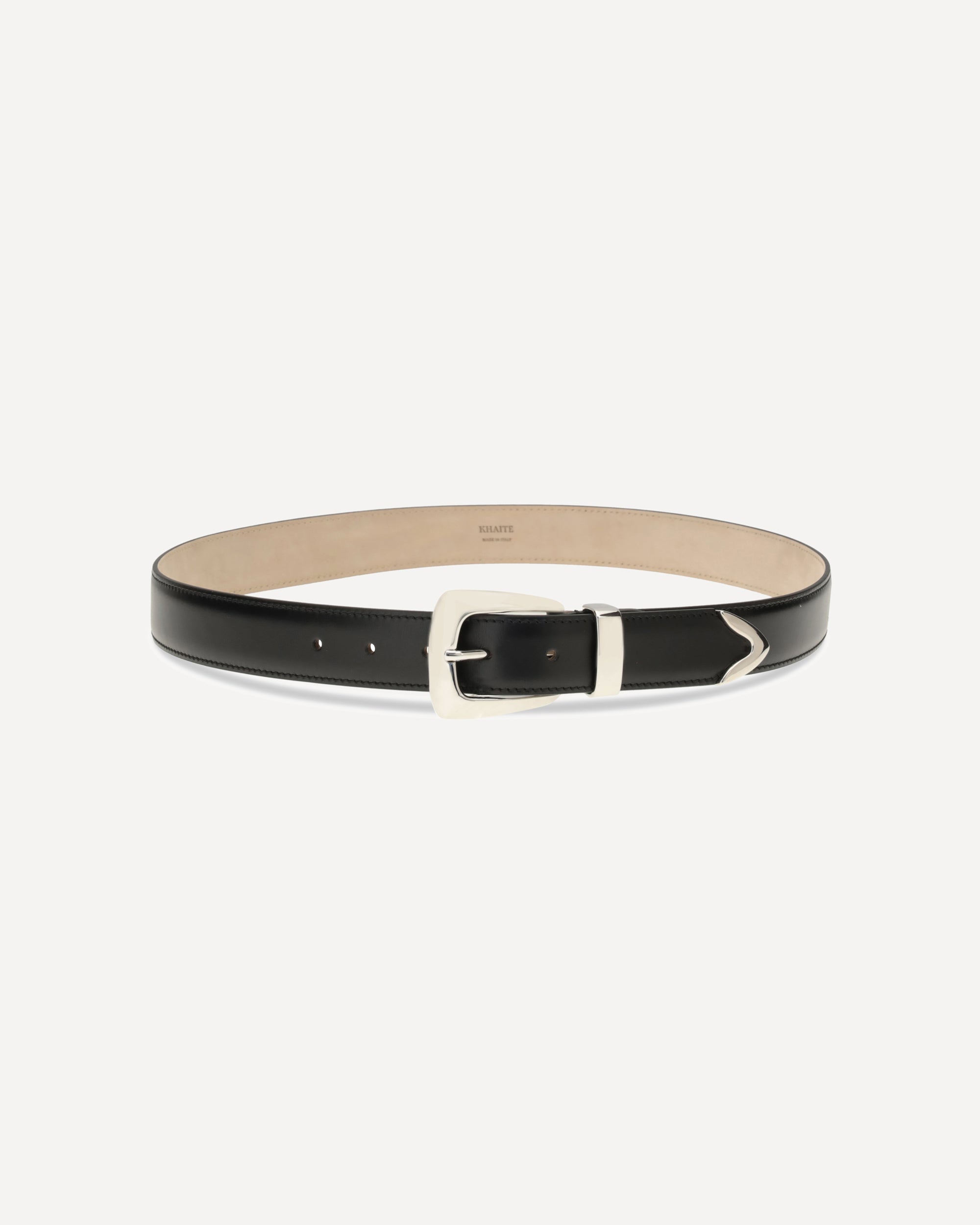 La Cintura Benny di Khaite è realizzata in morbida pelle scamosciata e rifinita con una fibbia ad ardiglione e dettagli color palladio, che ne esaltano il design essenziale. Perfetta per aggiungere un tocco raffinato e versatile a qualsiasi look.