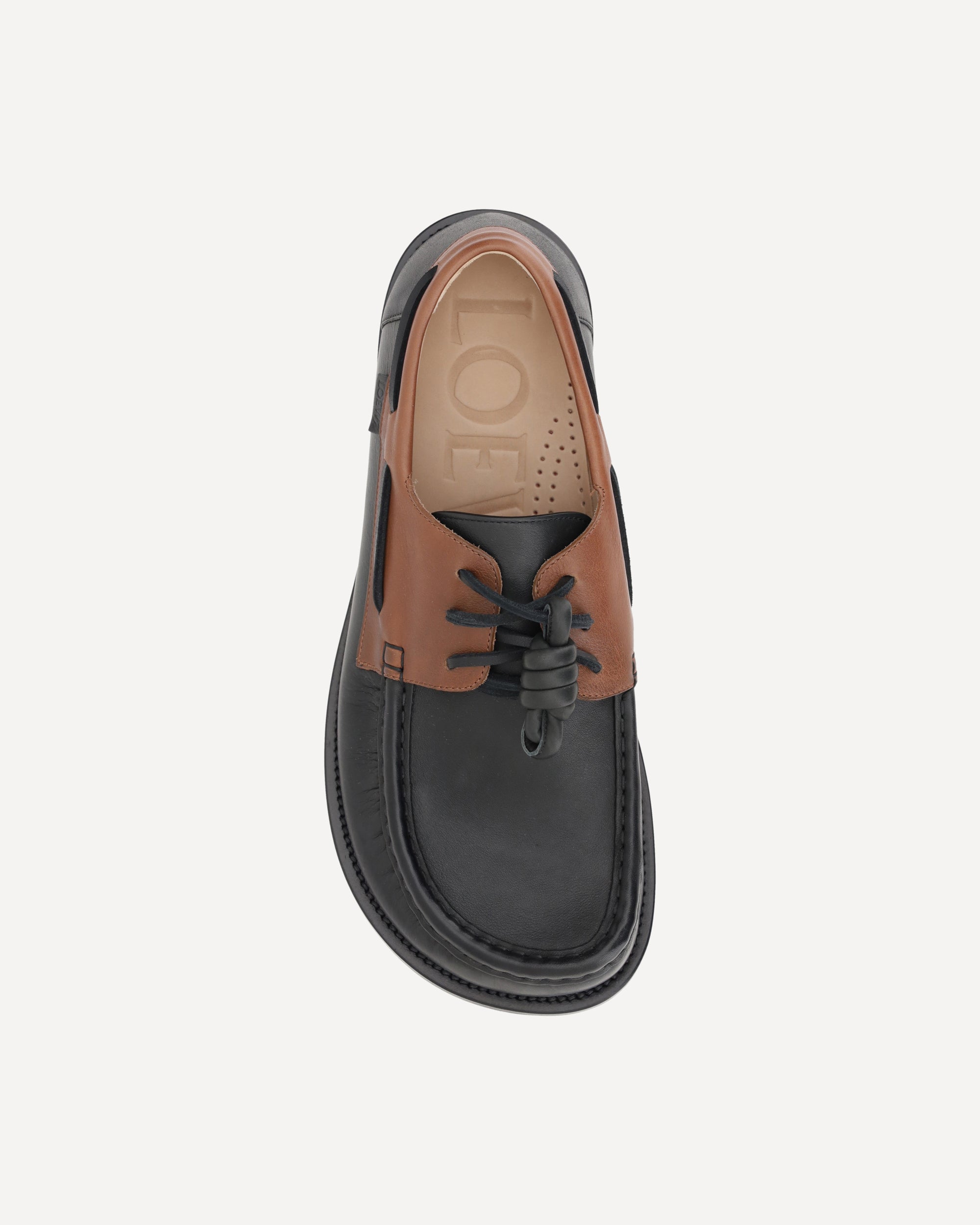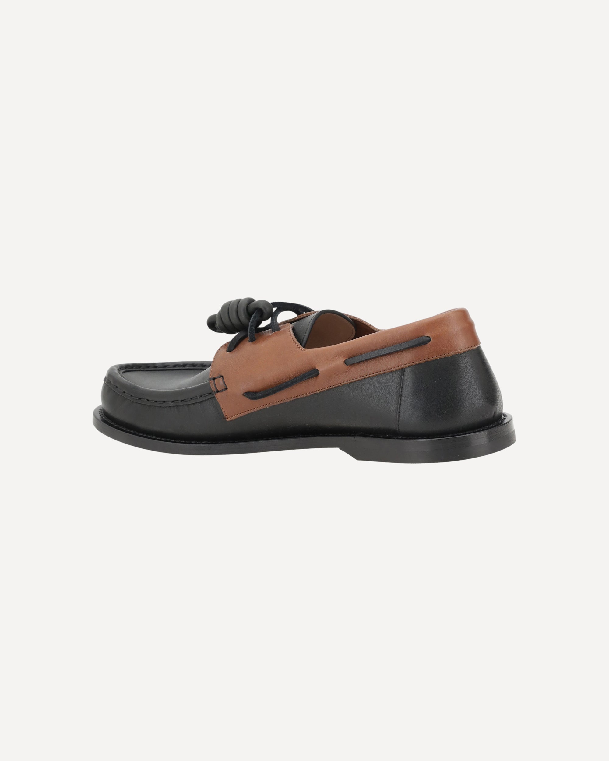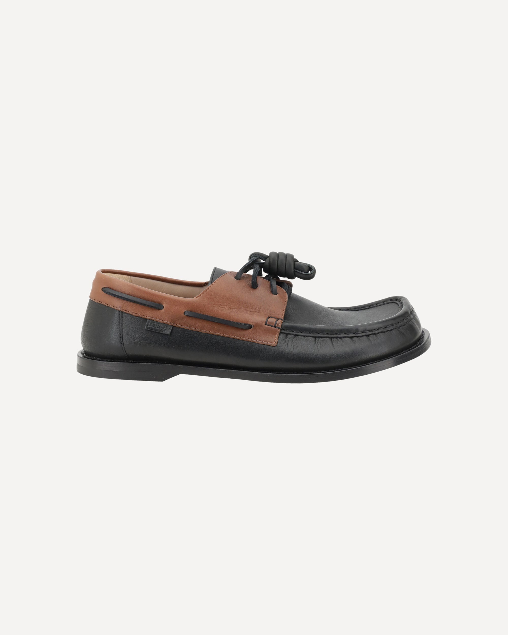 Le Scarpe Stringate in pelle di Loewe presentano una punta tonda che offre un look elegante e raffinato. La fantasia bicolore aggiunge un tocco di originalità e modernità al design. La chiusura sul fronte avviene tramite lacci, garantendo una calzata sicura e regolabile. Il lieve tacco a blocco in cuoio conferisce un tocco di altezza e comfort, mentre la soletta logata sottolinea la qualità e l'artigianalità del brand. Un paio di stringate che uniscono tradizione e stile contemporaneo in un design sofisticato.