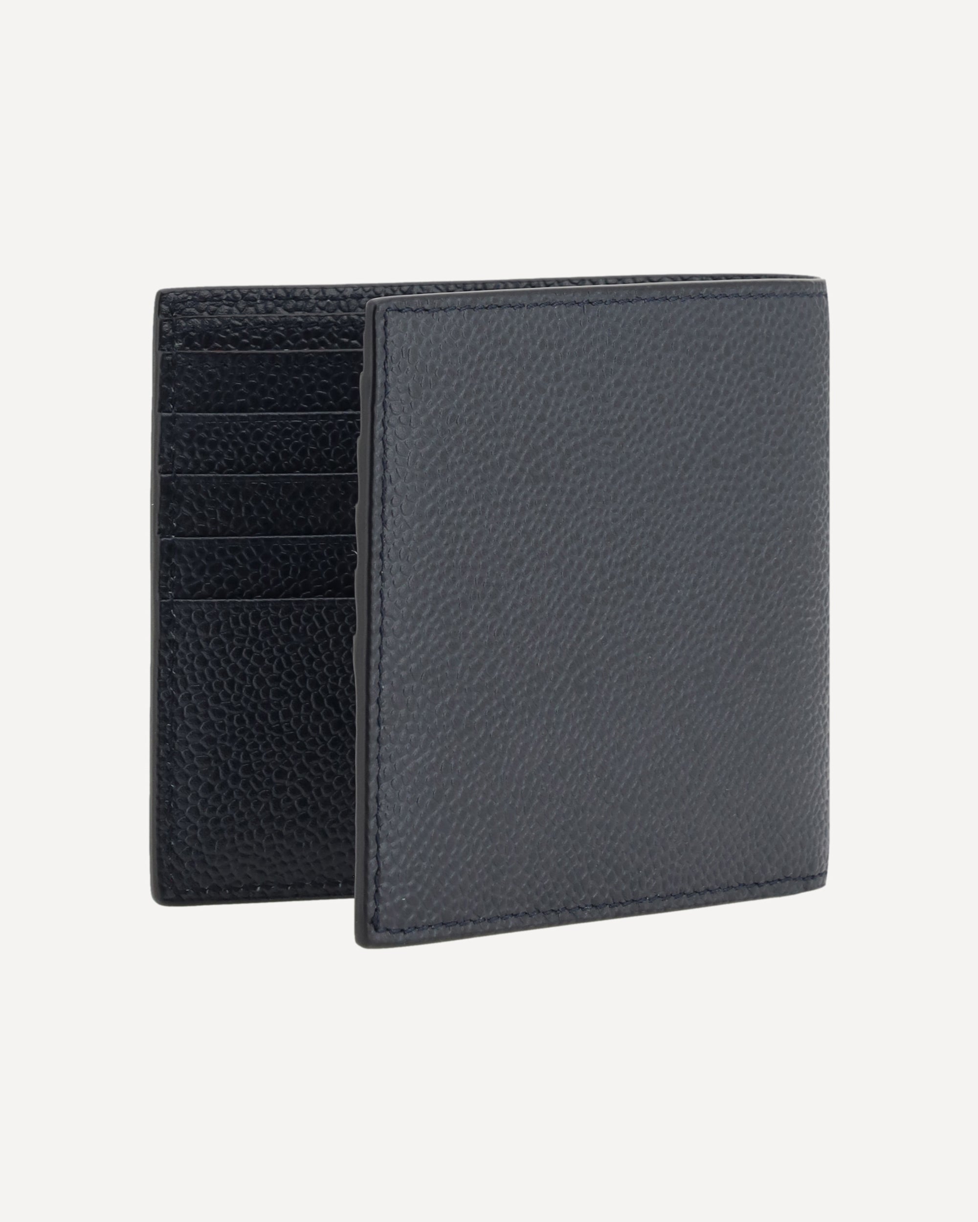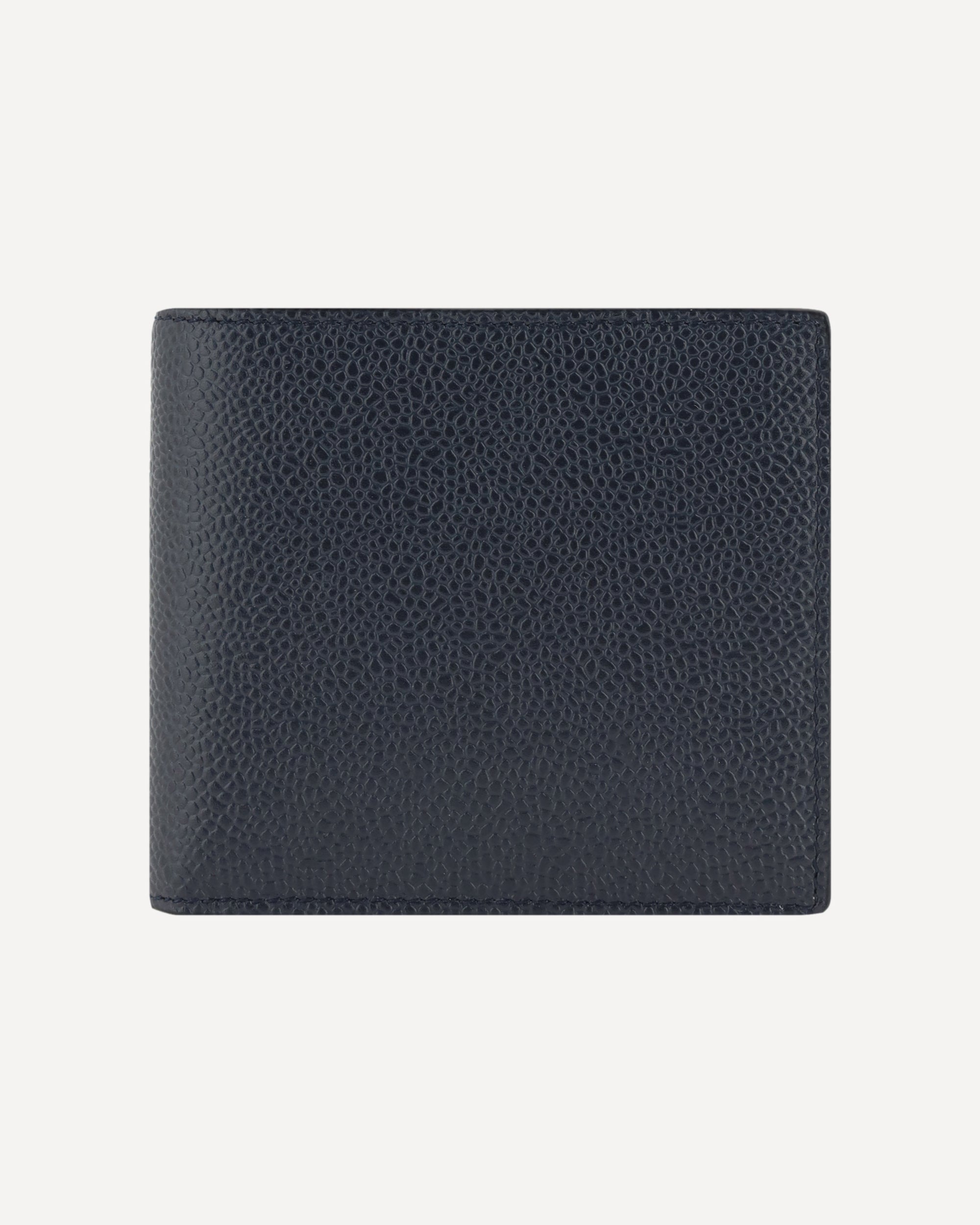 Il portafogli in pelle martellata di Thom Browne presenta un elegante design bifold con due scomparti per banconote e slot per carte con una linguetta iconica. Include anche due tasche a fessura per maggiore praticità. L'interno è foderato con i colori distintivi del brand, mentre il logo in oro all'interno aggiunge un tocco di lusso discreto. Un accessorio raffinato e funzionale, perfetto per chi cerca stile e qualità.