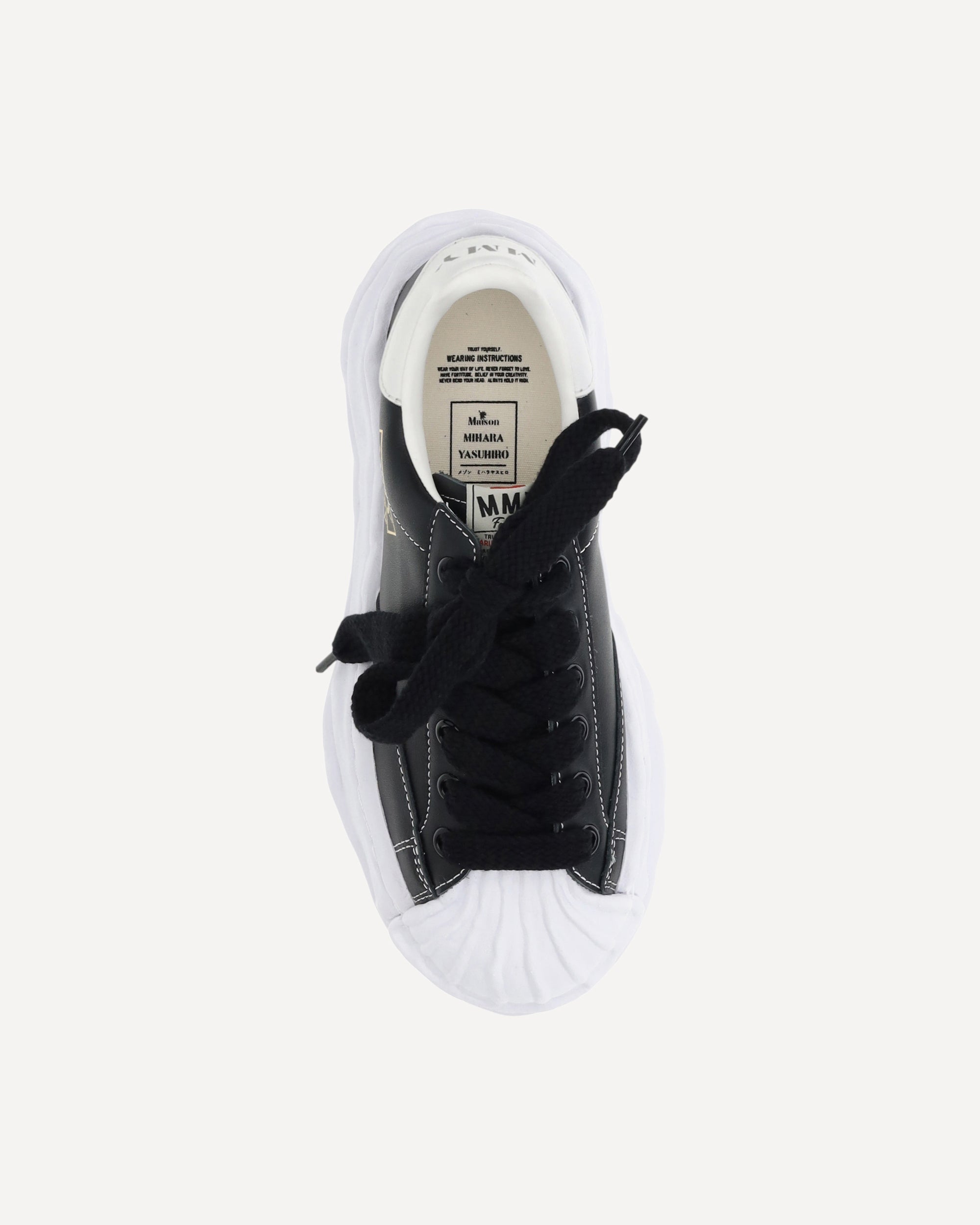Le Sneakers Blakey OG di Maison Mihara Yasuhiro presentano una tomaia in pelle, arricchita da cuciture a contrasto che esaltano il design minimalista. La punta rinforzata e la chiusura con lacci, insieme alla linguetta con patch logo, aggiungono dettagli distintivi. La suola bianca in gomma completa l'estetica elegante e versatile, rendendo queste sneakers una scelta perfetta per chi cerca un look casual ma sofisticato.