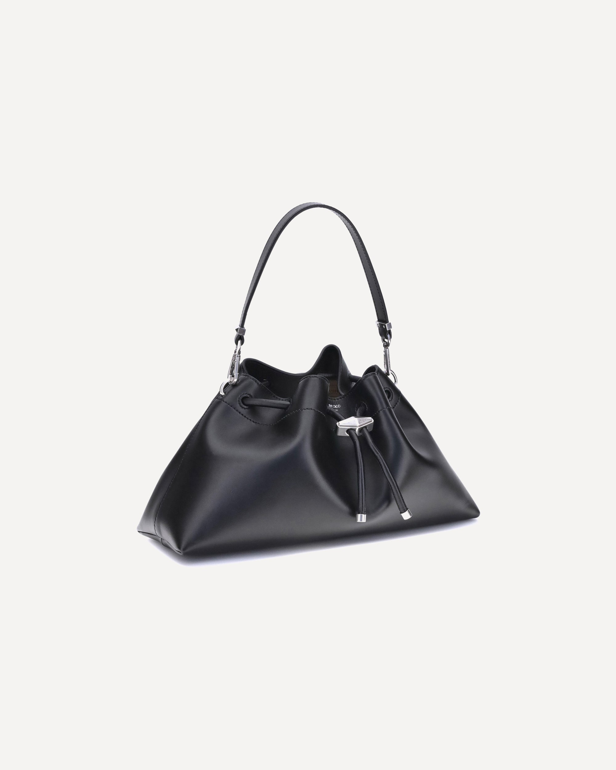 La Borsa a Spalla Cinch di Jimmy Choo è un’evoluzione dell’iconico modello Bon Bon – ispirata ai contrasti e definita da una silhouette morbida, stretta da una chiusura a coulisse con dettaglio sfaccettato Diamond. Realizzata in pelle di vitello lucida, presenta finiture in metallo argentato, interno foderato in pelle con una tasca chiusa da zip, e una tracolla regolabile e removibile per una portabilità versatile.
