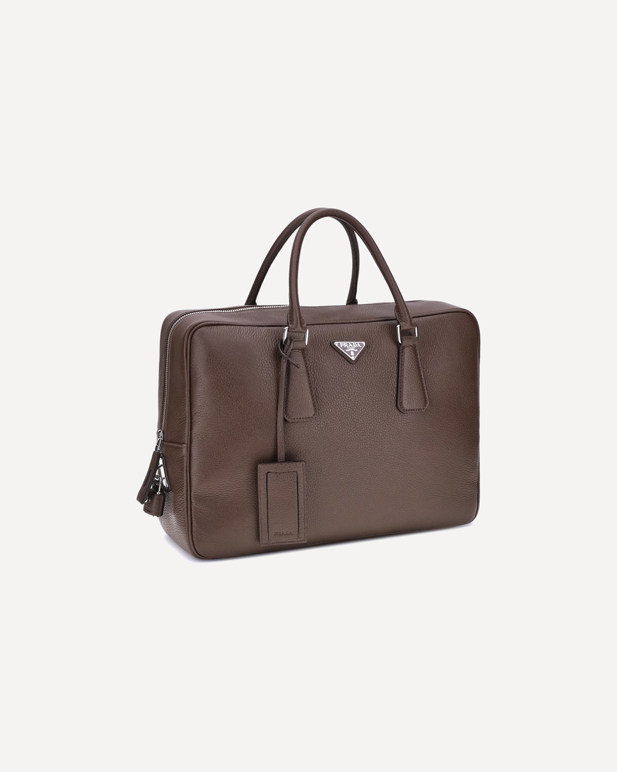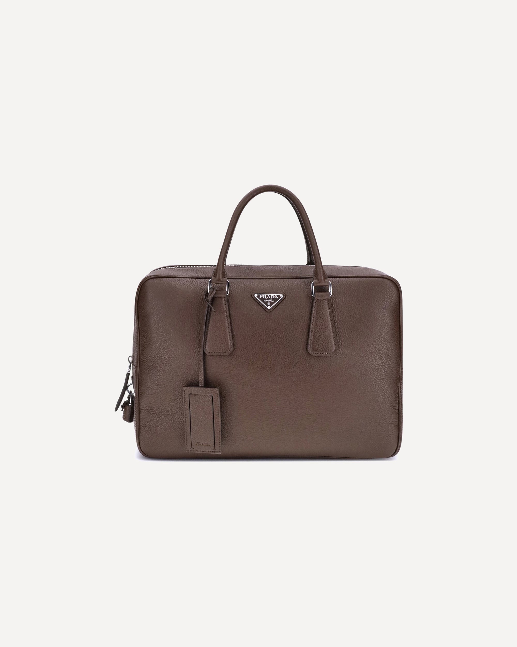 La Borsa a Mano da uomo di Prada è un accessorio elegante e funzionale, pensato per accompagnare con stile la vita quotidiana. Dotata di due manici tondi e chiusura superiore con zip, presenta l’iconica placca triangolare applicata sul fronte e un portanome in pelle rimovibile. Perfetta per chi cerca una borsa a mano maschile firmata Prada, dal design essenziale ma riconoscibile.