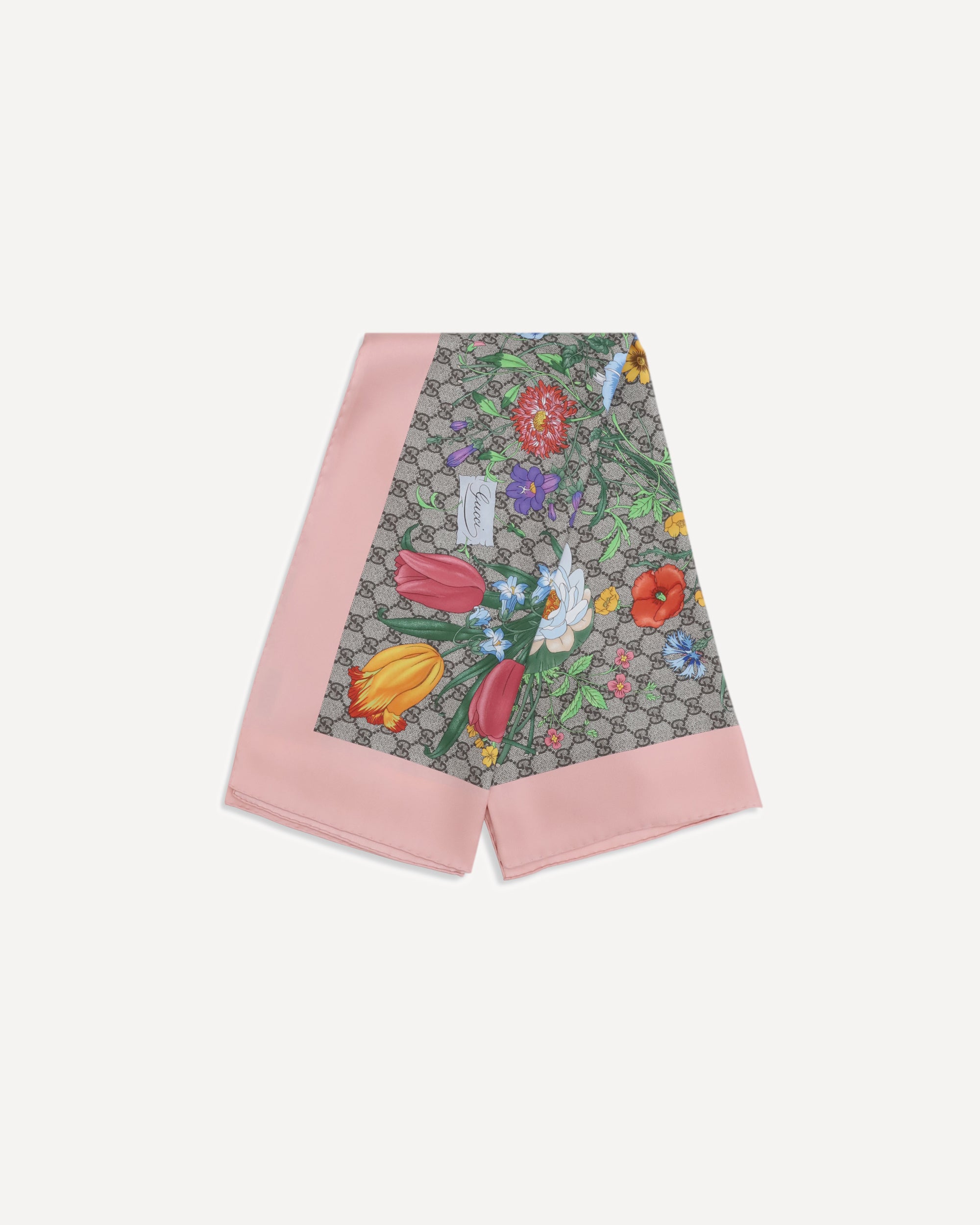 GUCCIFoulard in twill di seta biologica con stampa Flora