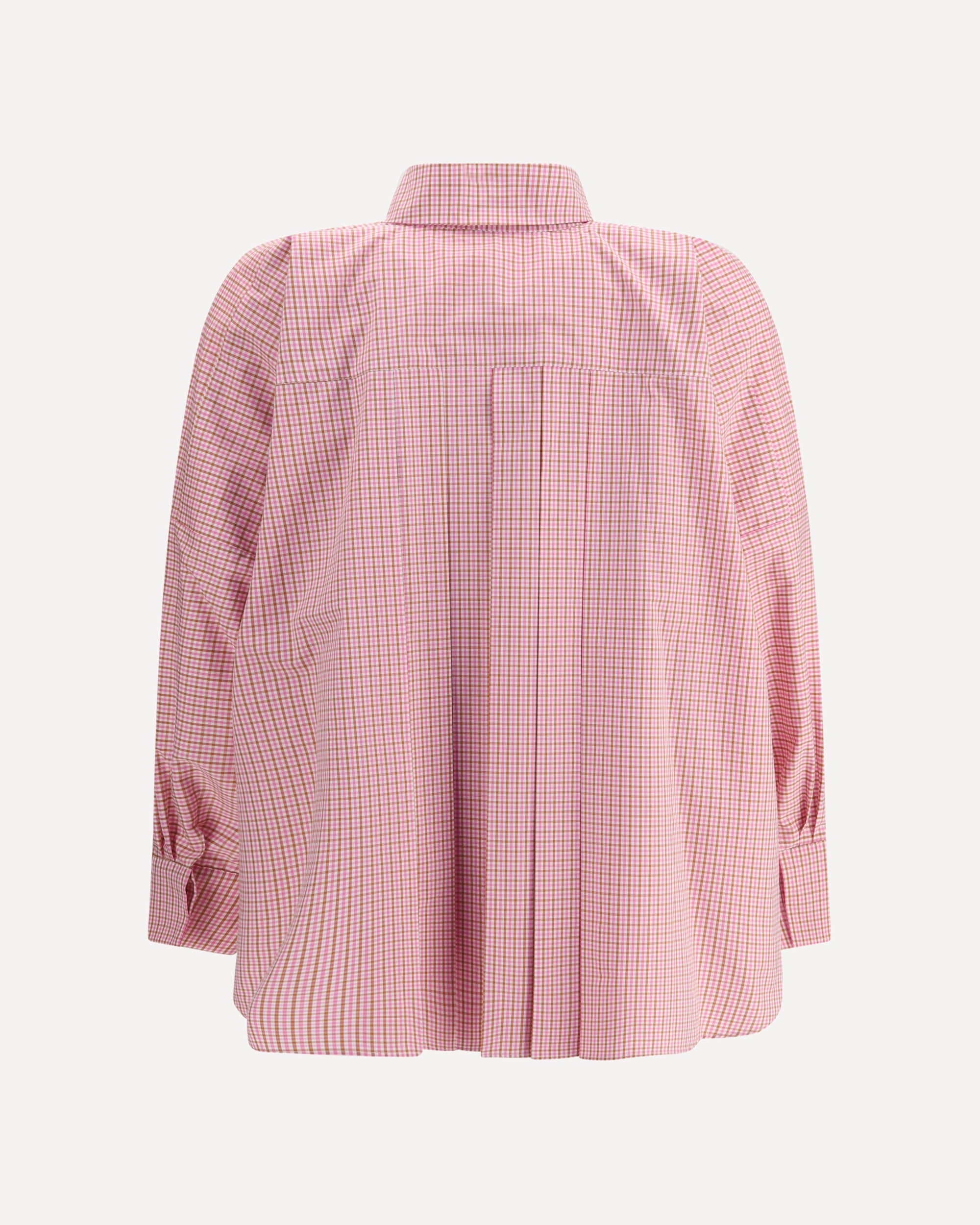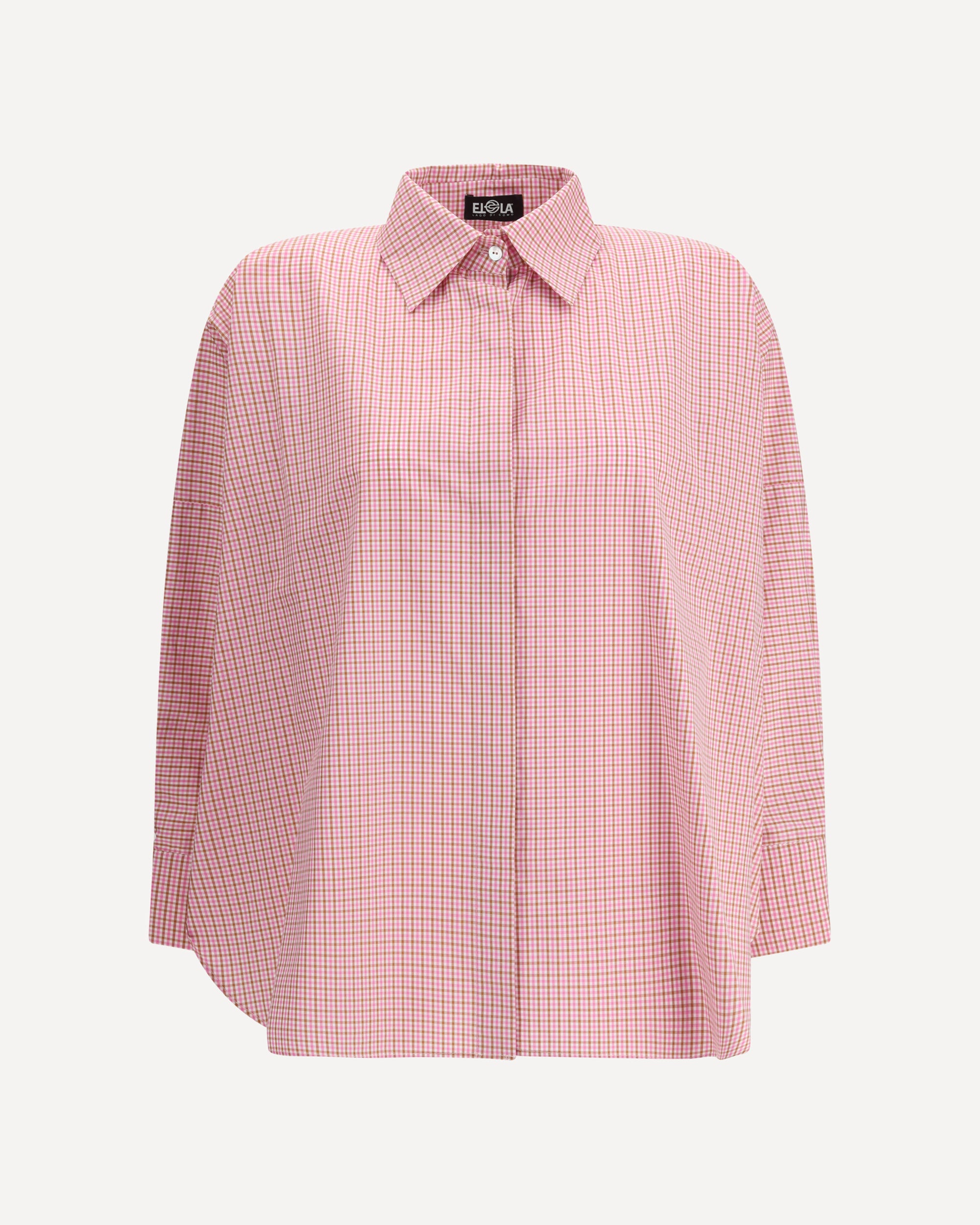 La Camicia kimono a quadretti di Ella unisce un tocco tradizionale a dettagli moderni. Dotata di colletto classico e chiusura frontale con bottoni nascosti, si distingue per la linea morbida e le pieghe sul retro che ne valorizzano la vestibilità, rendendola un capo versatile e raffinato.