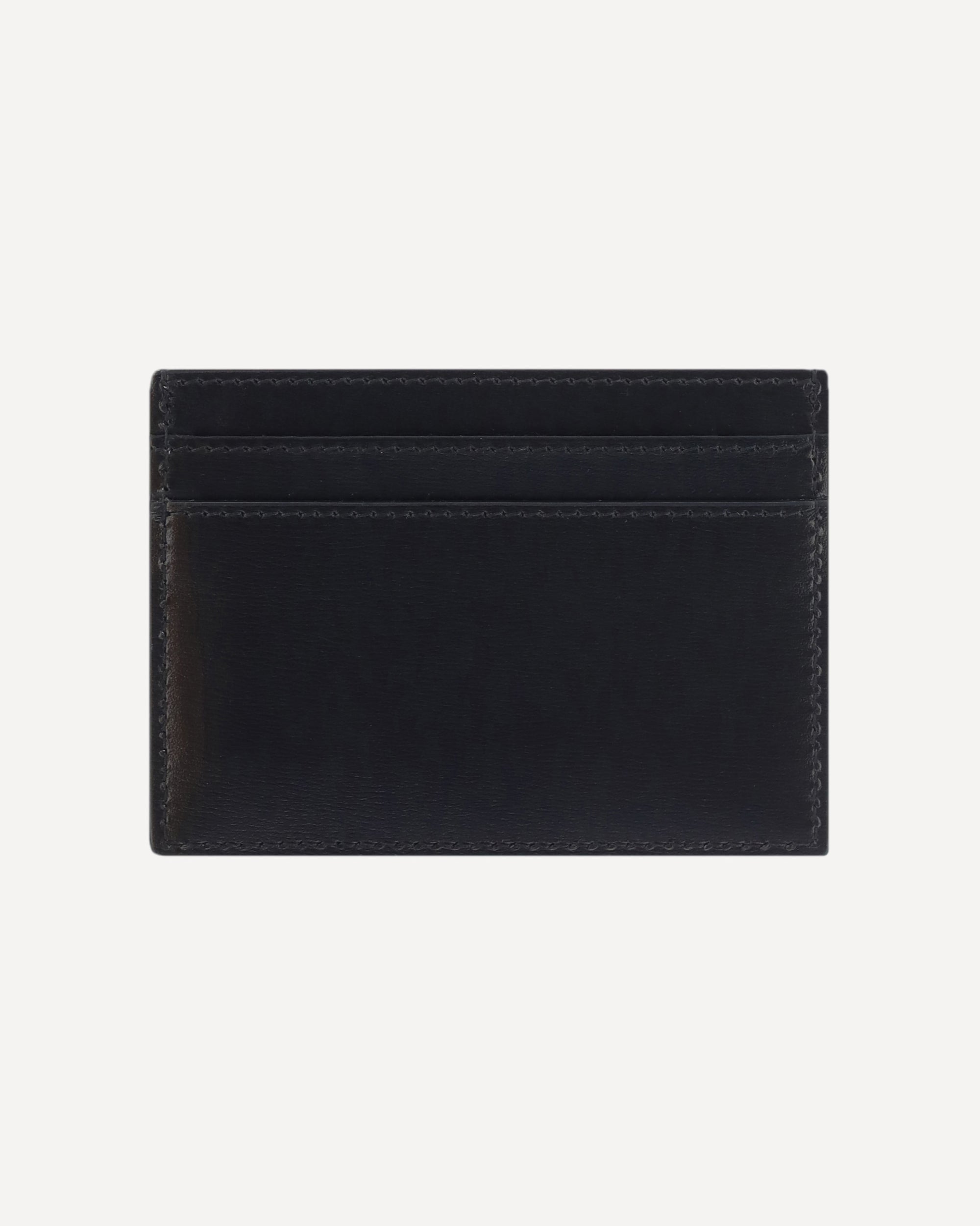 Porta Carte in Pelle di Saint Laurent, slot per carte su entrambi i lati, logo goffrato in ottone sul fronte.