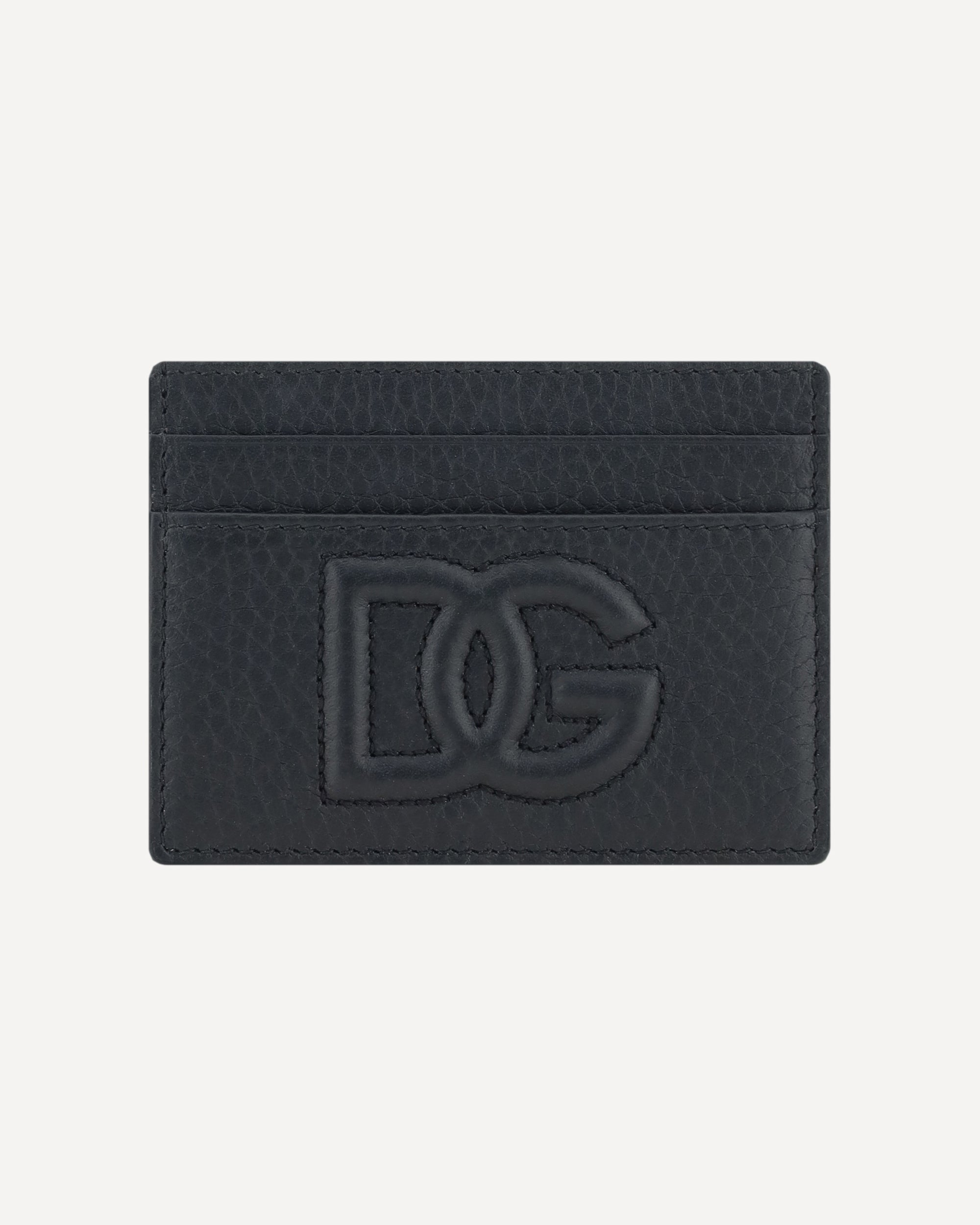 Portacarte in Pelle di Dolce&Gabbana, design in pelle martellata, slot portacarte su fronte e retro, iconico logo brand in rilievo sul fronte.