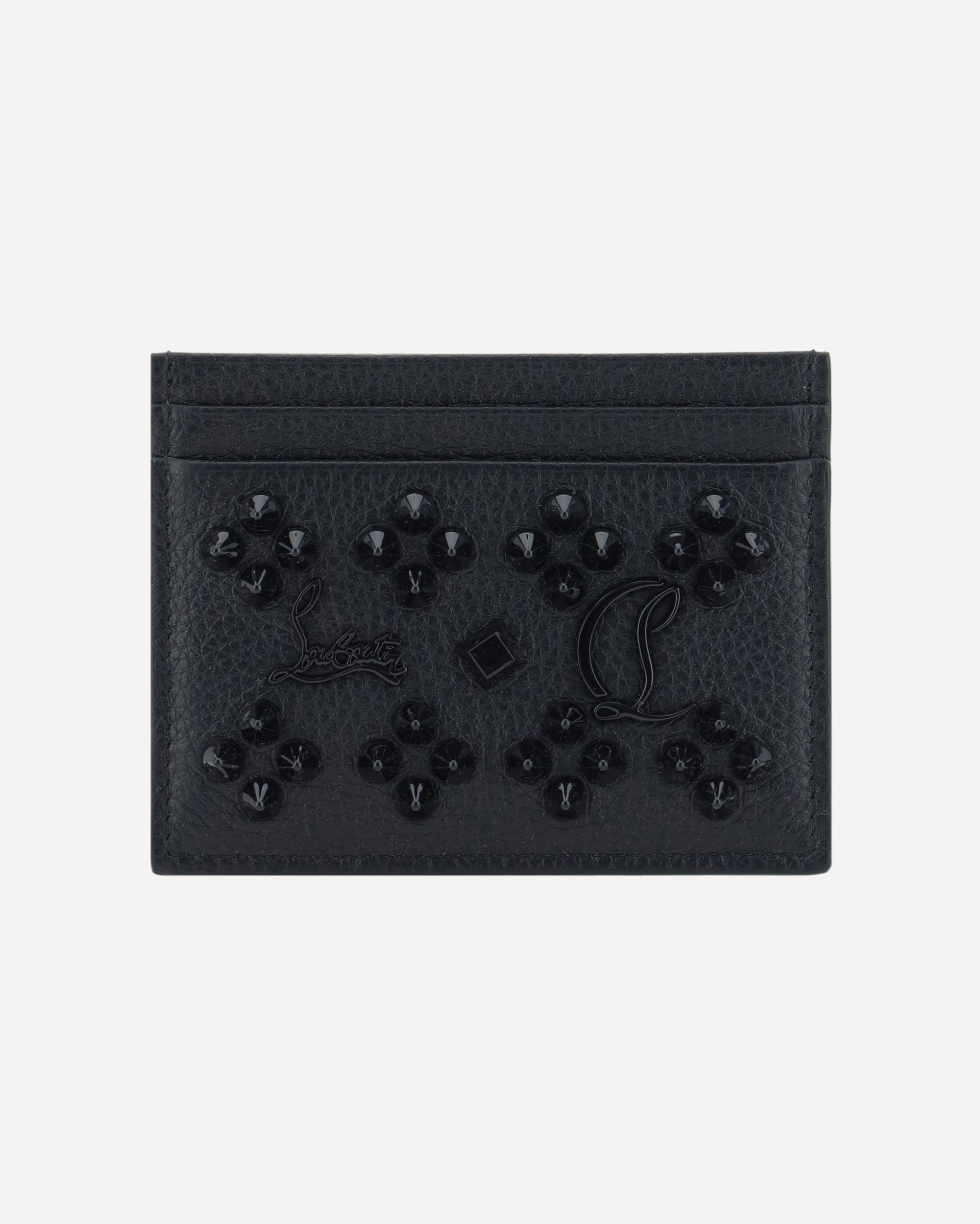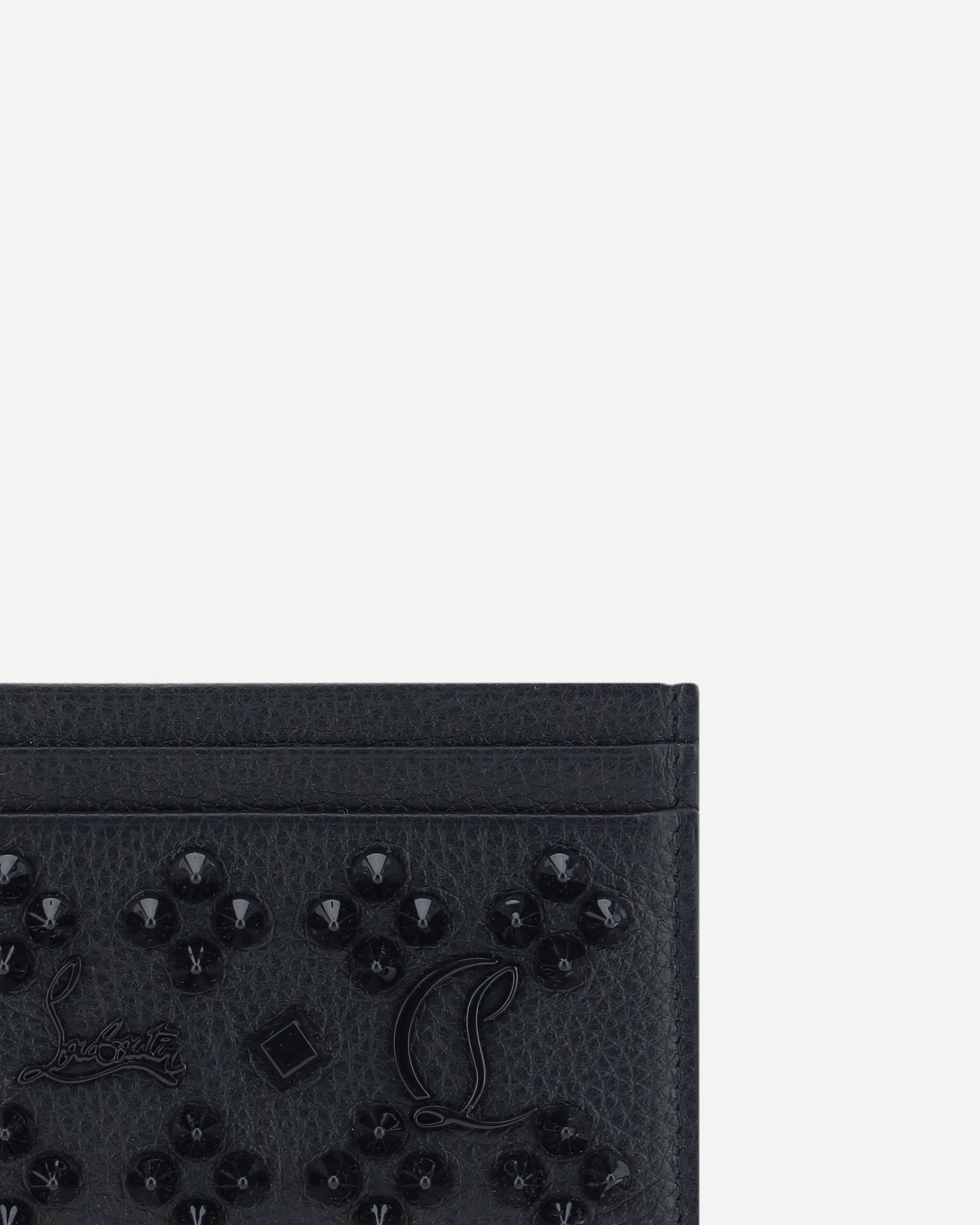 Portacarte in Pelle di Christian Louboutin, iconiche borchie appuntite del brand applicate in rilievo sul fronte, slot portacarte su fronte e retro, design in pelle martellata.