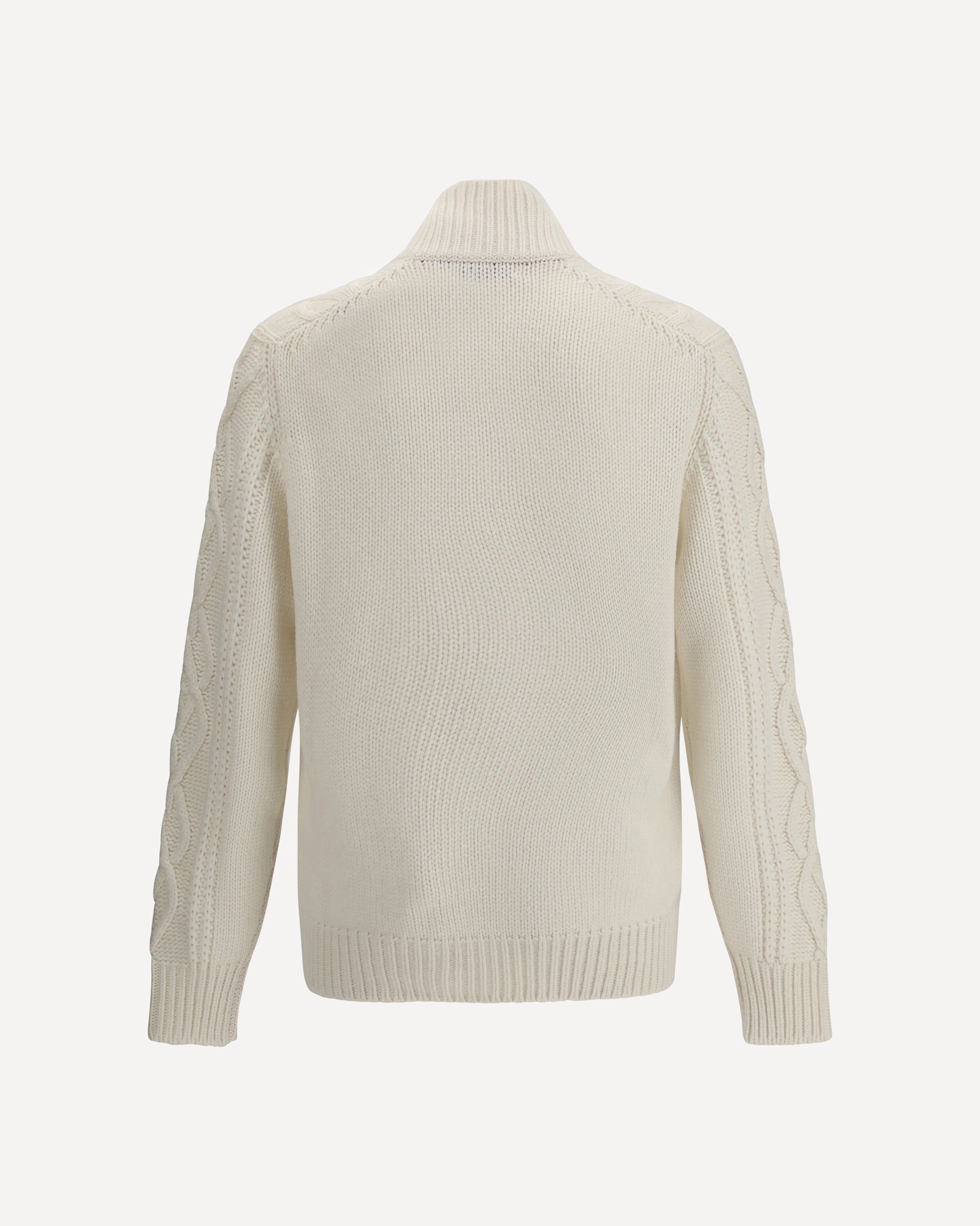 Il Cardigan In Cashmere a Treccia di Brunello Cucinelli unisce la preziosità delle materie prime a un’eleganza dal gusto rétro. La particolare struttura delle fibre naturali dona volume e morbidezza, esaltando la classica lavorazione a treccia che attraversa il capo. I bottoni in metallo completano il design con un tocco sofisticato, mentre la vestibilità regolare e confortevole assicura armonia.