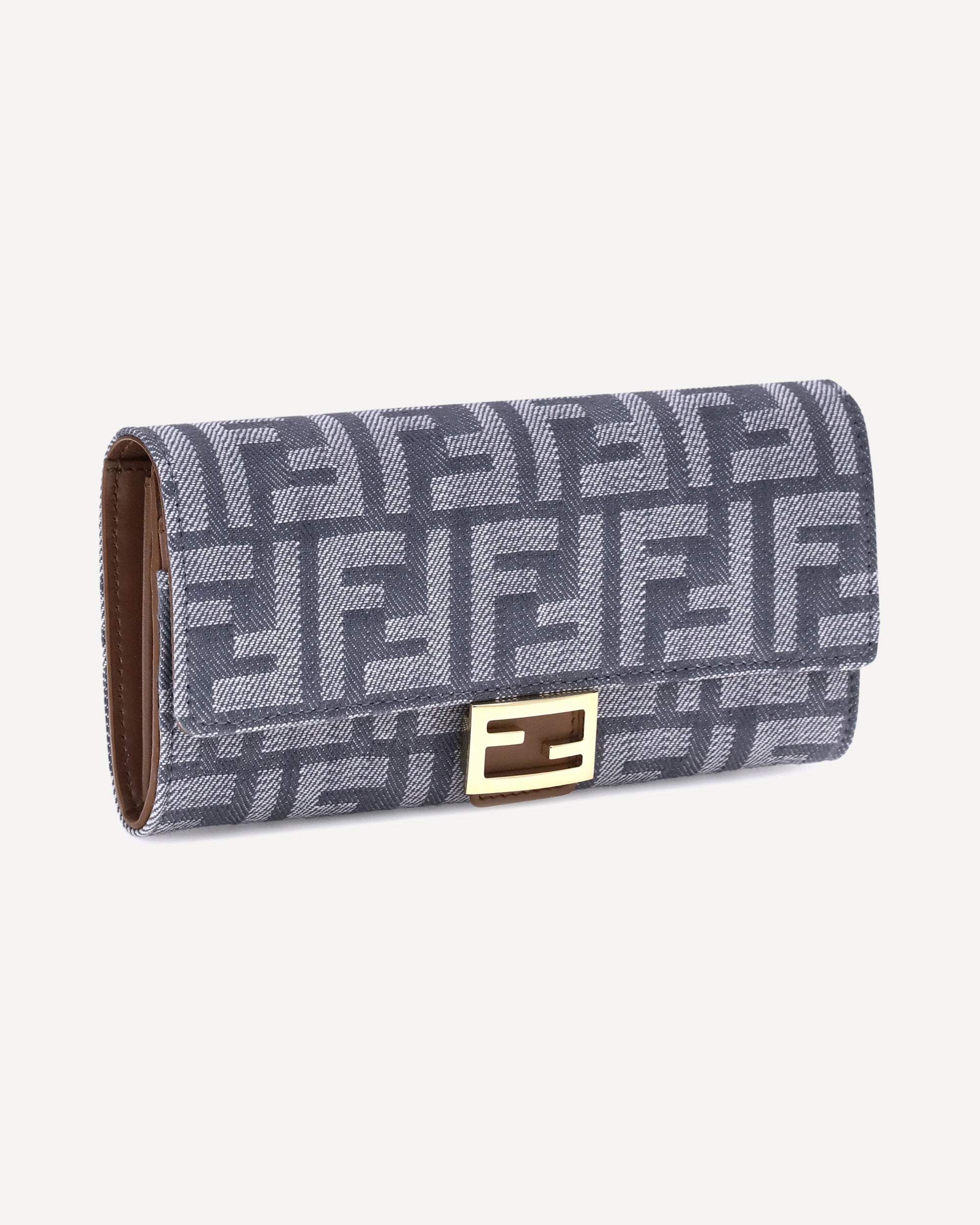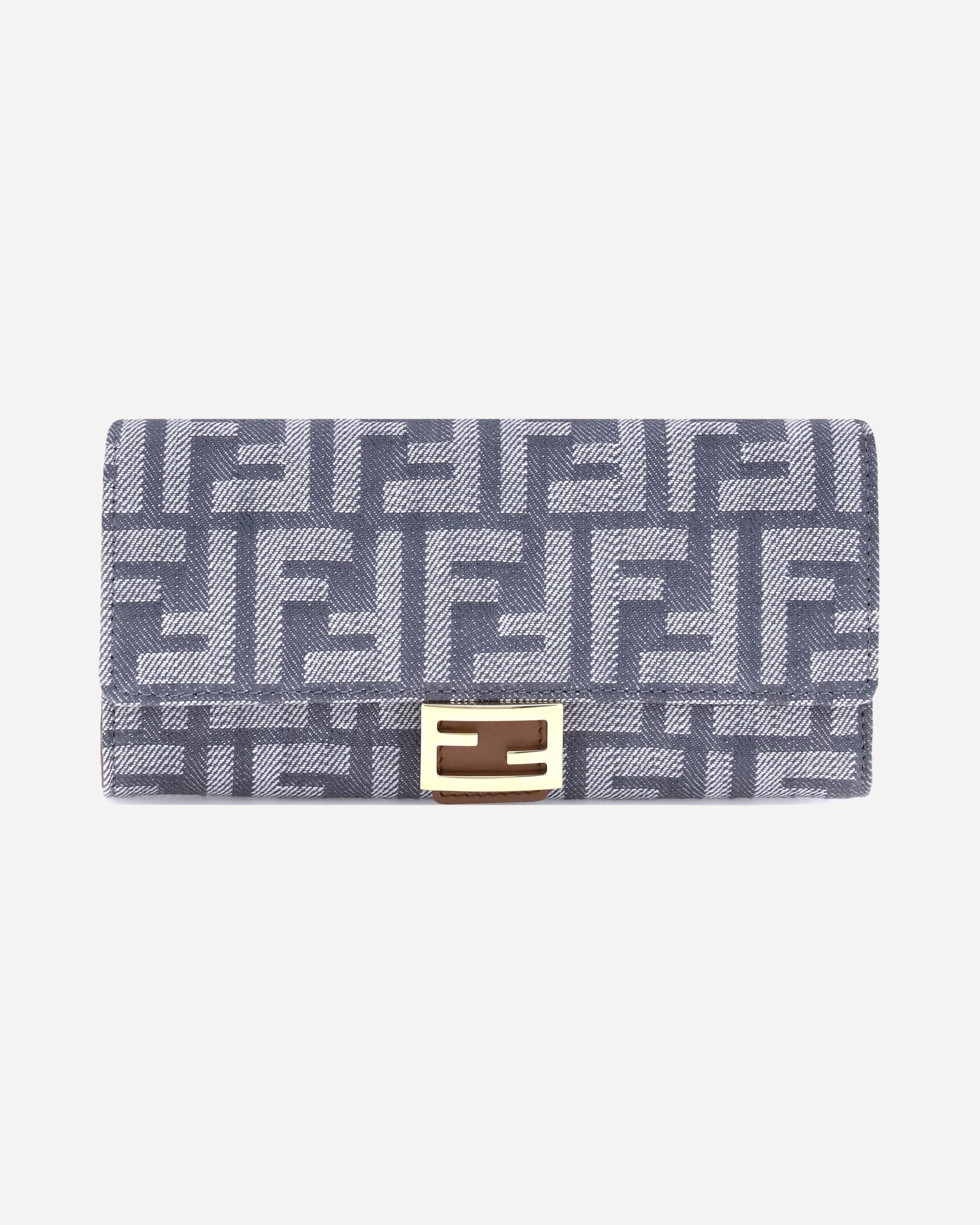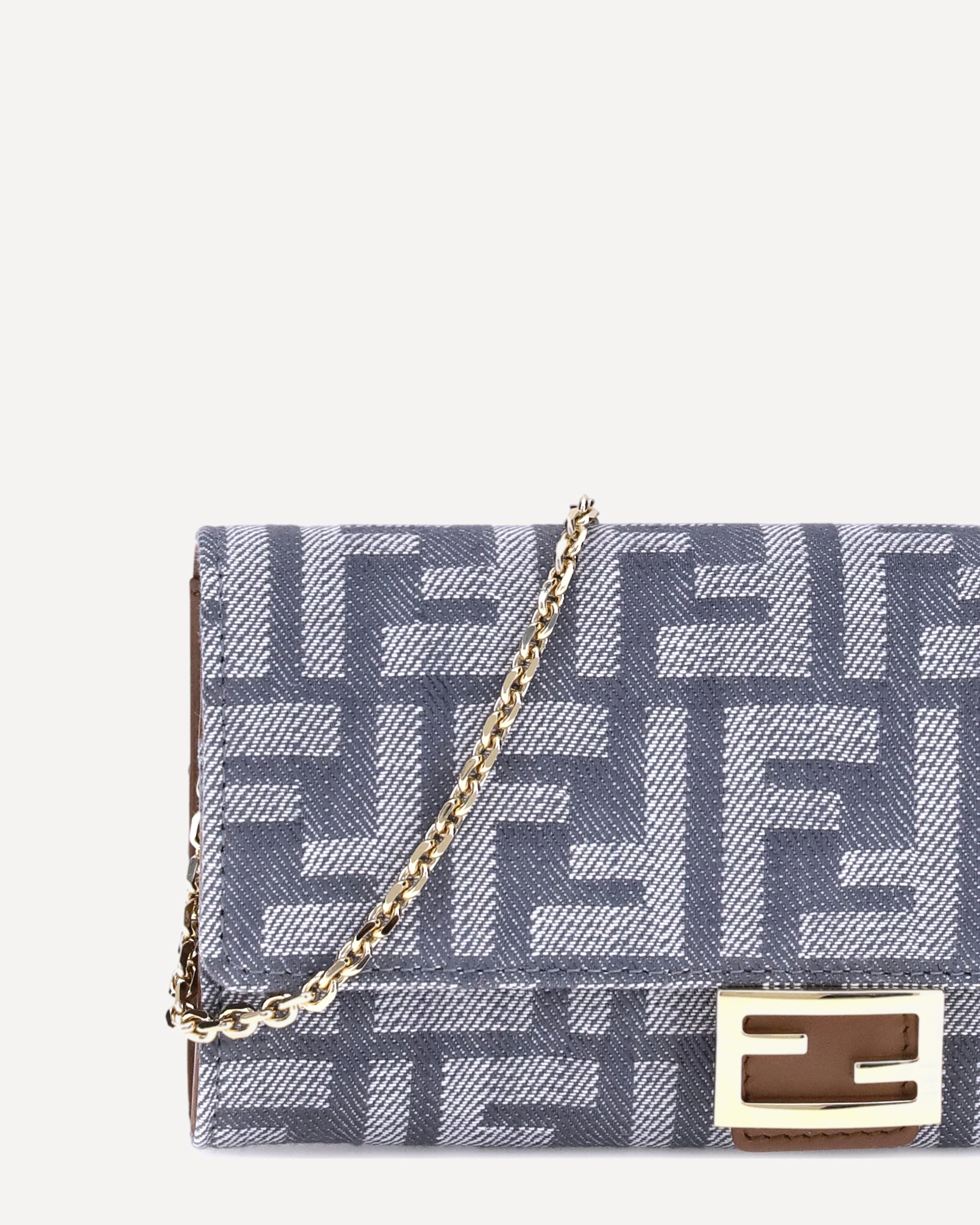 Il Portafogli di Fendi in denim con stampa FF è un accessorio compatto ma ricco di stile. Caratterizzato dall’iconico motivo all-over e da un dettaglio logato in metallo sulla parte frontale, unisce eleganza e funzionalità. La tracolla metallica amovibile lo rende versatile, perfetto anche come mini bag. All’interno, offre due scomparti a soffietto, una tasca con zip, tre tasche a fessura e dieci spazi per carte di credito. Un mix ideale di praticità e identità Fendi.
