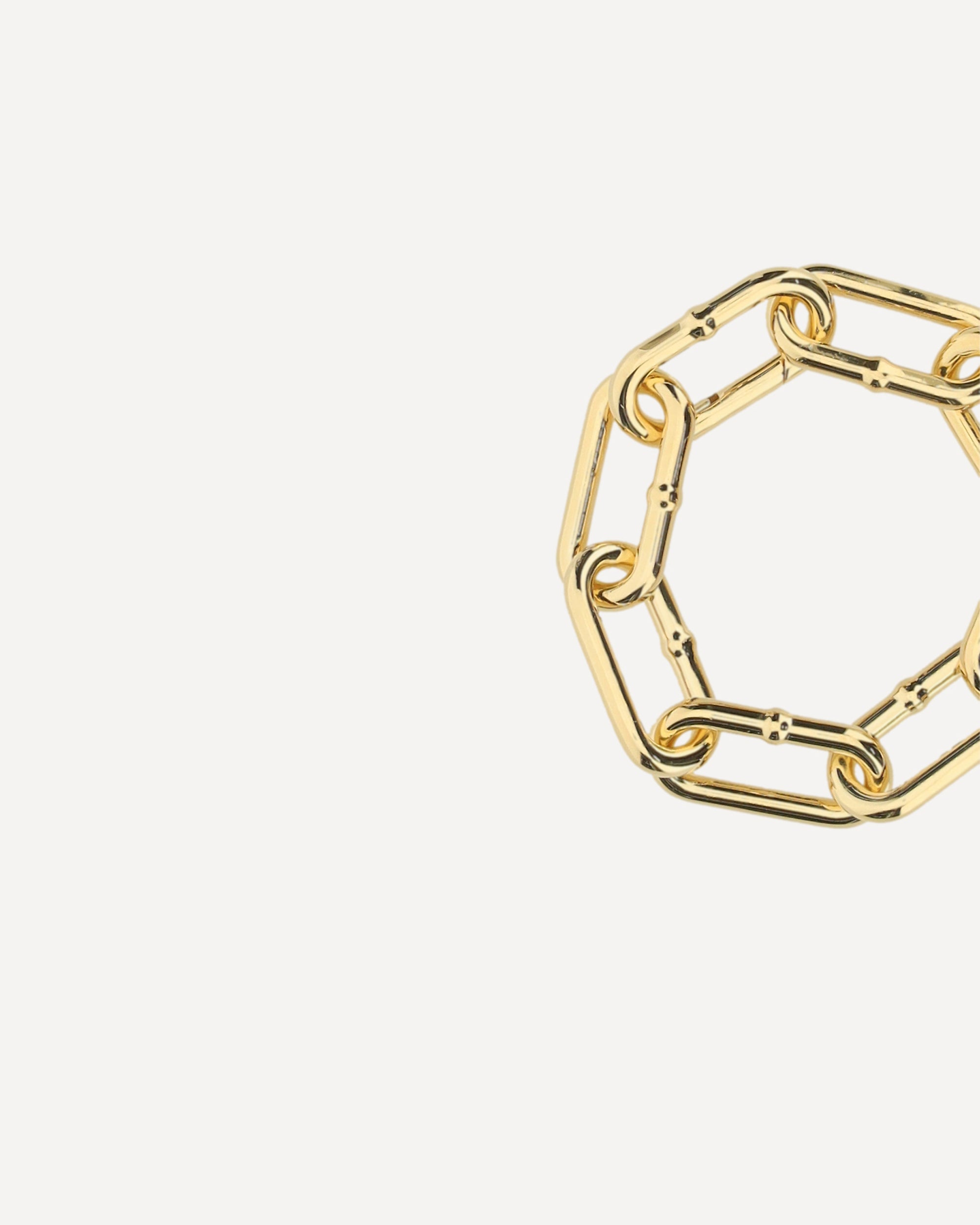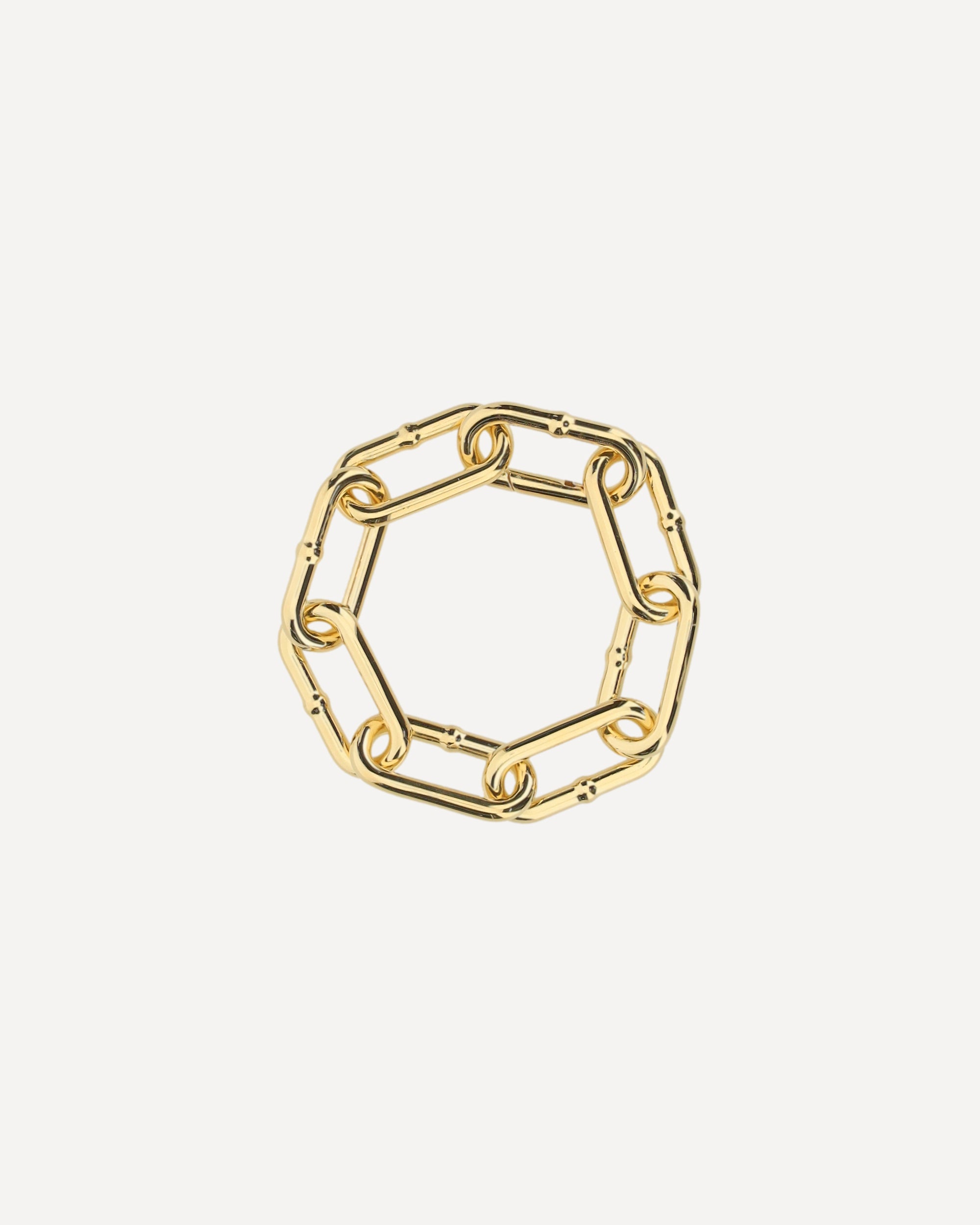 Bracciale Chain-Link in Argento di Bottega Veneta, design geometrico placcato oro, chiusura ad incastro mediante moschettone.