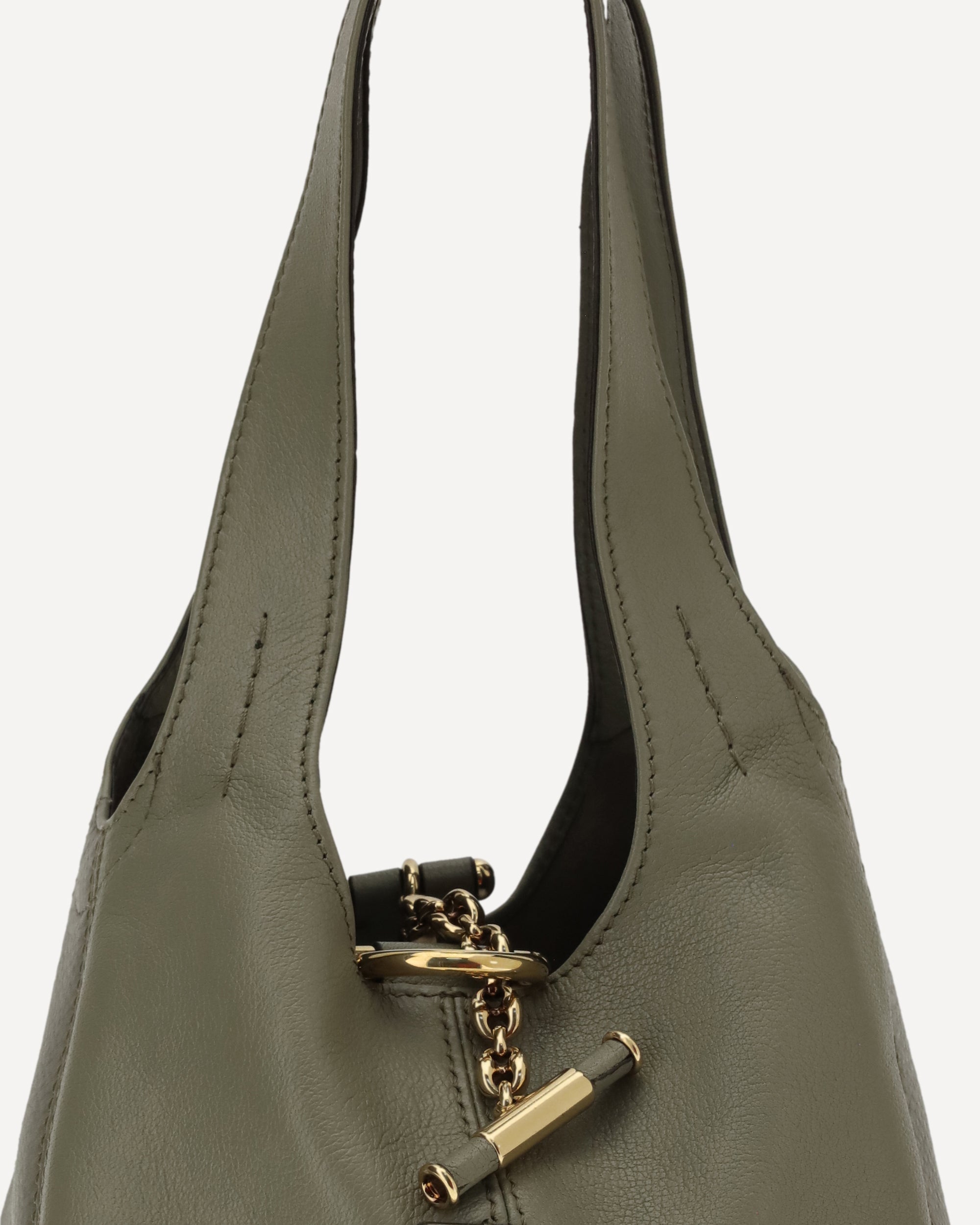 La Borsa a Spalla Balloon piccola di Chloè unisce eleganza e artigianalità. Realizzata in pelle di bufalo granata con patchwork in pelle lucida, presenta uno scomparto principale e una chiusura con olivetta. Può essere portata a mano o a spalla, perfetta per uno stile sofisticato e versatile.
