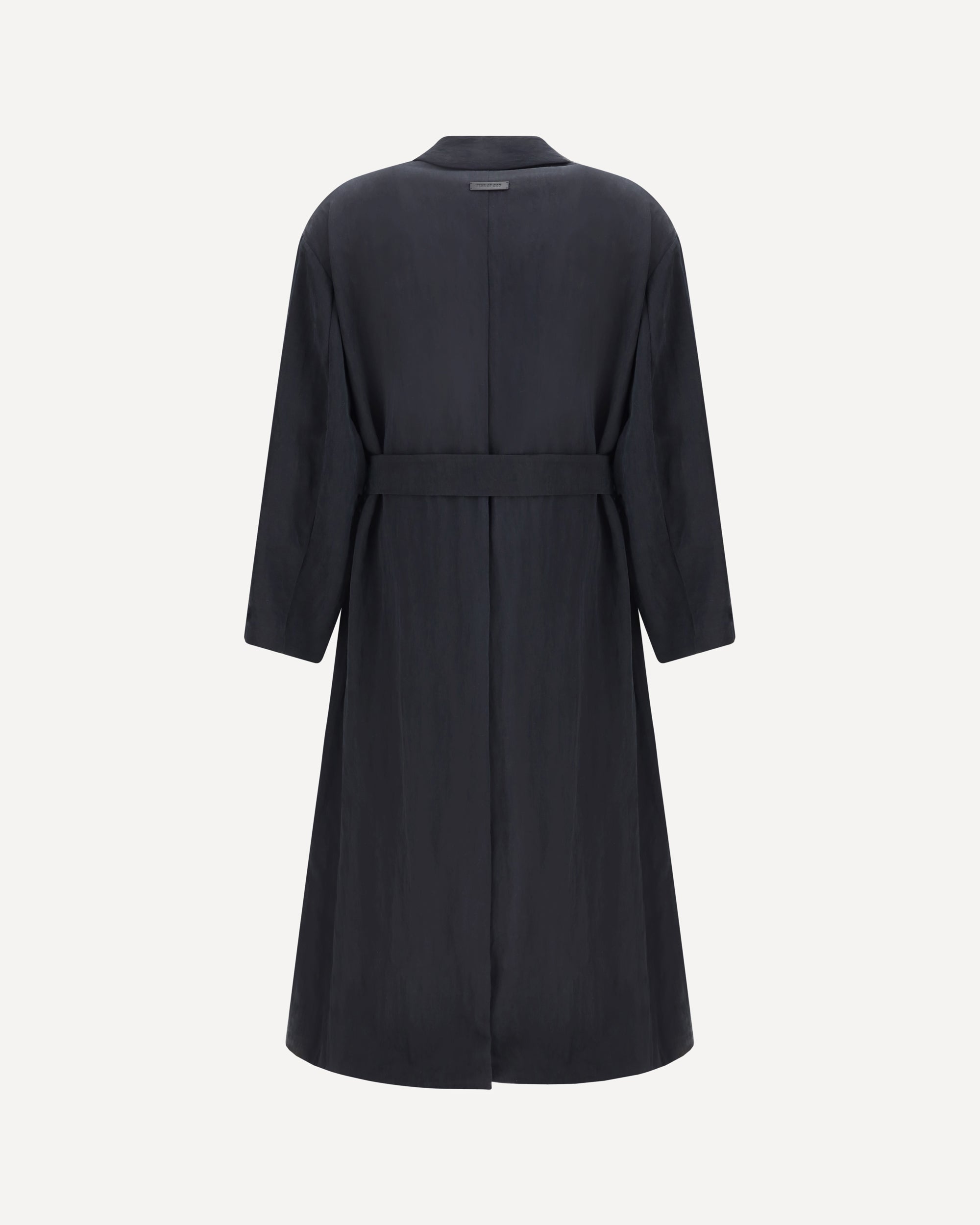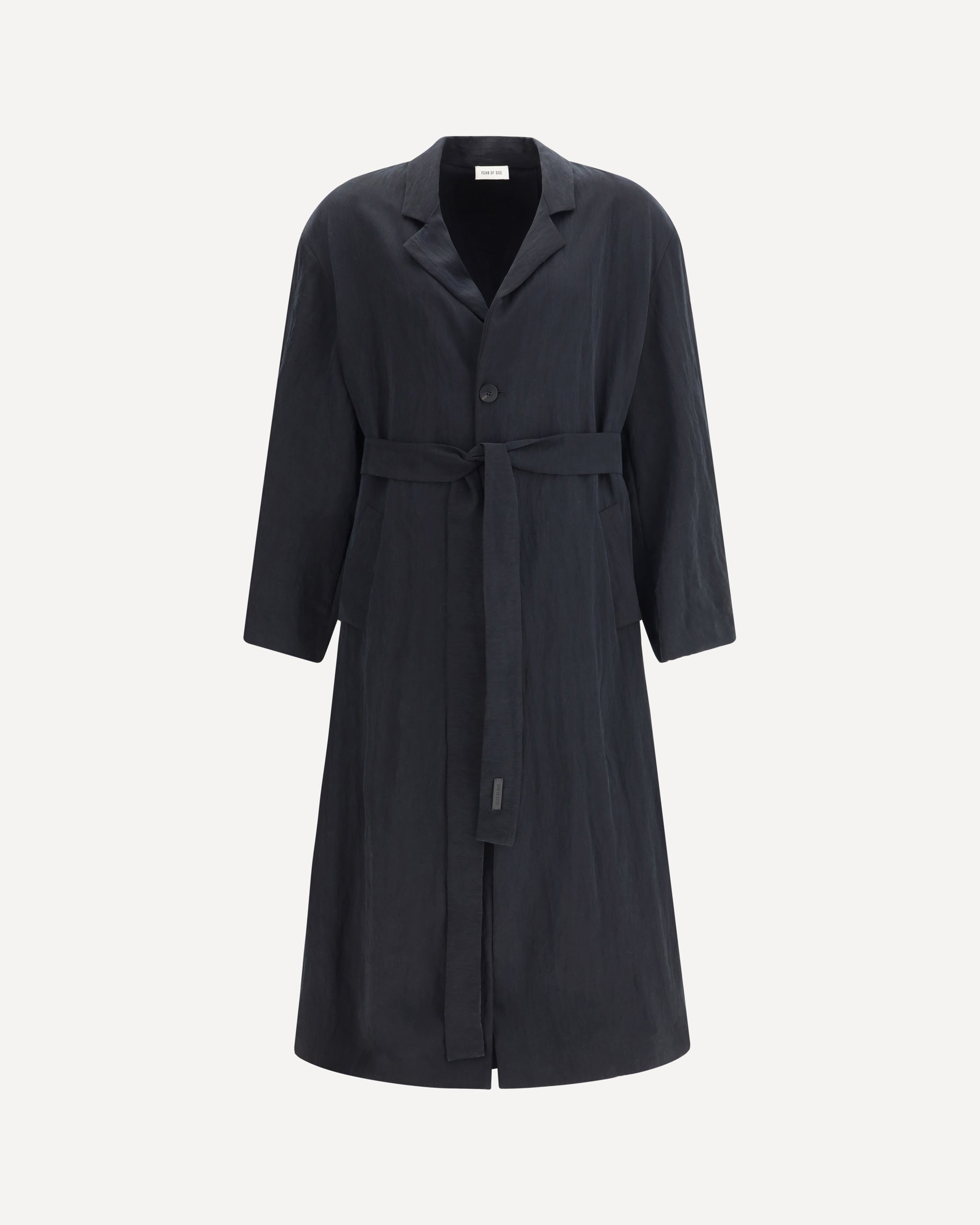Il Trench in misto lyocell di Fear of God riflette l’estetica raffinata e rilassata del brand californiano. Caratterizzato da una silhouette fluida e minimalista, presenta revers classici, chiusura con bottoni e cintura da annodare in vita per definire la figura. Le tasche laterali a fessura e lo spacco centrale sul retro aggiungono funzionalità e movimento, mentre l’etichetta logata sul retro firma con discrezione un capo dal fascino essenziale e contemporaneo.