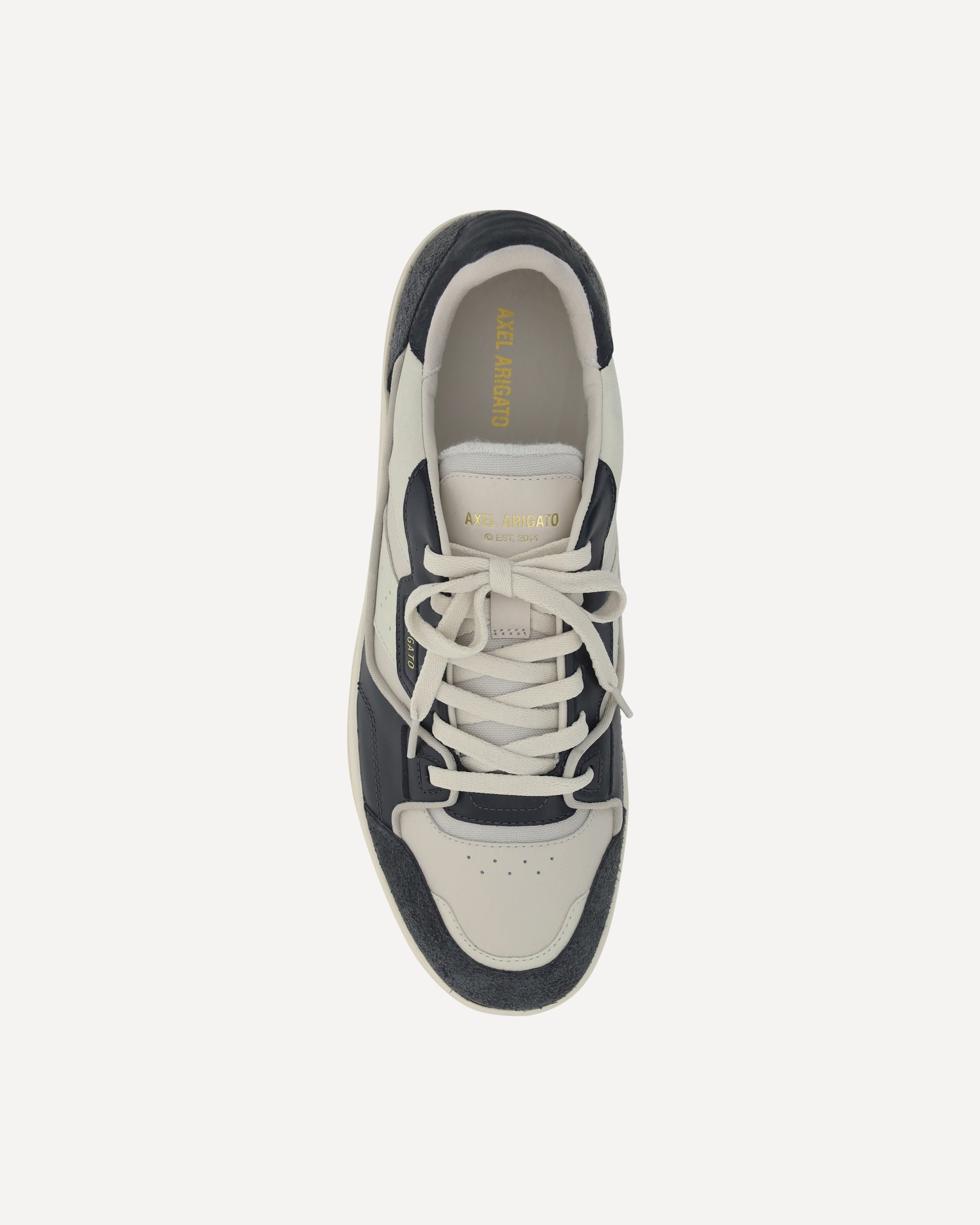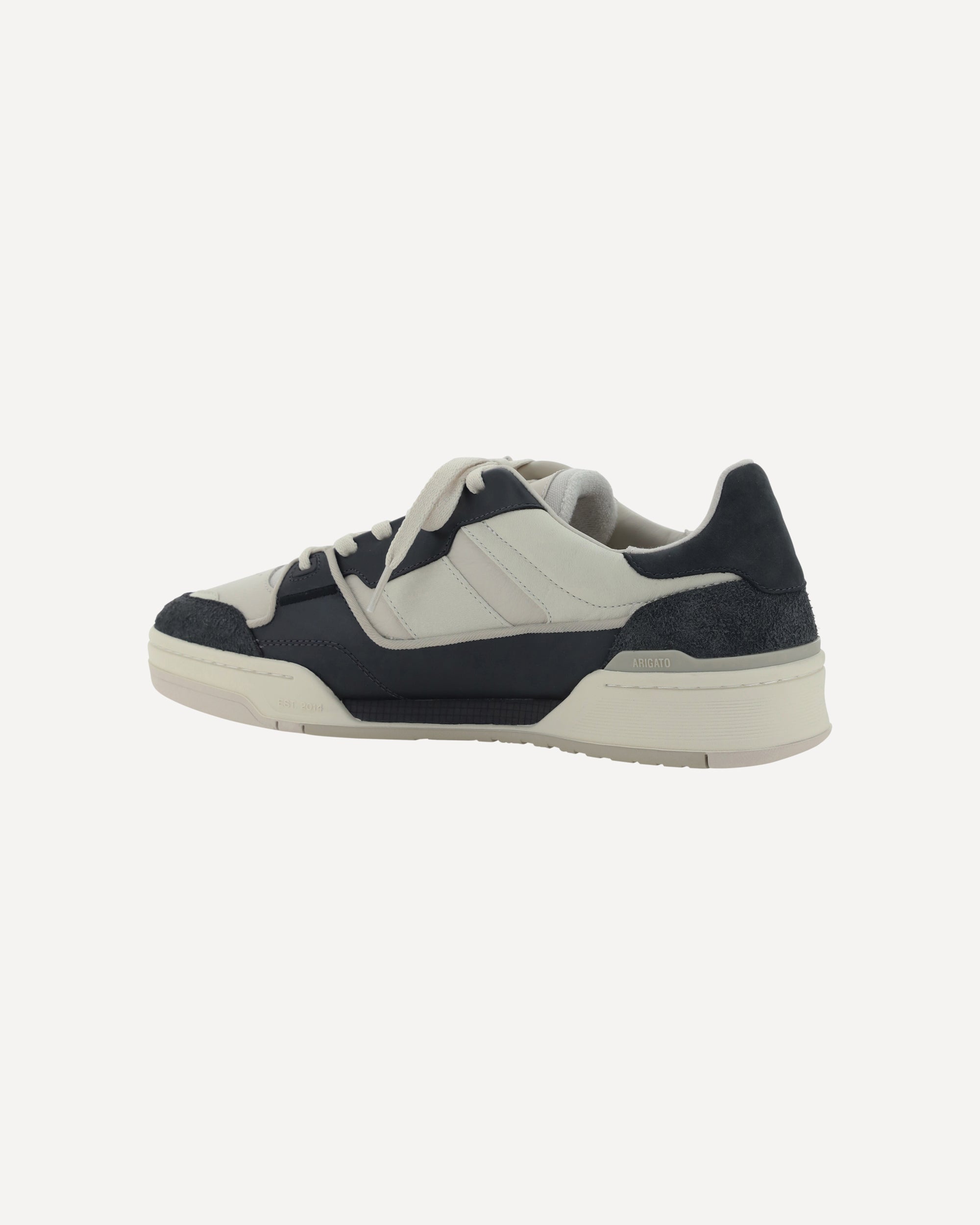 Sneakers Clay dallo stile contemporaneo firmate Axel Arigato, realizzate in pelle liscia con inserti in suede a contrasto. Il design presenta una punta tonda, suola piatta in gomma e chiusura frontale con lacci. Dettagli traforati sulla punta e sui lati aggiungono traspirabilità e un tocco sportivo. Completa il modello l’iconica firma del brand impressa sul pannello laterale.