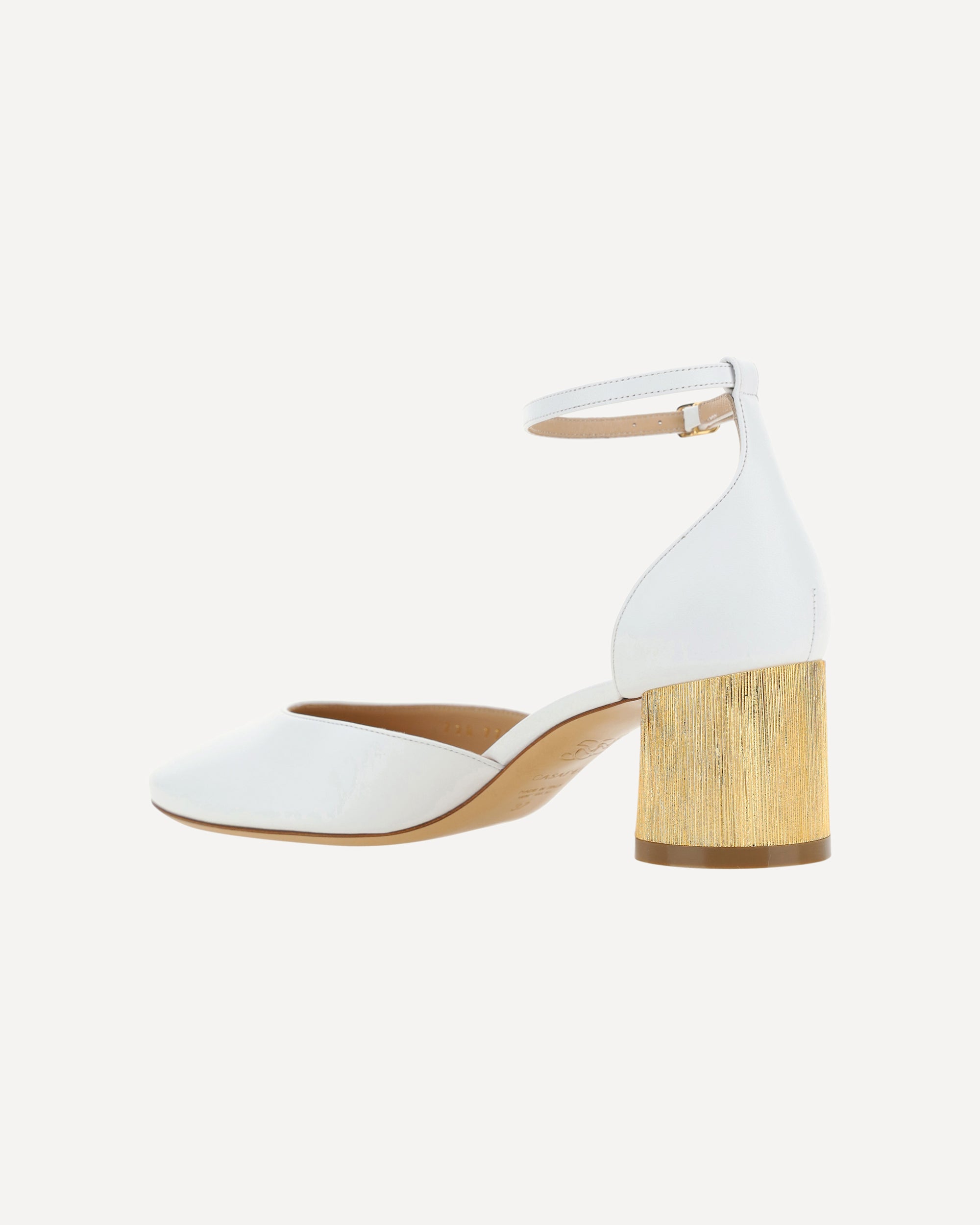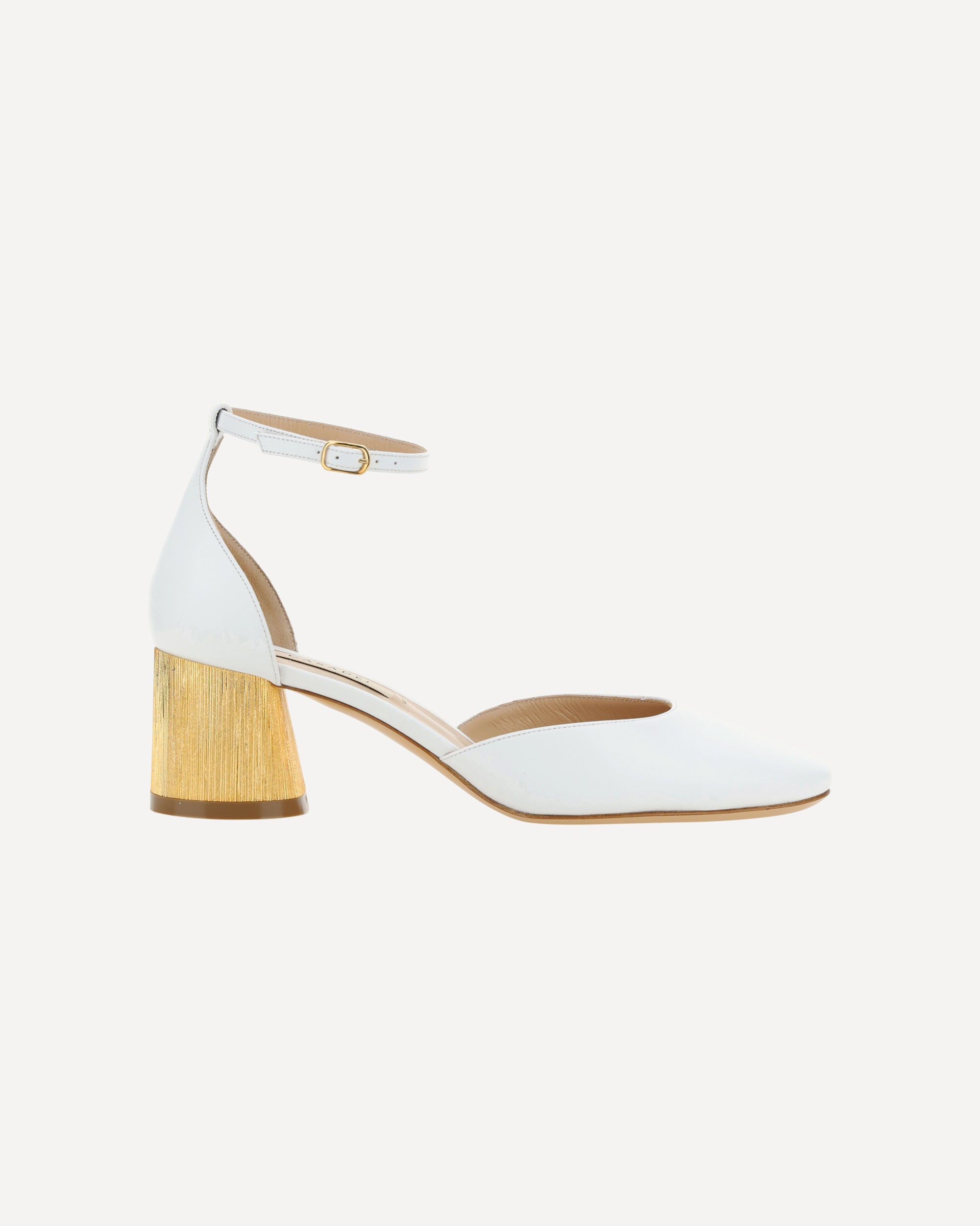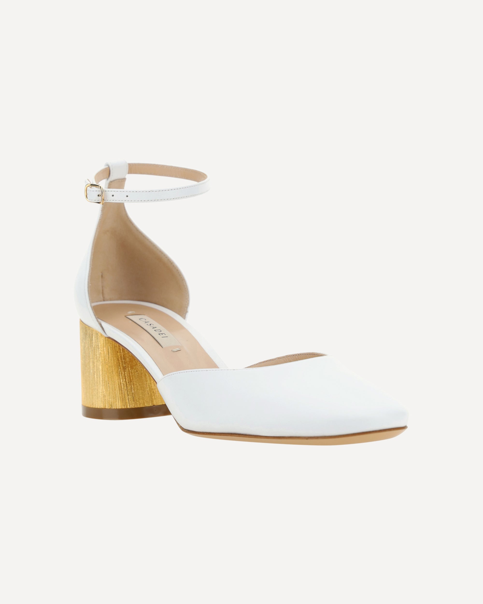 Le Décolleté Cleo Emily in Pelle di Casadei presentano una punta a mandorla elegante e un tacco chunky a contrasto che aggiunge carattere e stabilità. La chiusura avviene tramite un cinturino giro caviglia, per una calzata sicura e confortevole. La soletta logata a contrasto completa il design con un dettaglio raffinato e distintivo.