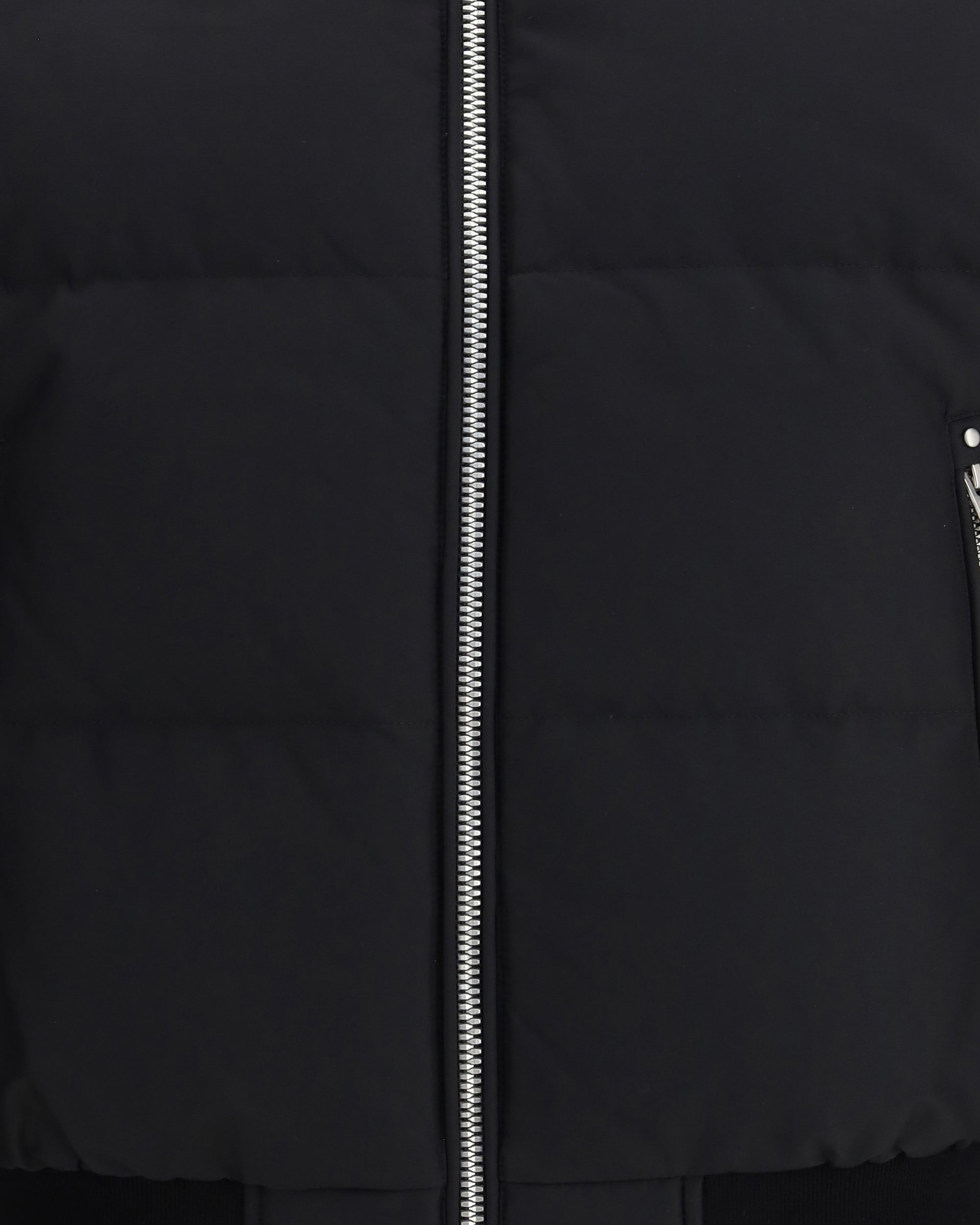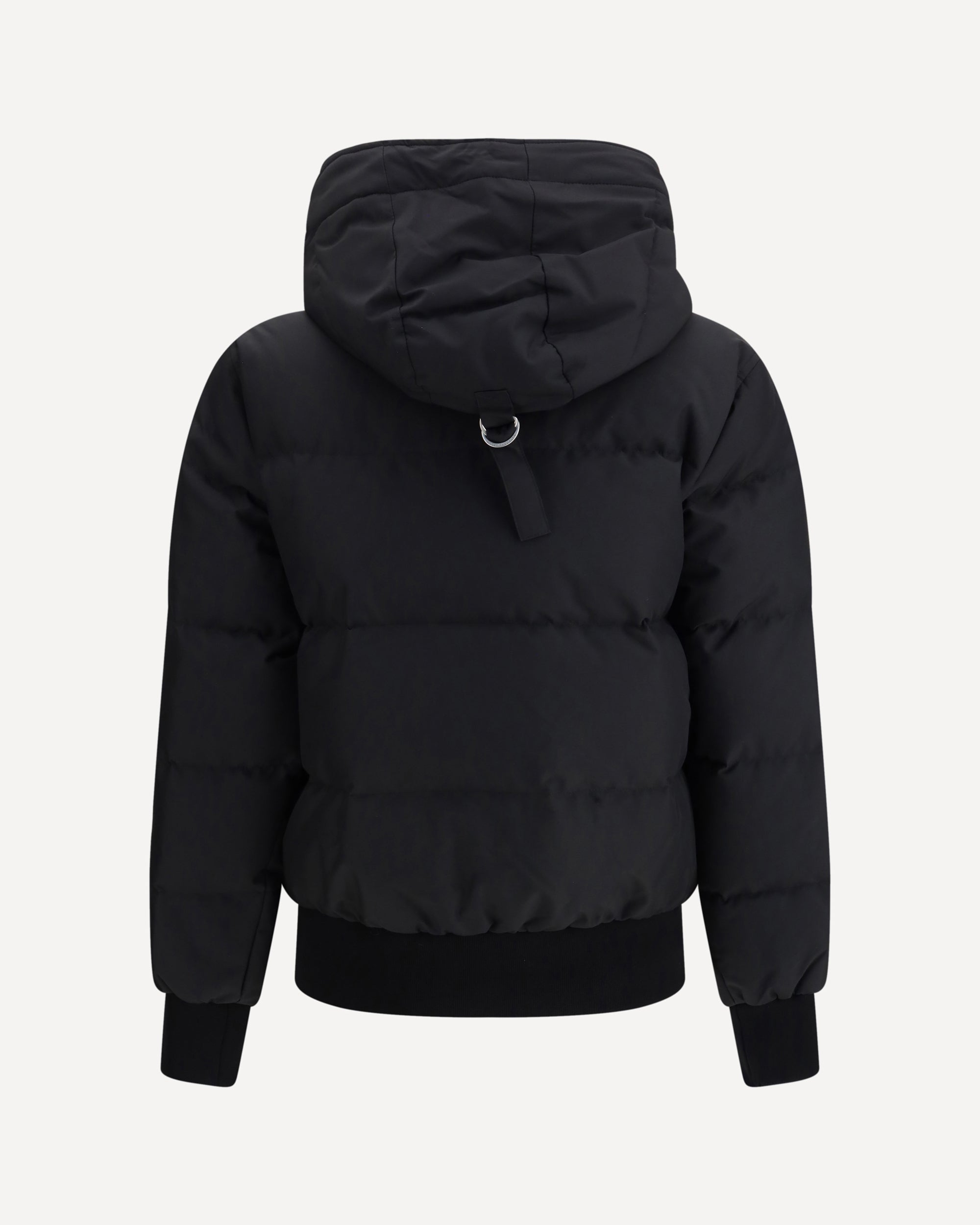 Il Bomber Cloud di Moose Knuckles reinterpreta l’outerwear iconico in chiave contemporanea. La silhouette corta è valorizzata dalla chiusura a zip e dal cappuccio regolabile con coulisse, mentre l’elastico in vita definisce la linea con un tocco sportivo. Le due tasche frontali con zip aggiungono praticità, completate dal logo in metallo argentato applicato sulla manica sinistra, firma distintiva del brand. Un capo essenziale e versatile, pensato per affrontare la stagione fredda con stile urbano.